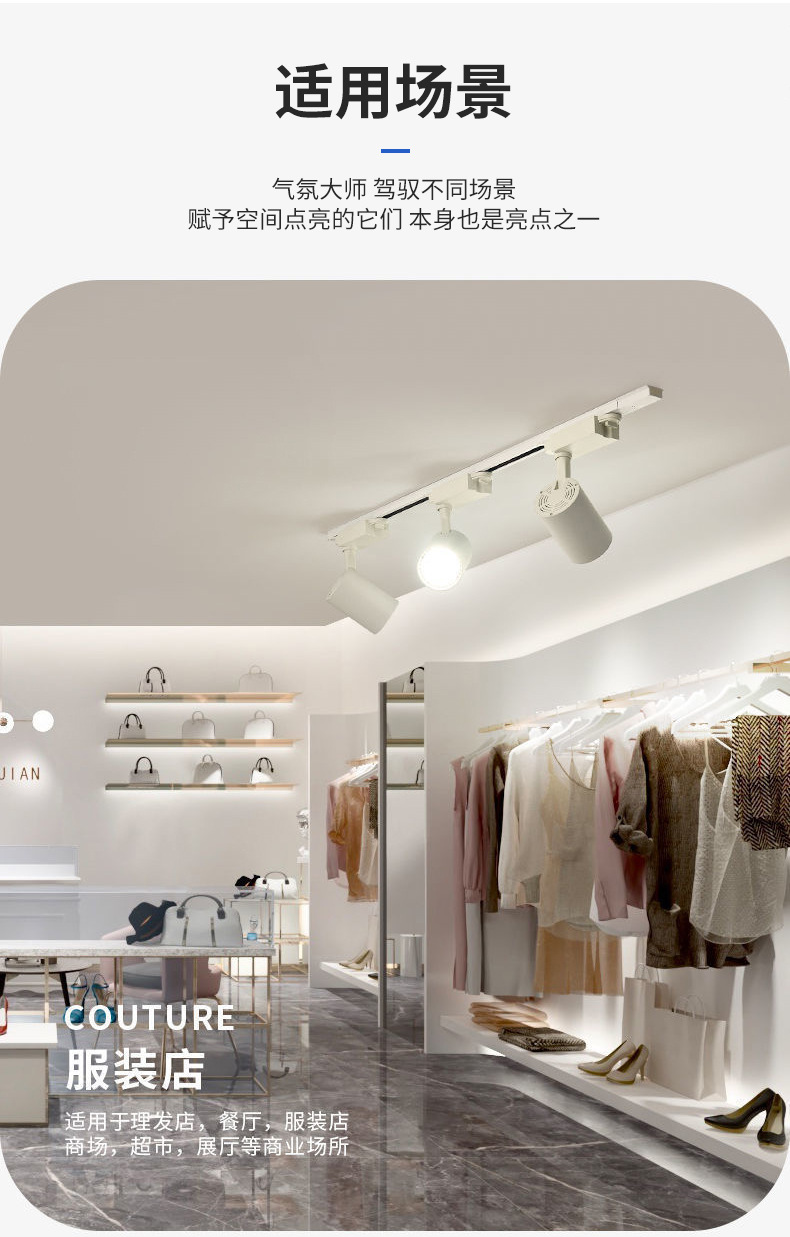 供应led轨道灯商场服装店展厅酒店超市商用现代简约cob导轨射灯