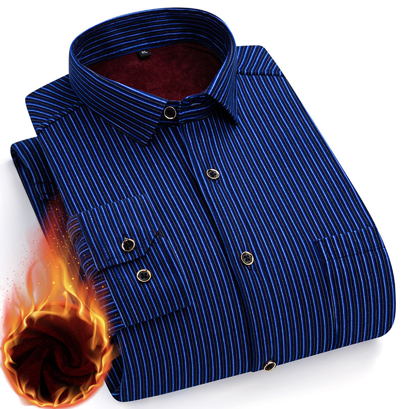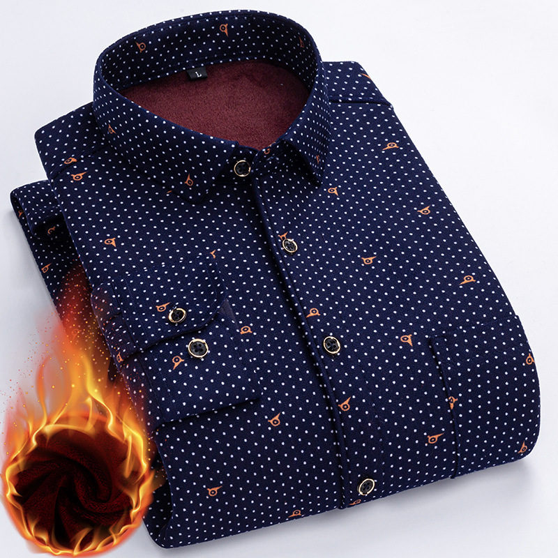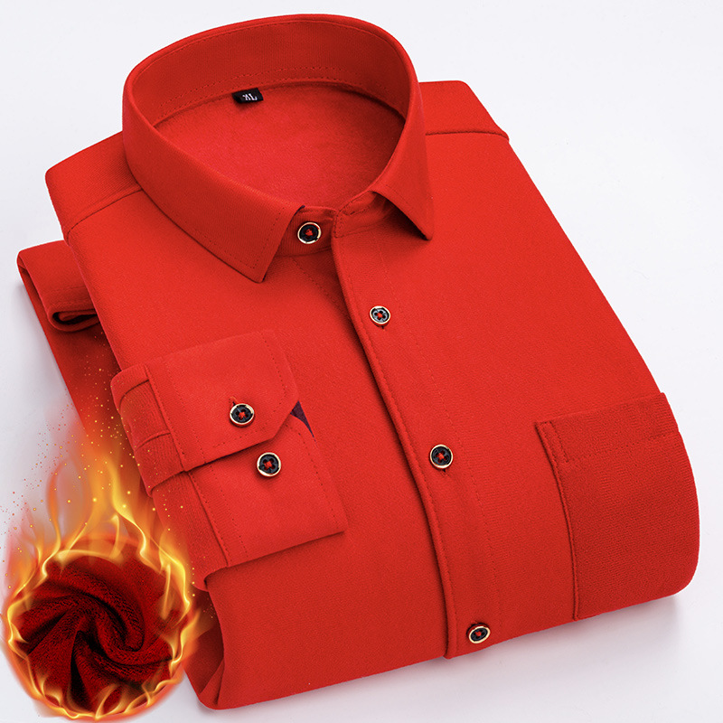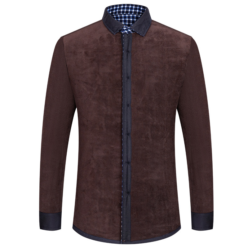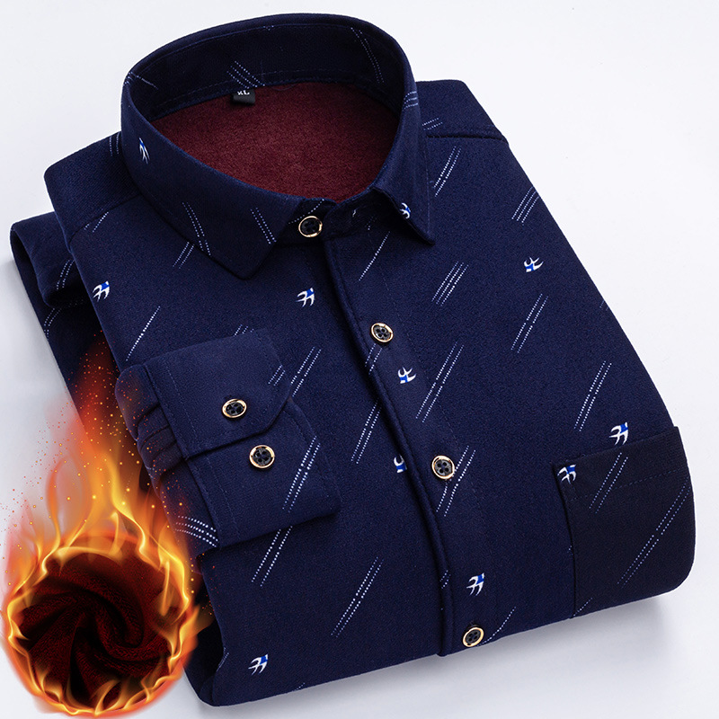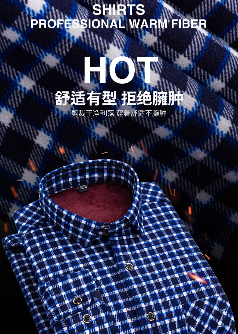 新款双面绒加绒保暖衬衫加厚保暖秋装加绒男士衬衫方领修身型上衣