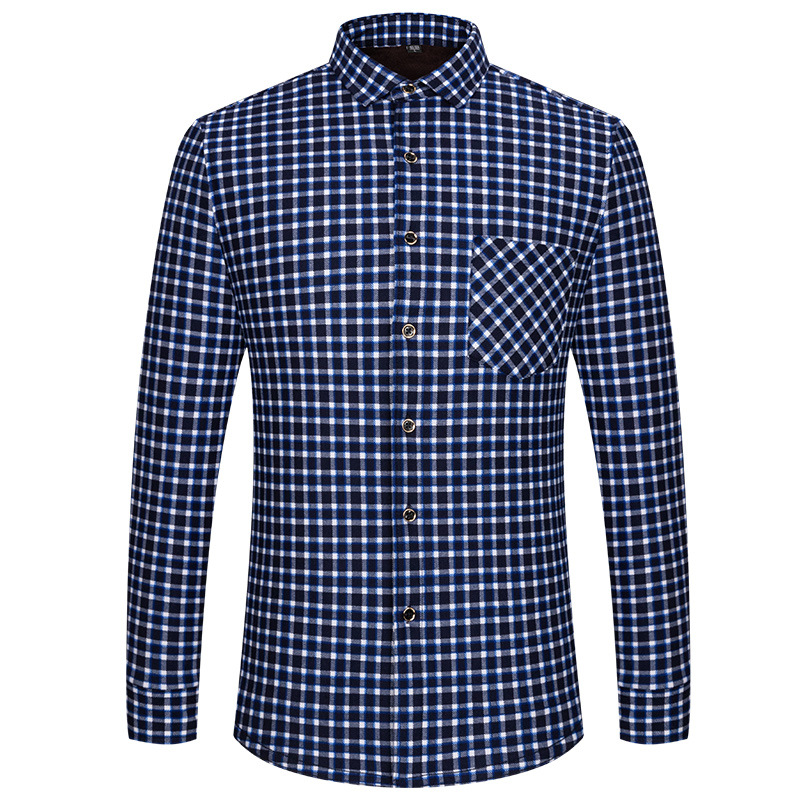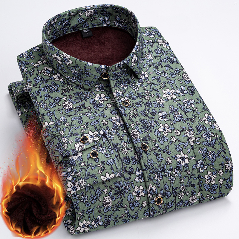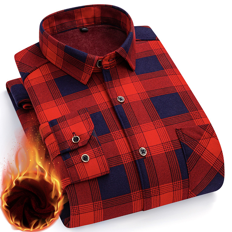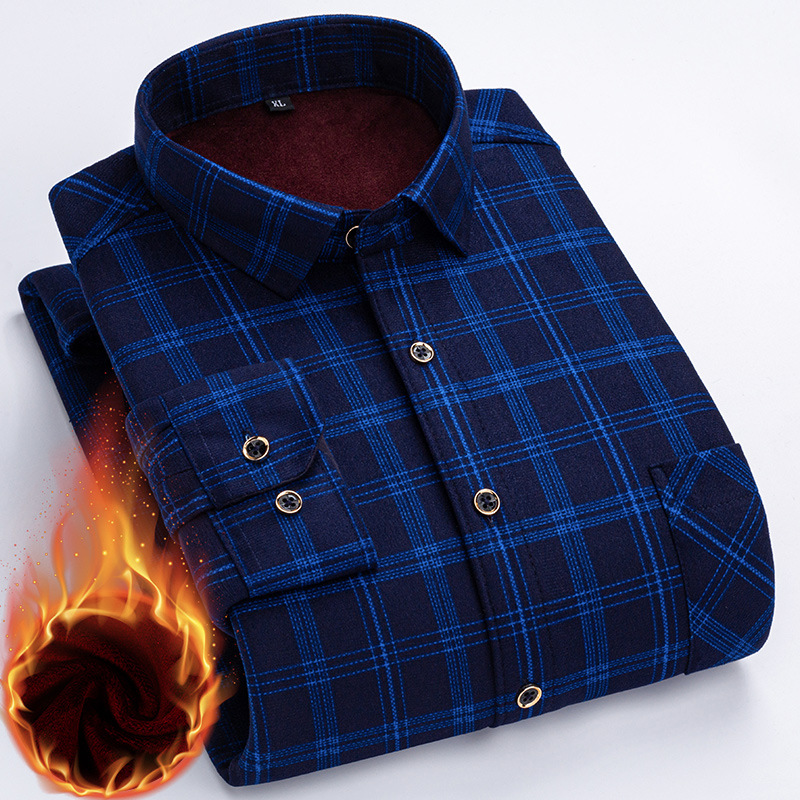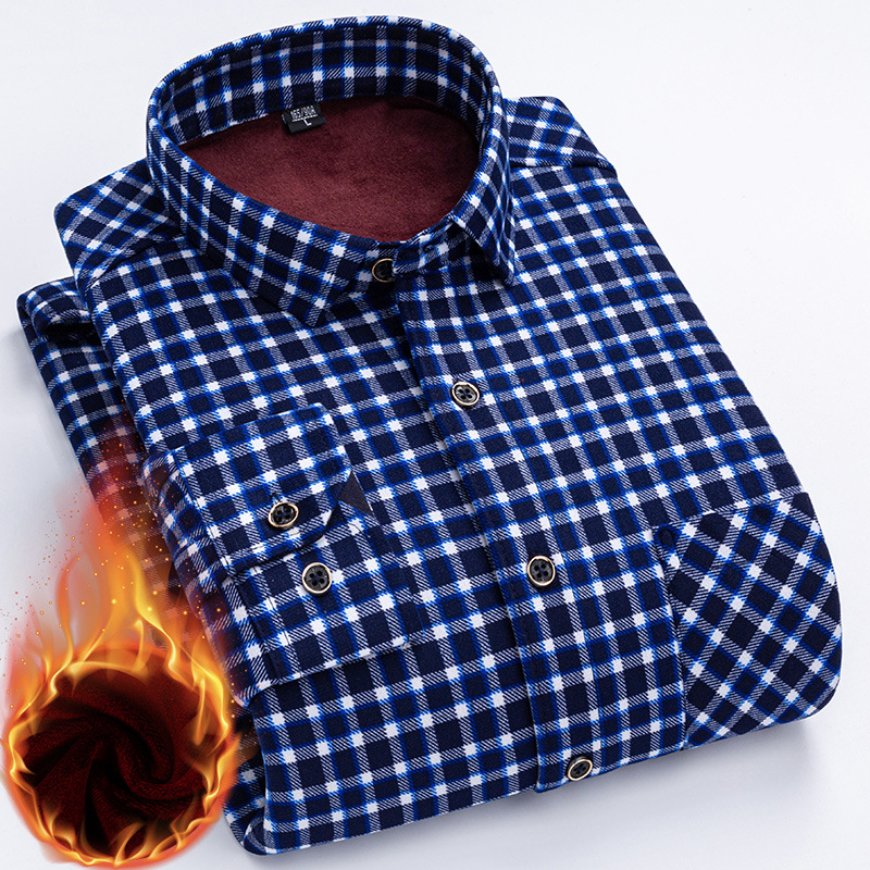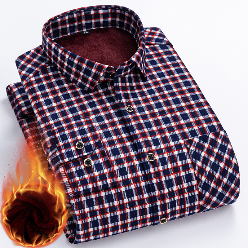 新款双面绒加绒保暖衬衫加厚保暖秋装加绒男士衬衫方领修身型上衣