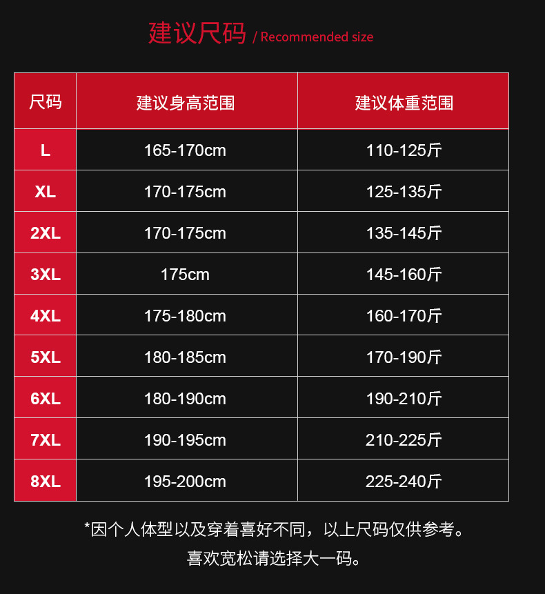 | 5xl(5XL) | USD $0.0 | 168 piece available |