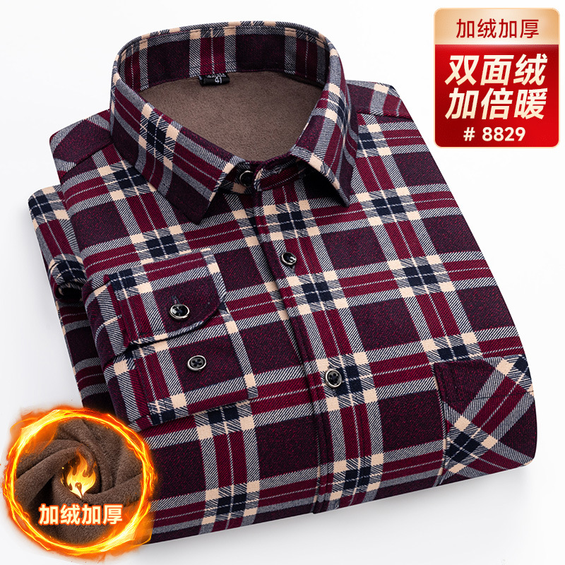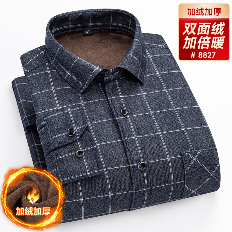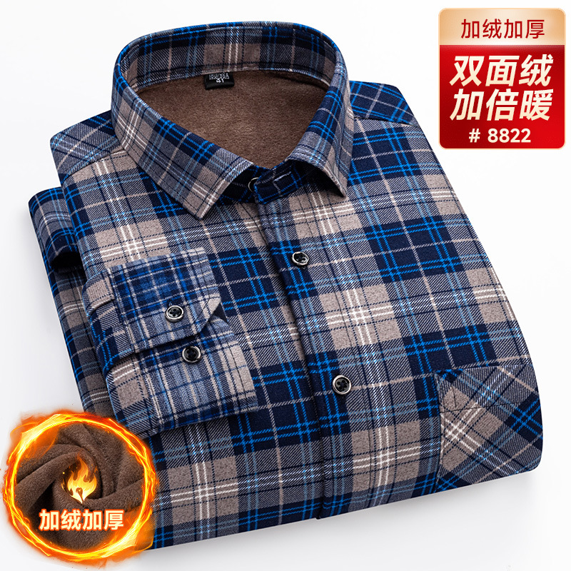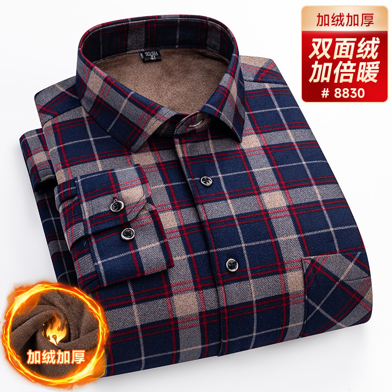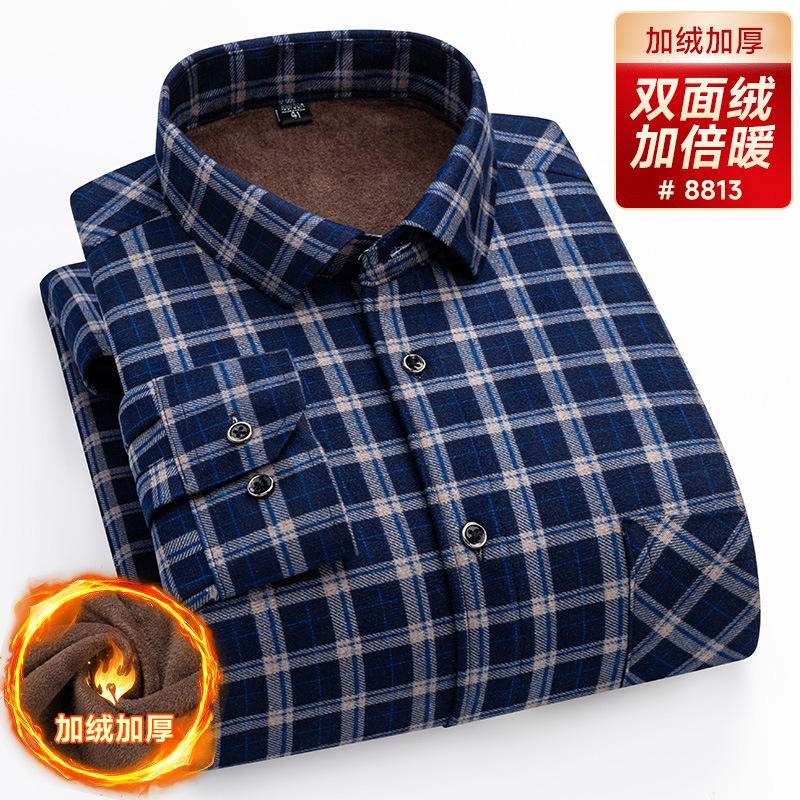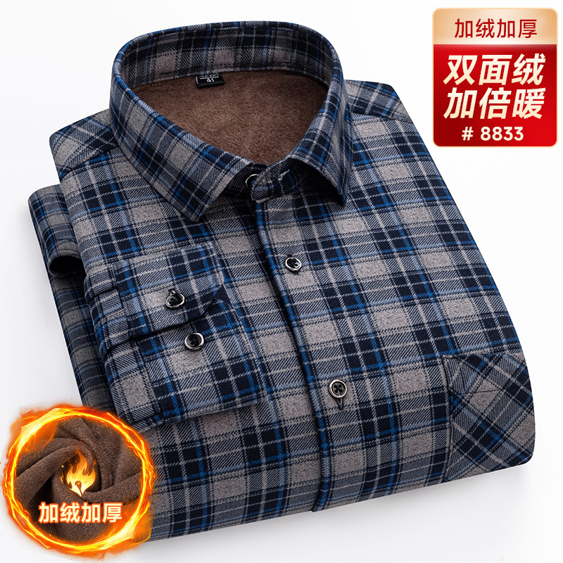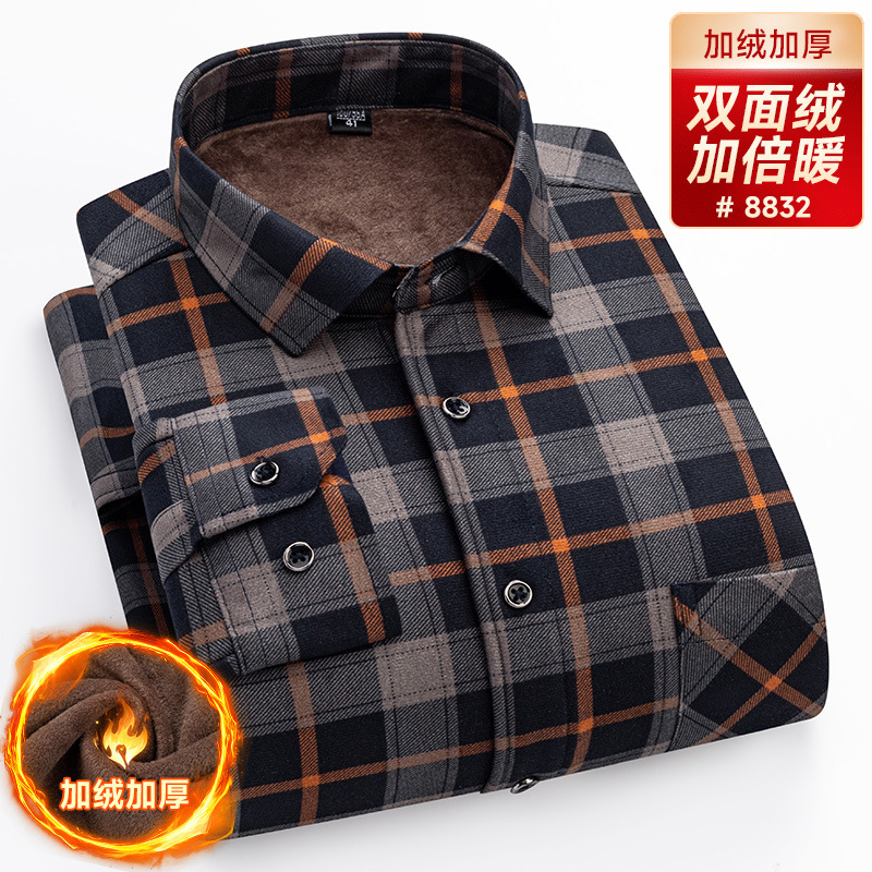 24秋冬季新款 双面绒衬衫加绒加厚保暖衬衫 经典外穿格子衬衫防寒