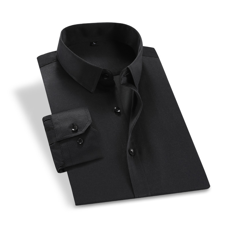 长袖衬衫商务男装黑衬衣秋冬男士打底衫白服务员上班工作服绣LOGO