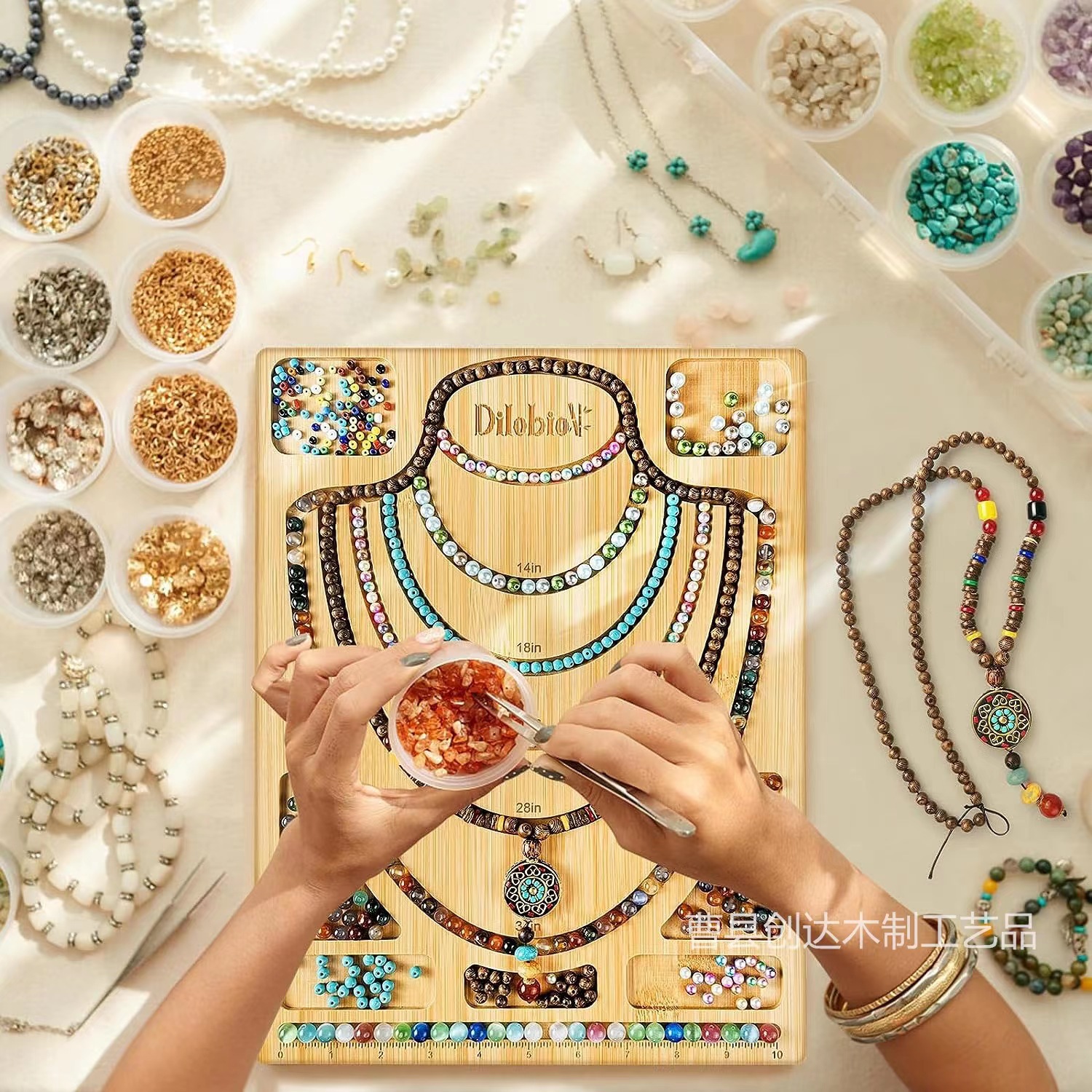 木制串珠板实木珠饰板竹木手链脚链珍珠板手串设计Diy串珠托盘