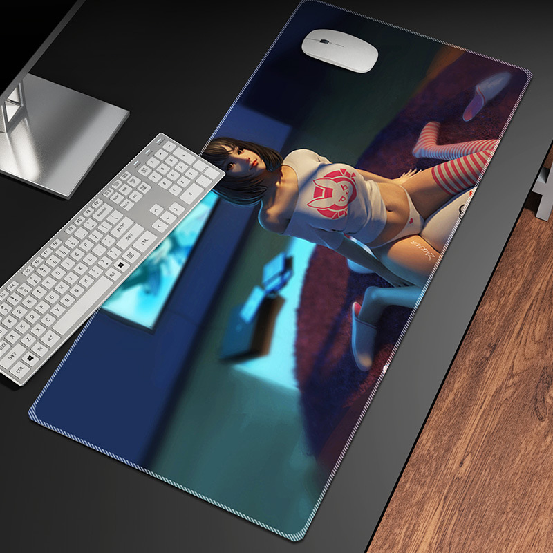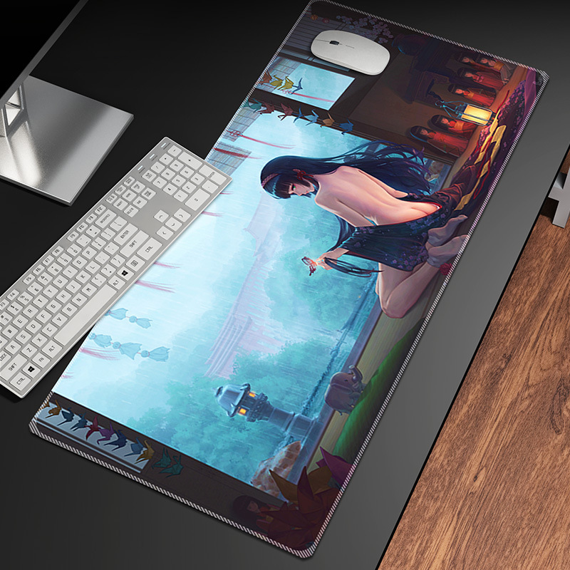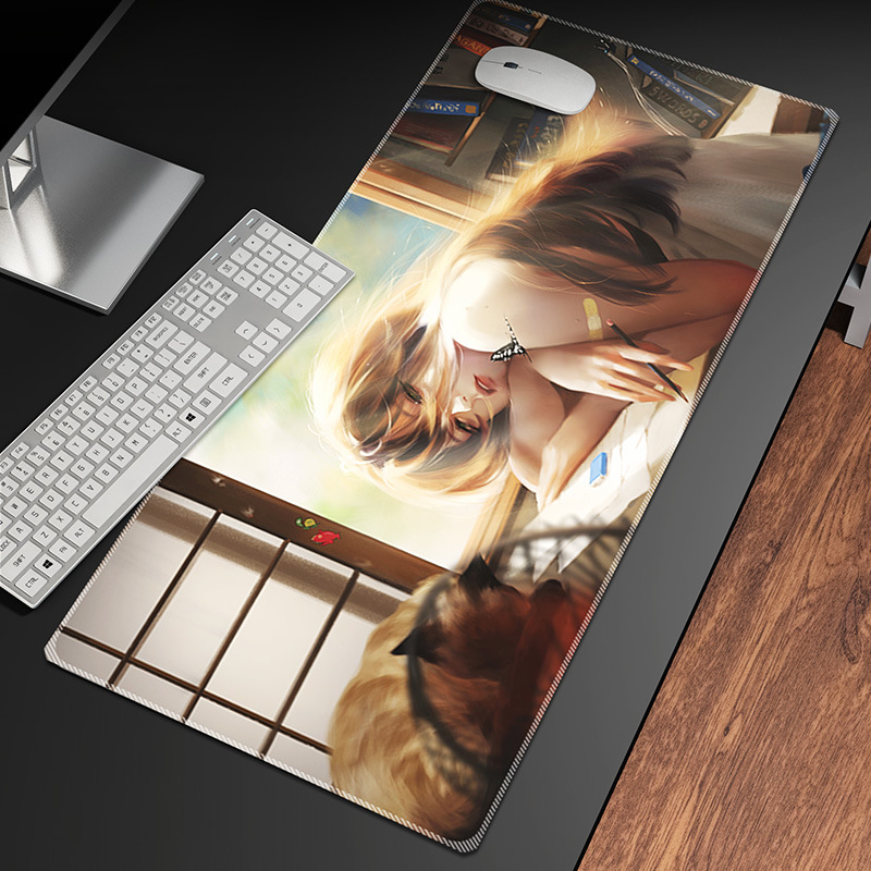 动漫性感美女鼠标垫超大锁边笔记本电脑垫大号电竞鼠标垫键盘桌垫