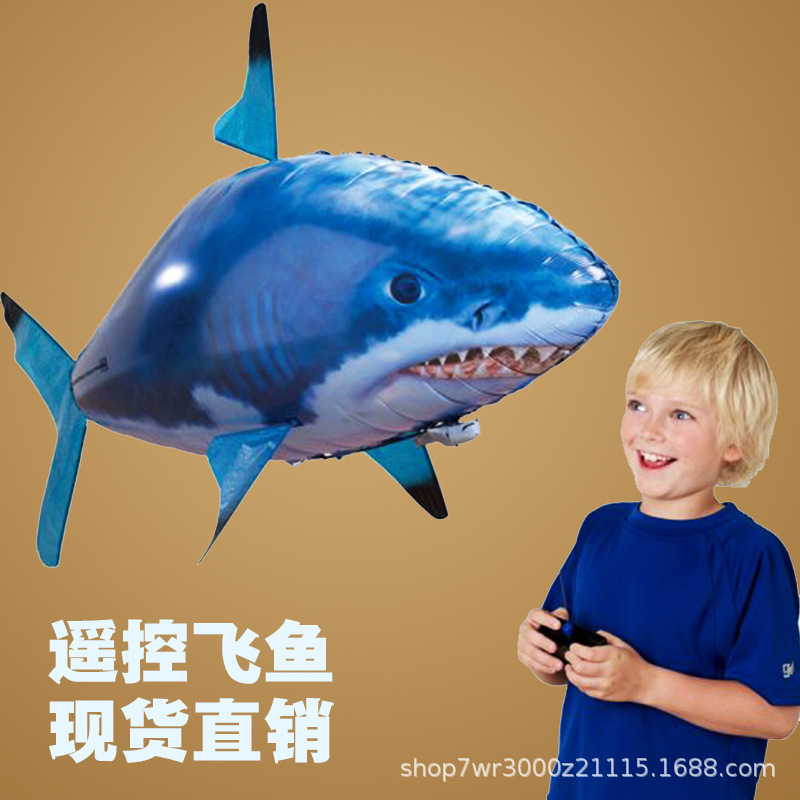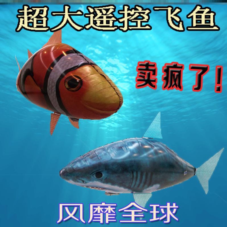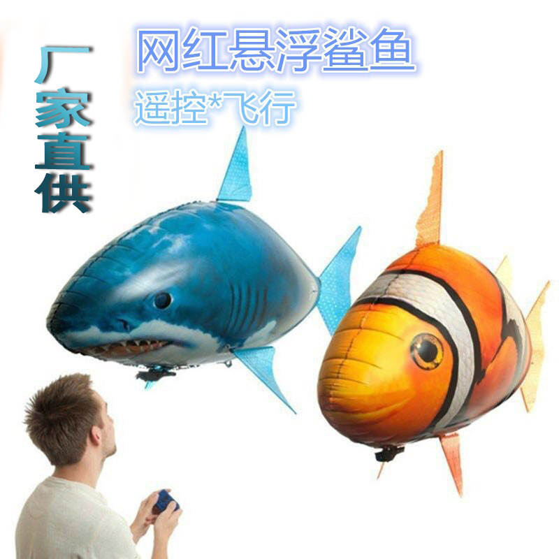 铝膜气球遥控鲨鱼生日派对布置遥控飞鱼充气鲨鱼小丑鱼气球批发
