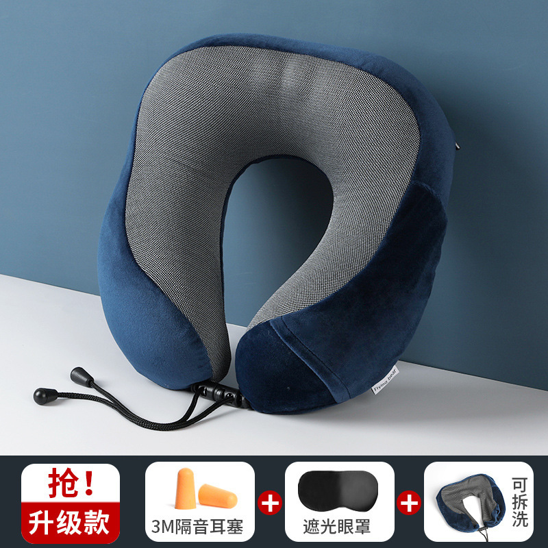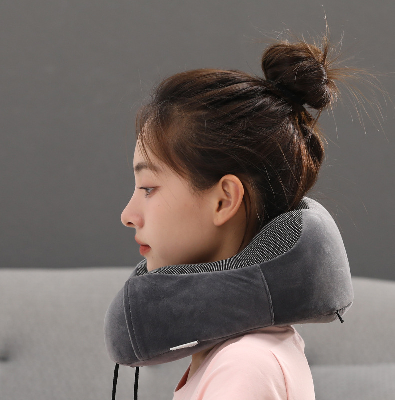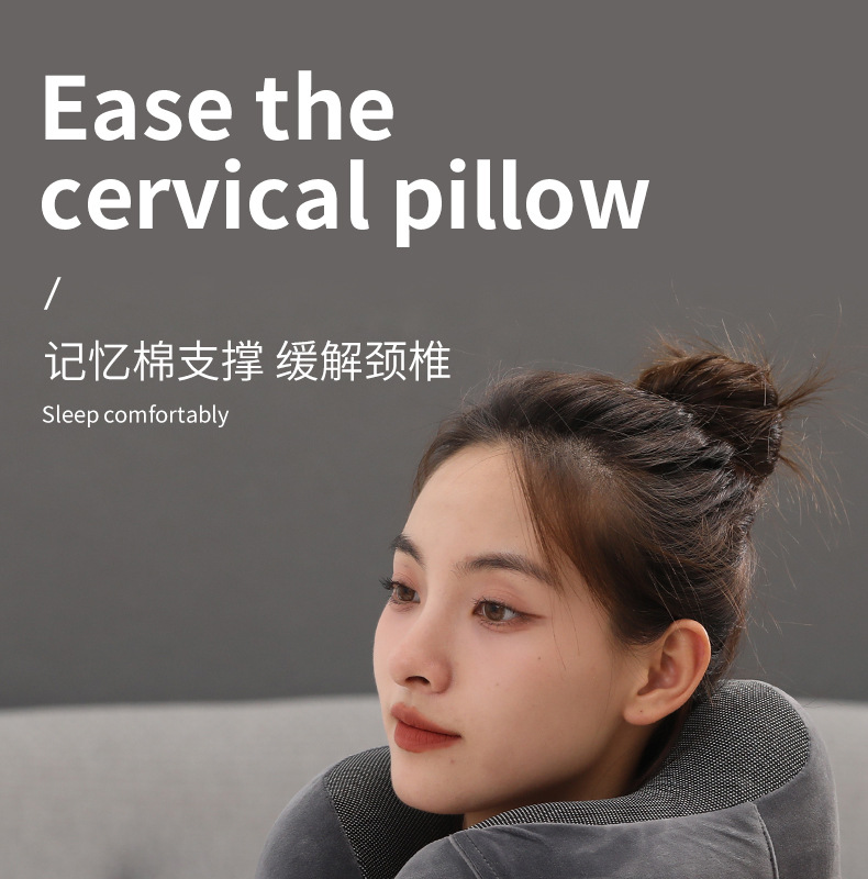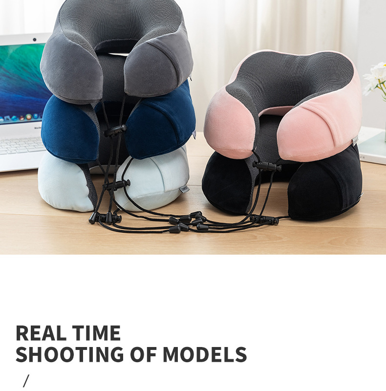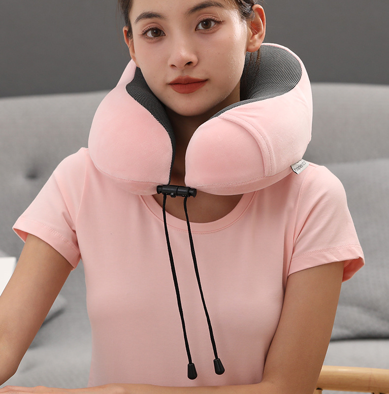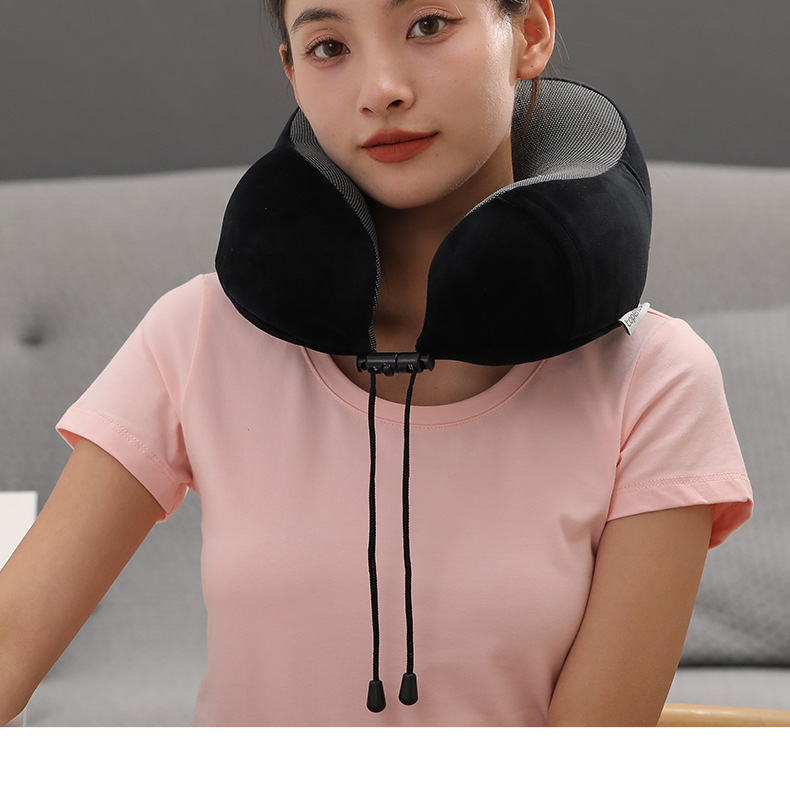 记忆棉u型枕可收纳护颈枕办公室午睡磁布颈枕旅行飞机枕可印Logo