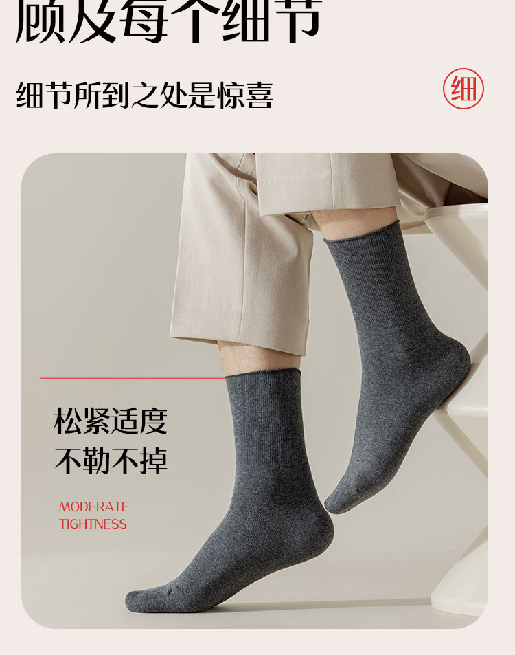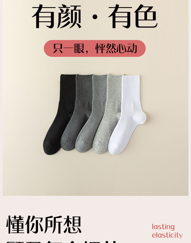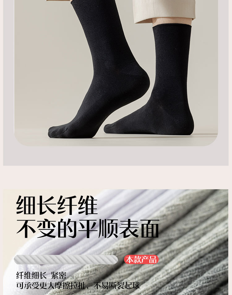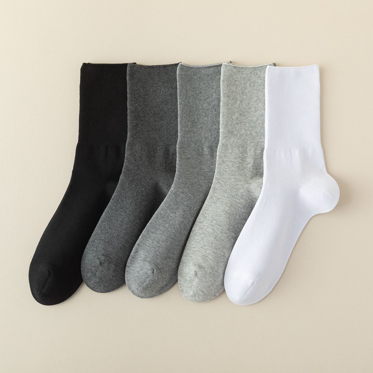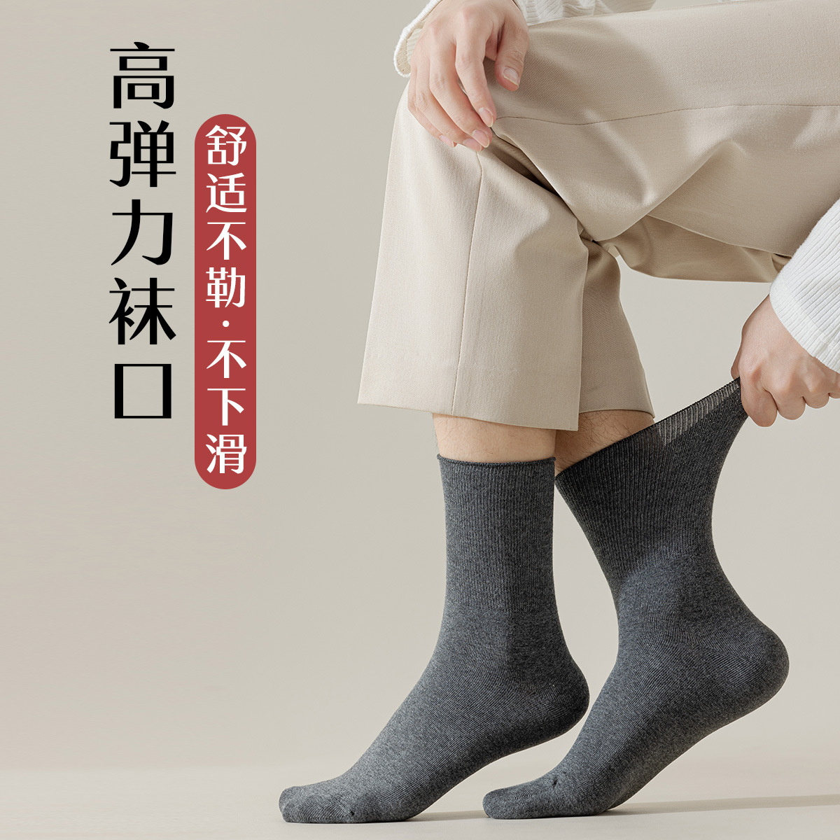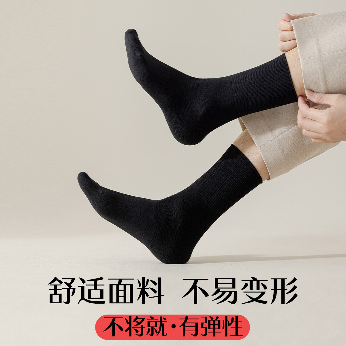 袜子男春秋季中筒袜纯棉抗起球大码长袜子休闲男士纯色松口无骨袜