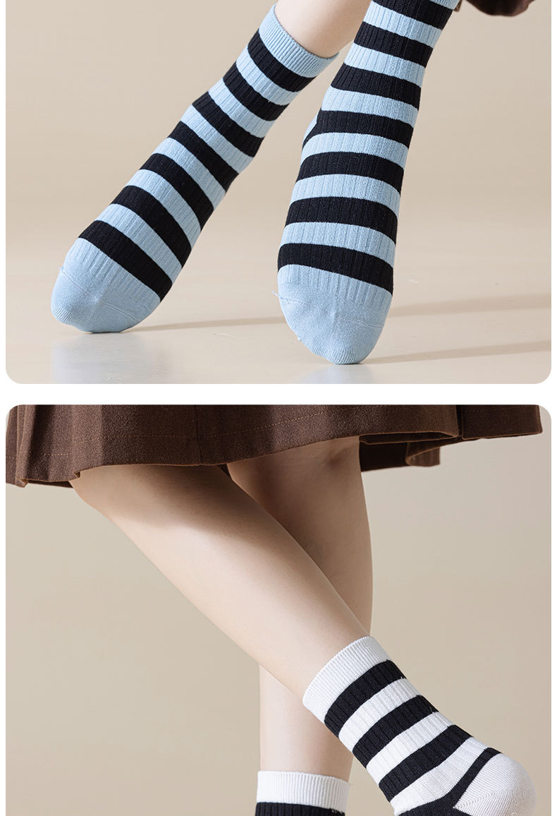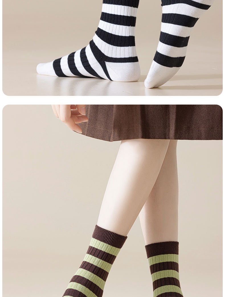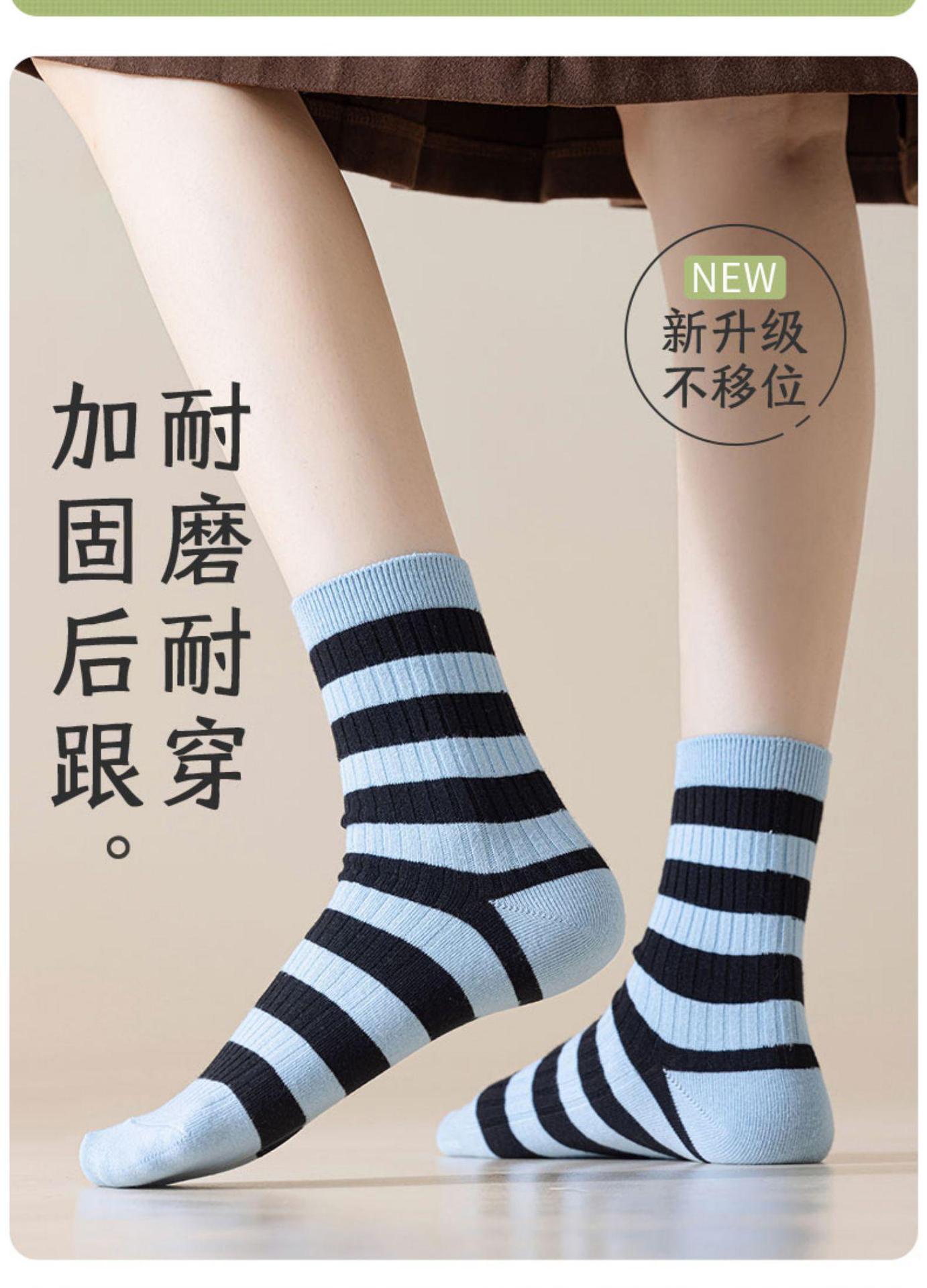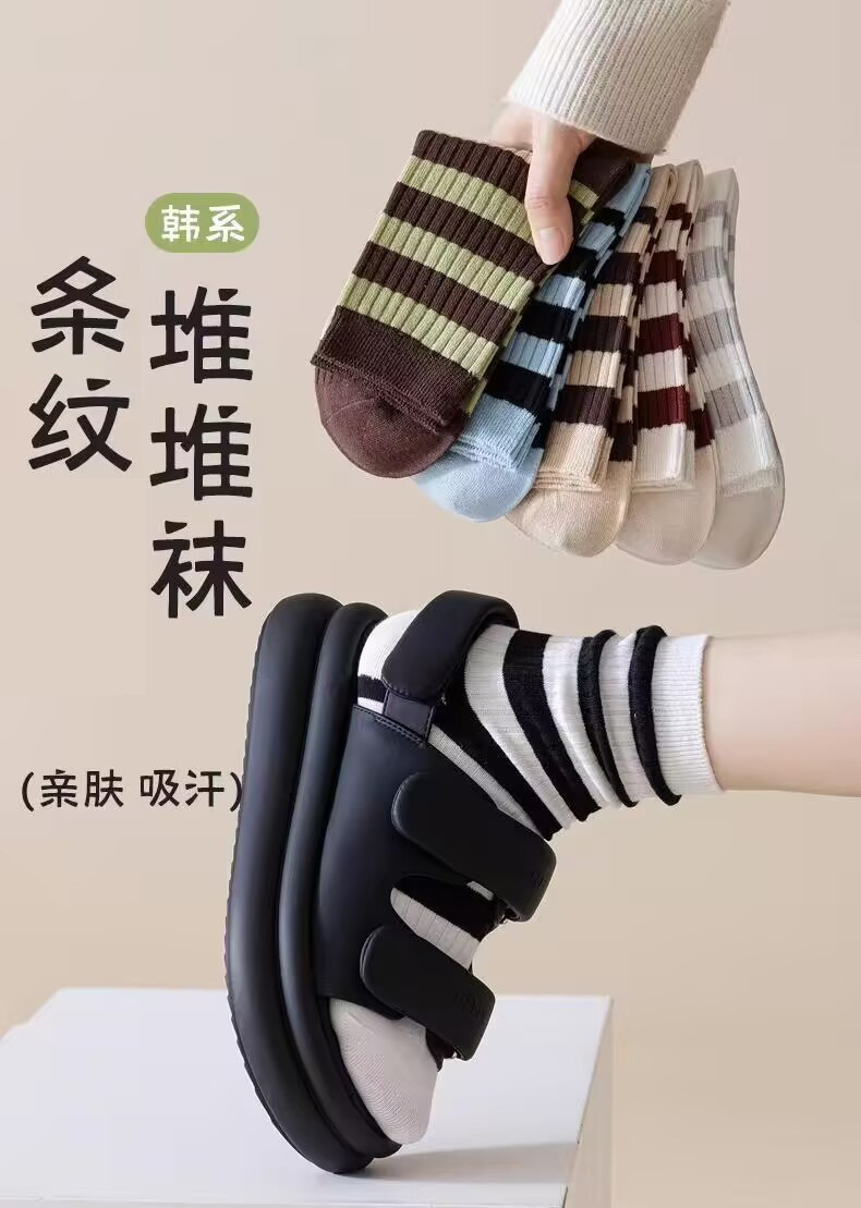 诸暨袜子女中筒条纹堆堆袜现货潮流百搭舒适透气中筒休闲长袜批发