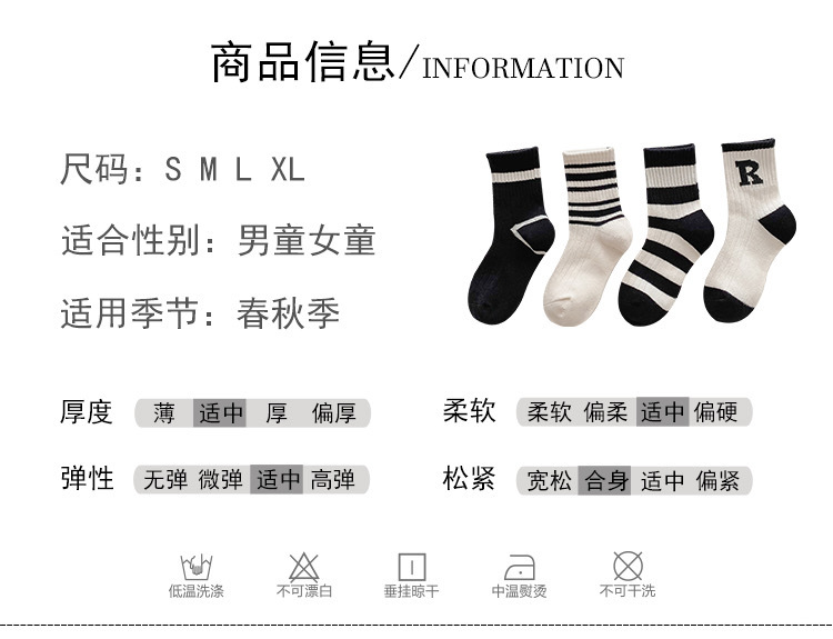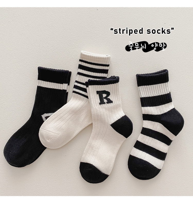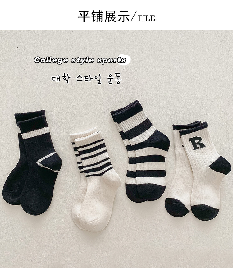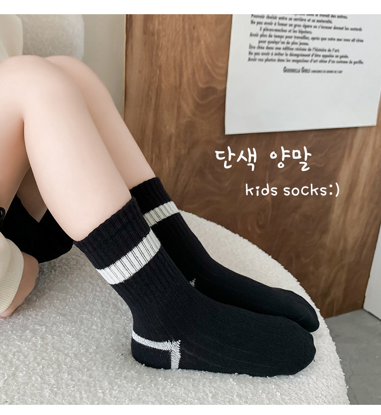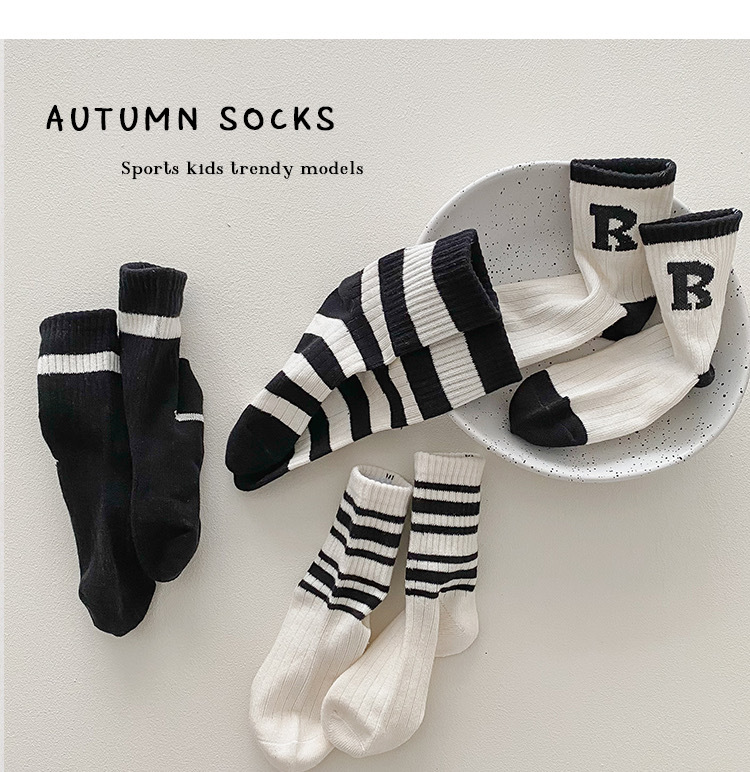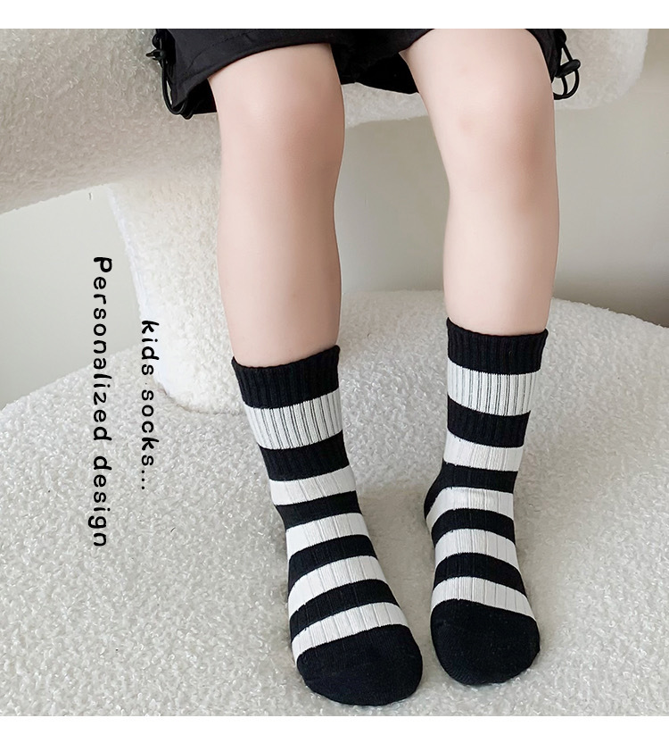 儿童袜子韩版秋冬新款男童女童潮袜中大童棉袜黑白条纹儿童中筒袜