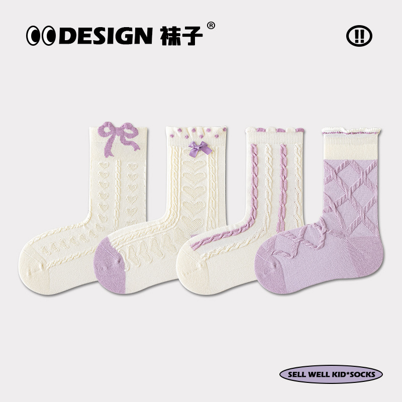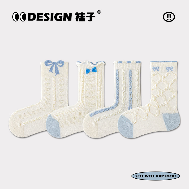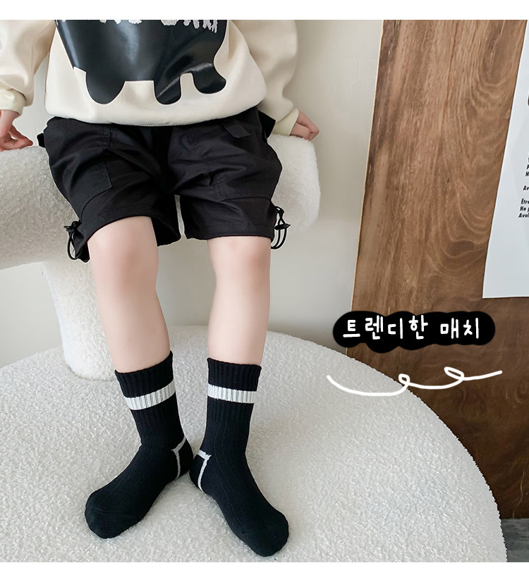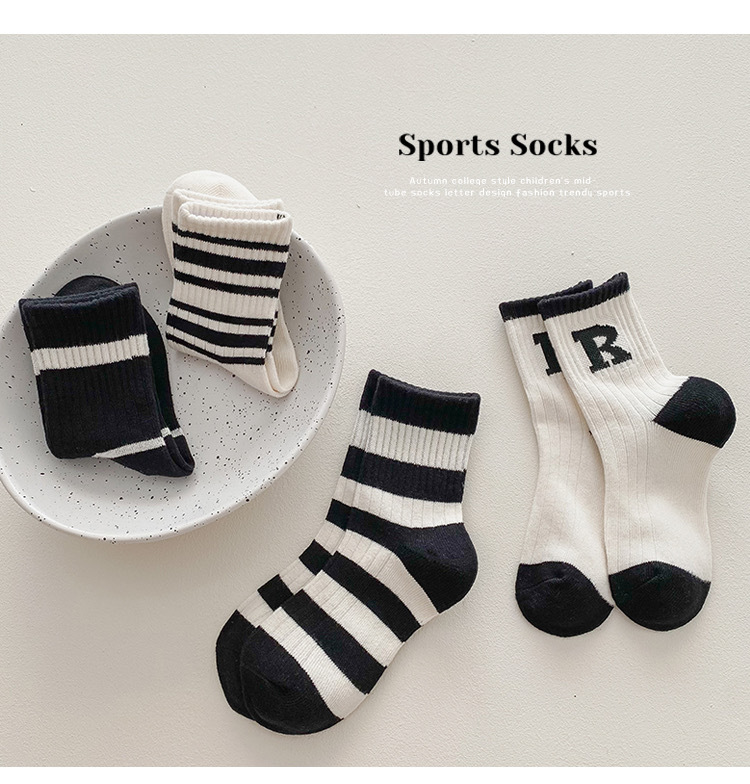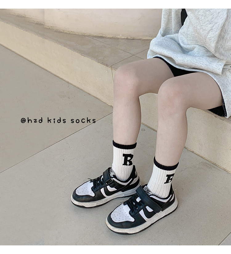 儿童袜子韩版秋冬新款男童女童潮袜中大童棉袜黑白条纹儿童中筒袜
