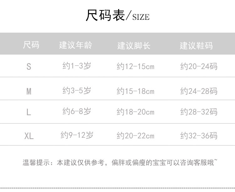 | L【6-8岁 17-20cm】 | USD $0.47 | 29980 pair available |