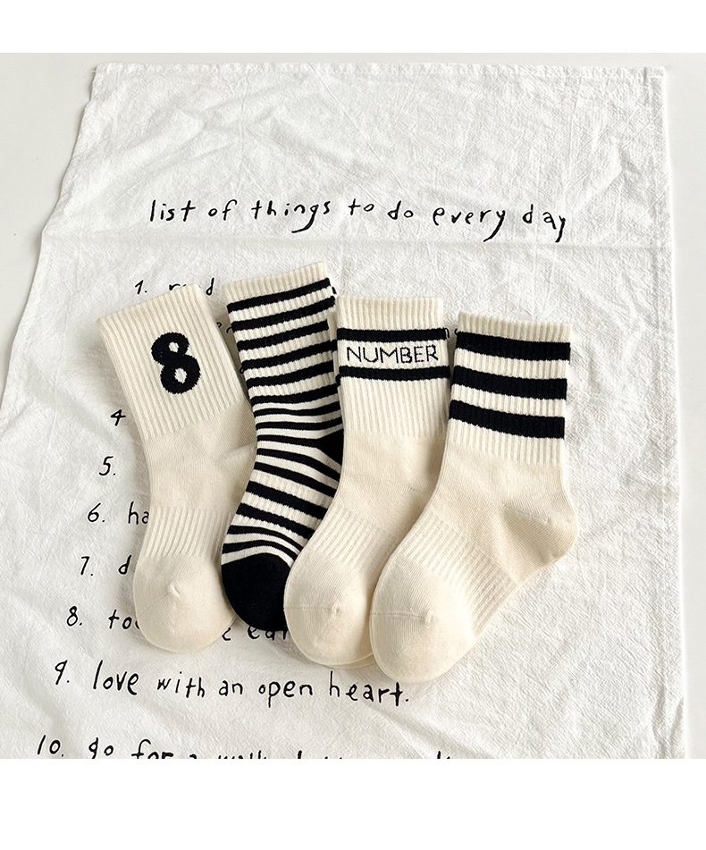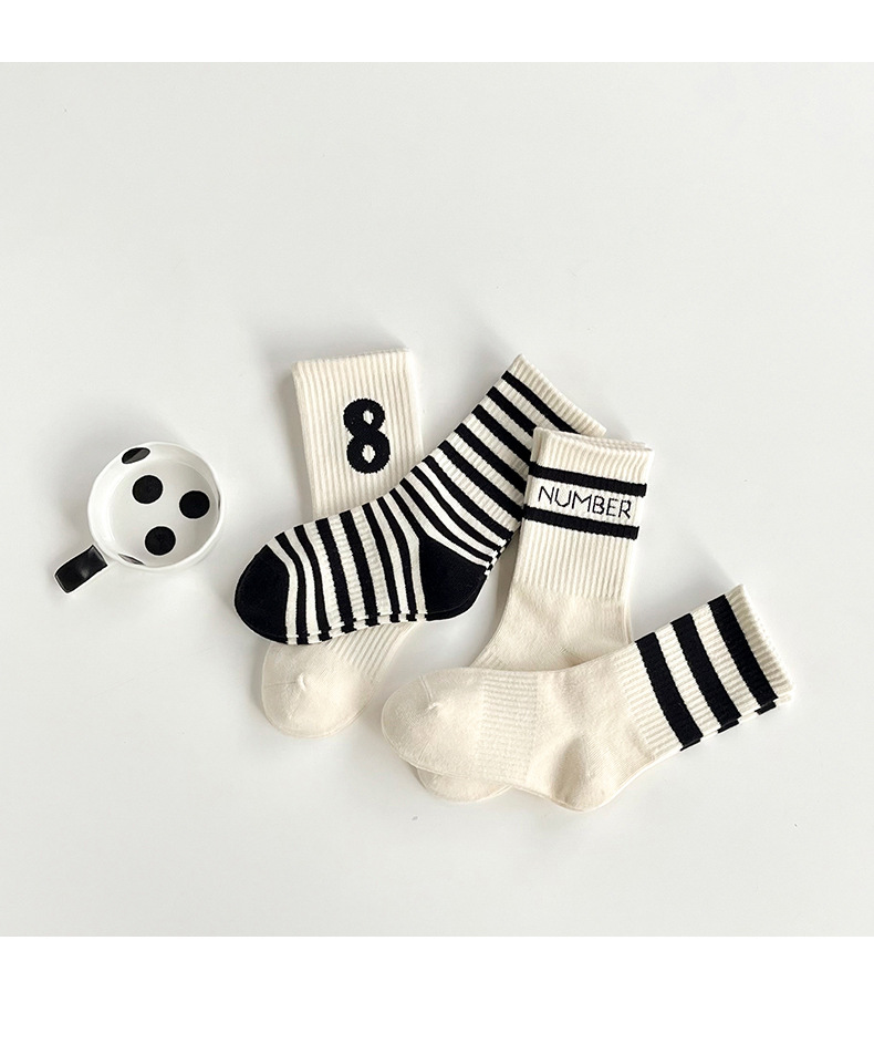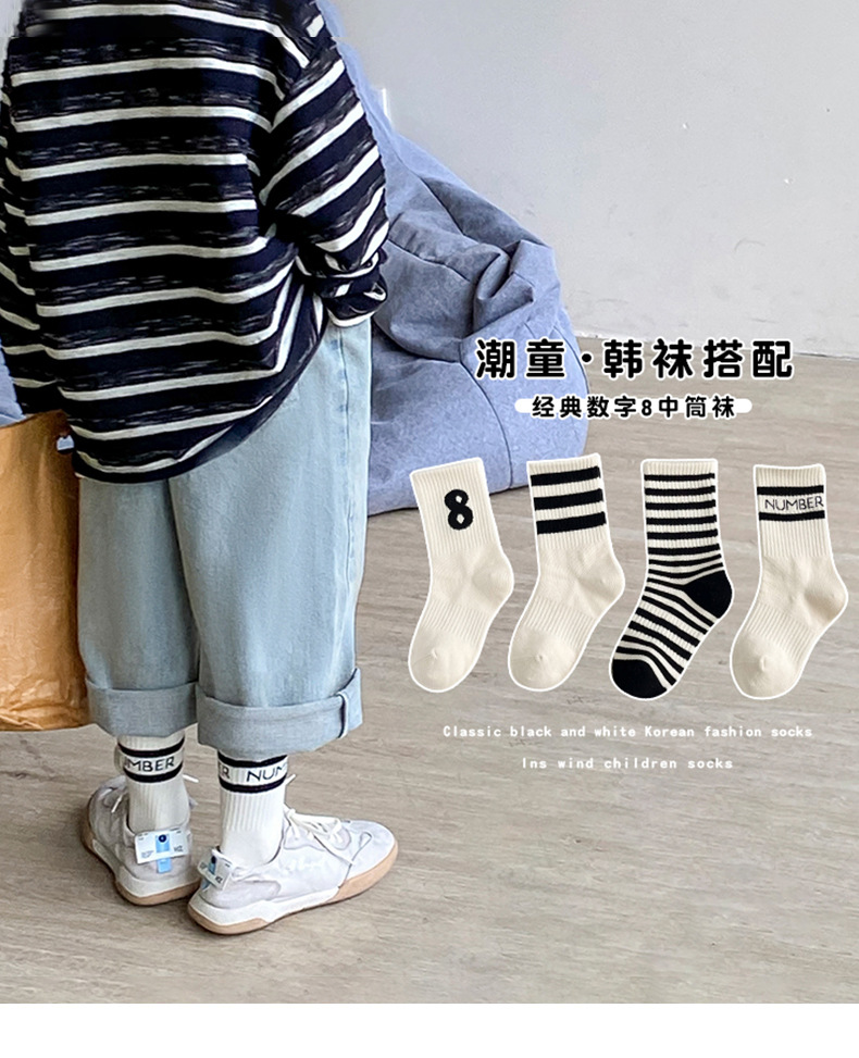 儿童袜子秋季韩版黑白中筒袜男童学院风棉袜女童百搭无骨运动潮袜