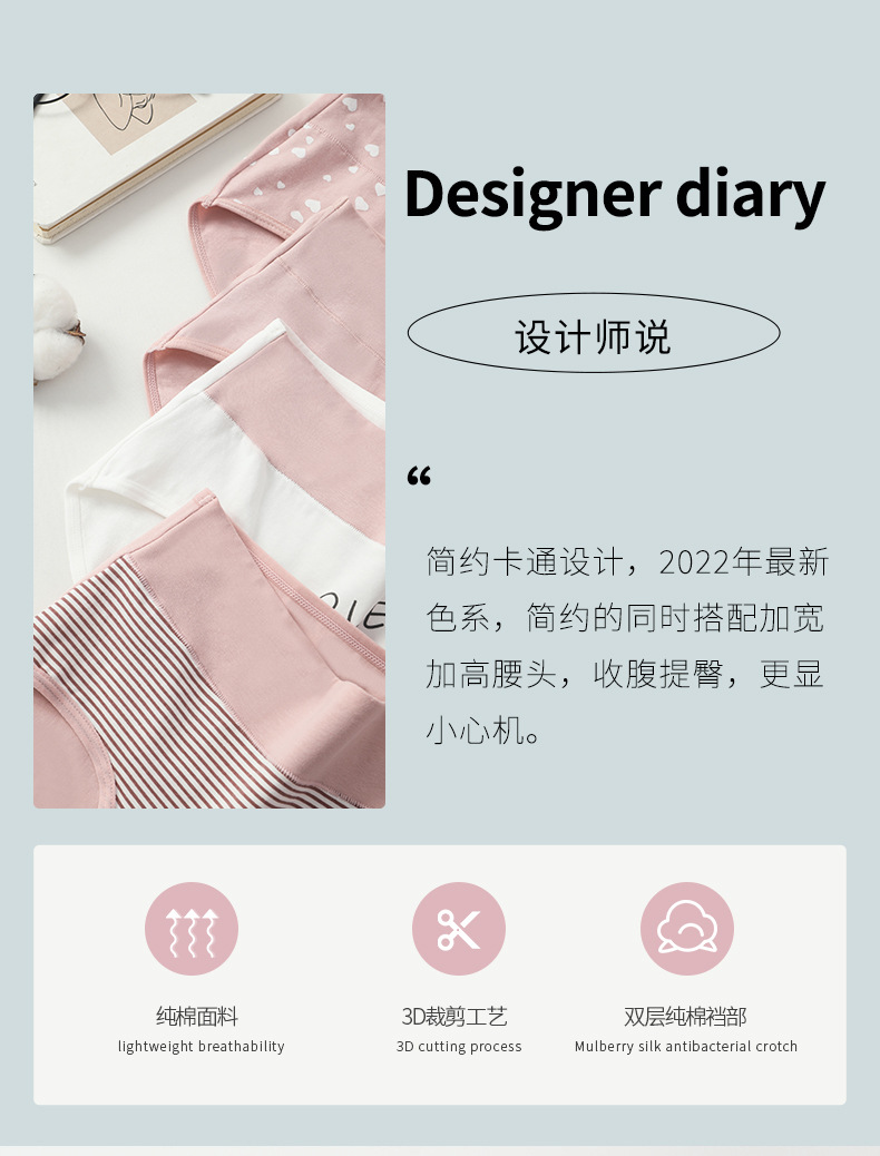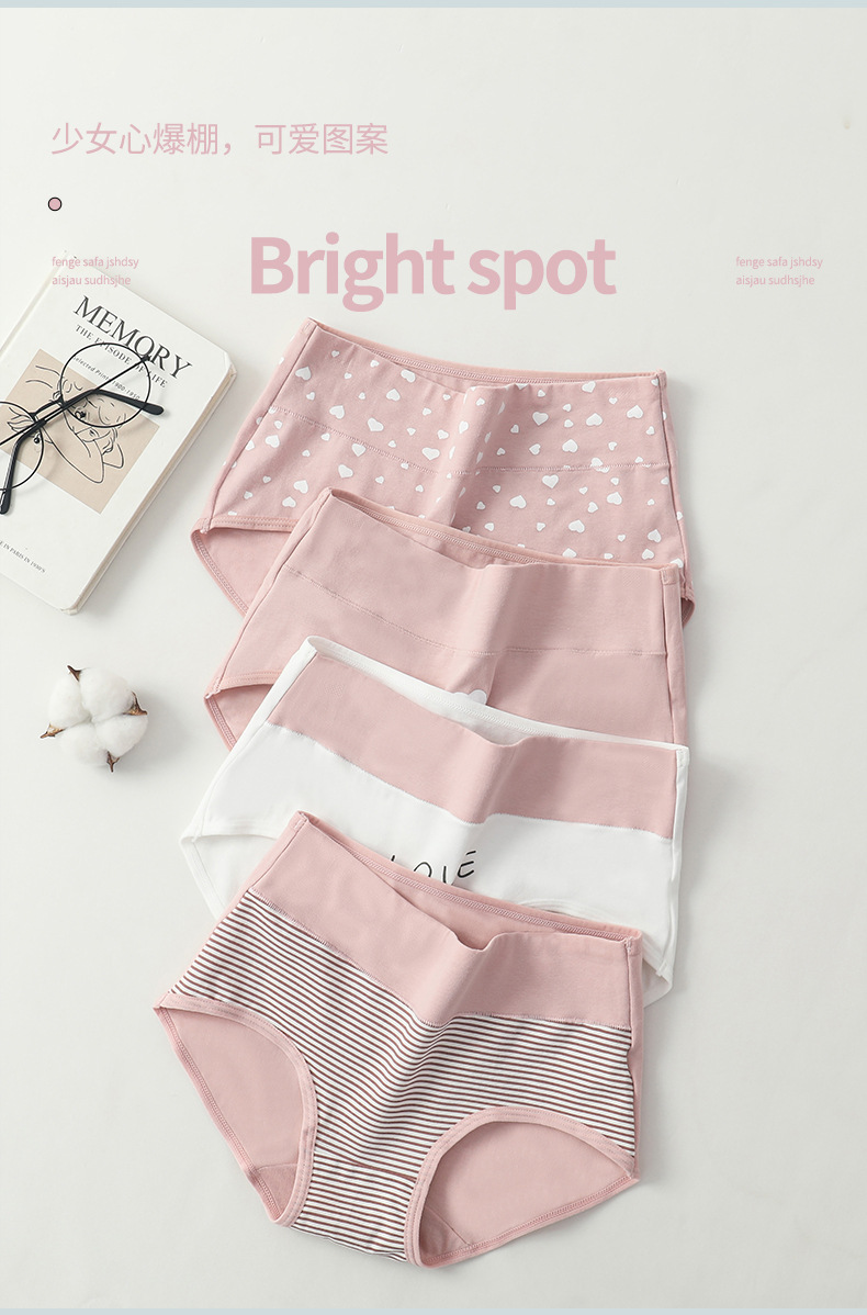 跨境大码纯棉内裤少女印花欧美高腰收腹胖女生无痕全棉三角短裤