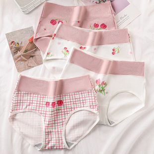 高腰内裤女收腹大码印花纯棉提臀女士无痕三角内裤