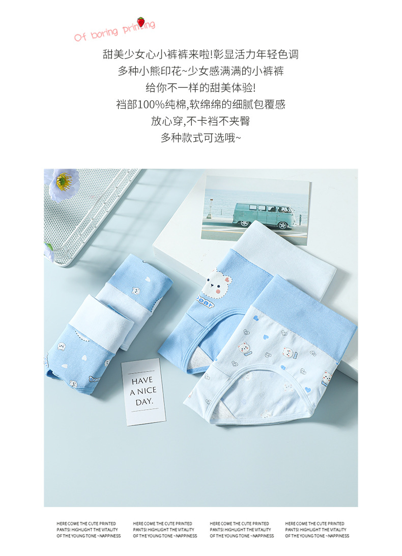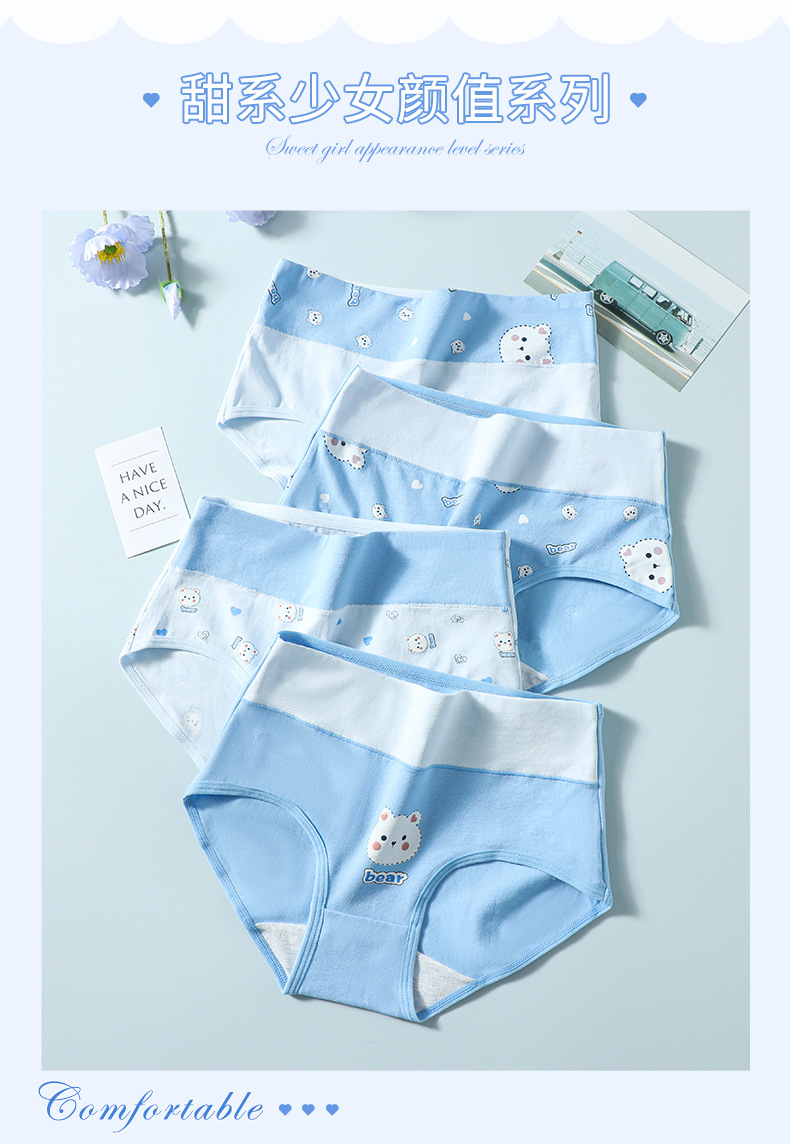 日系内裤女纯棉高腰收腹少女无痕可爱卡通全棉档女生短裤