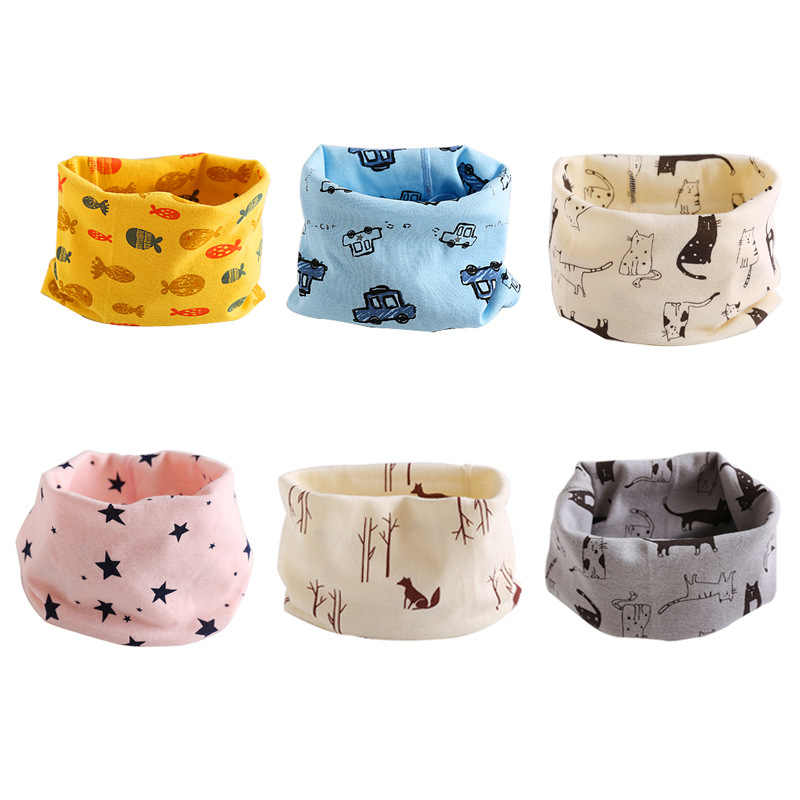 卡通动物秋冬季印花棉儿童脖套全棉宝宝围巾单层男女童百变围脖