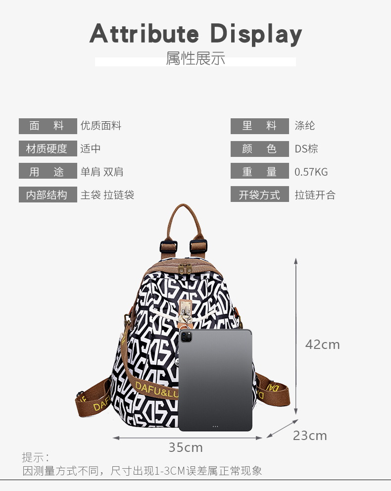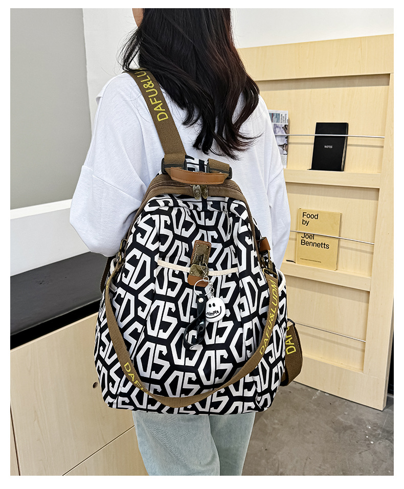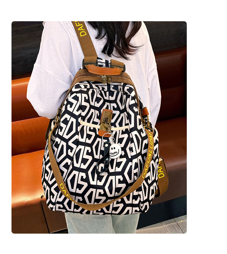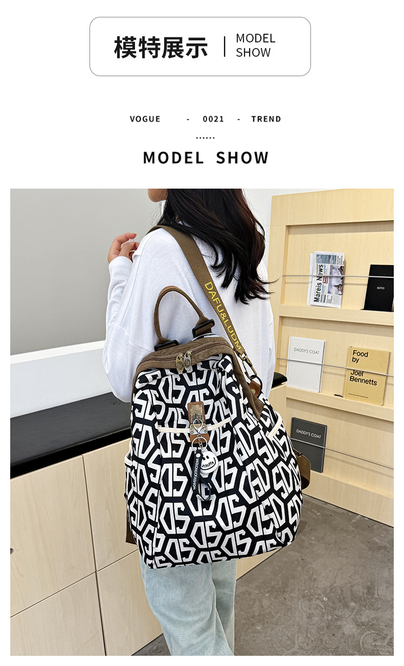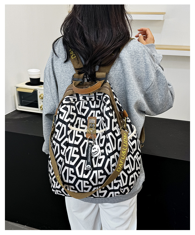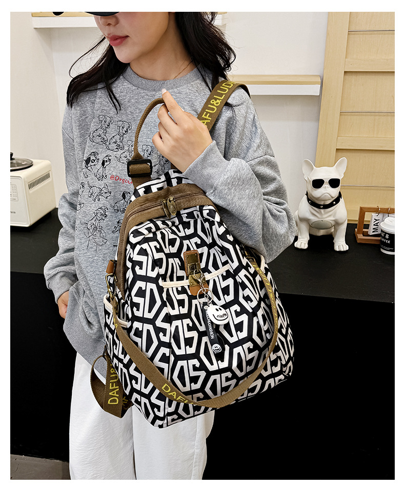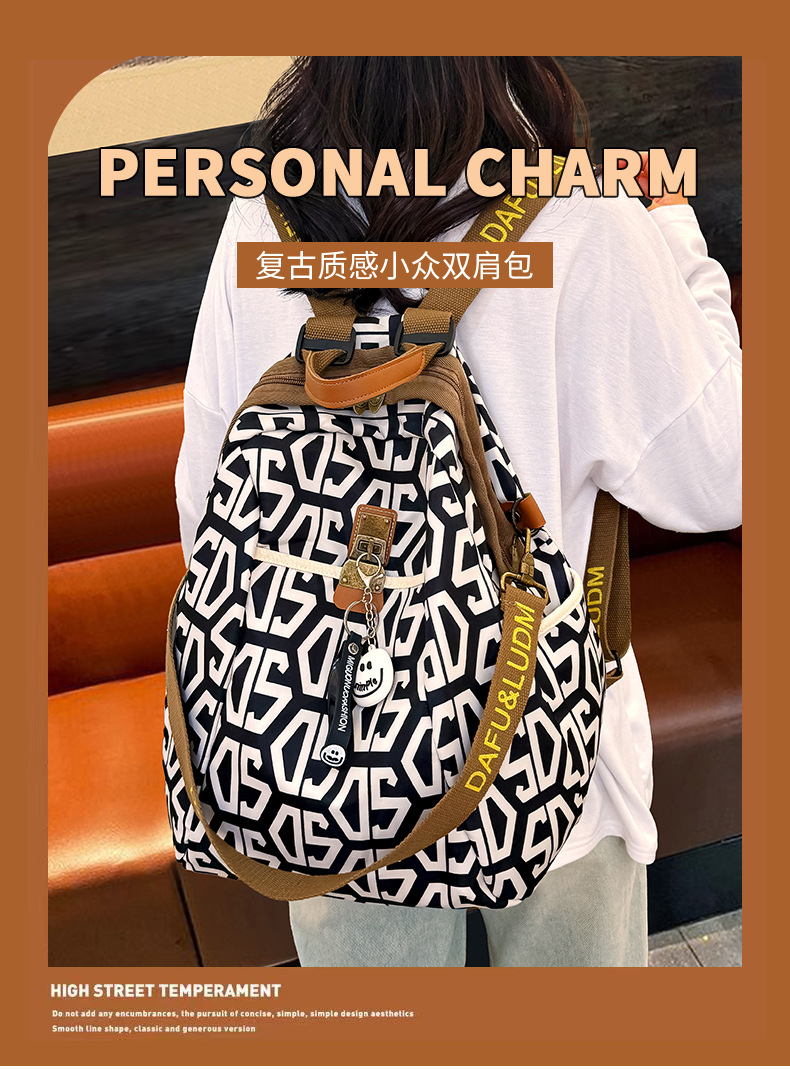 新款双肩包女士时尚字母印花可单肩可斜挎背包