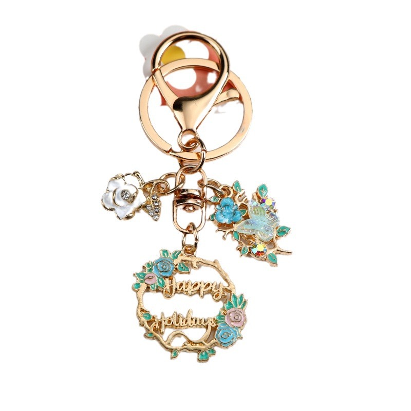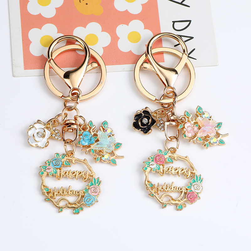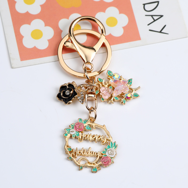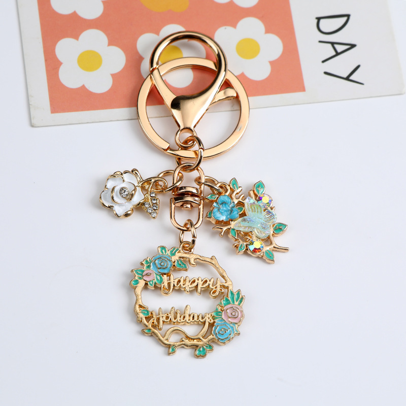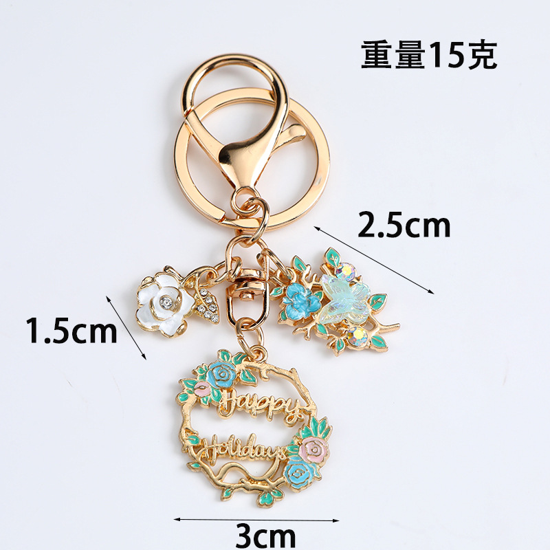 新款金属英文字母钥匙扣少女花朵合金滴油配饰挂件包包装饰小礼品