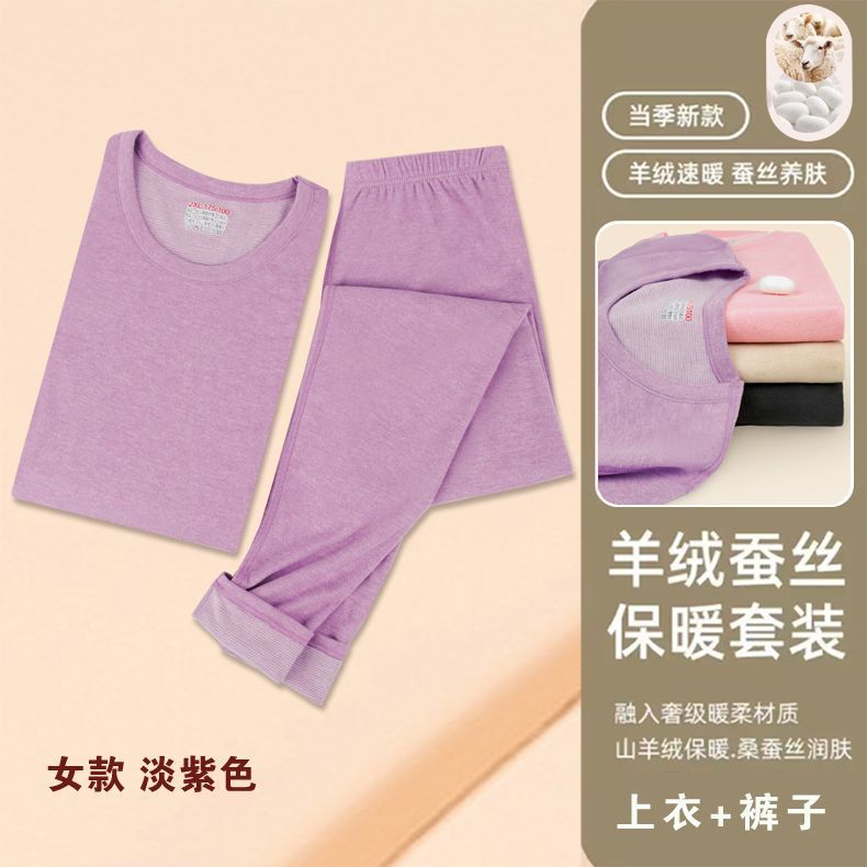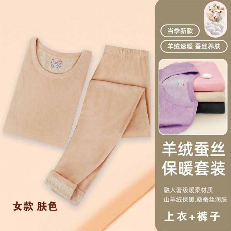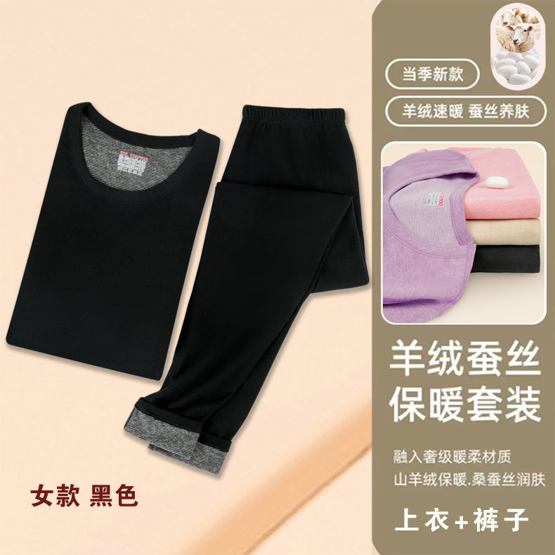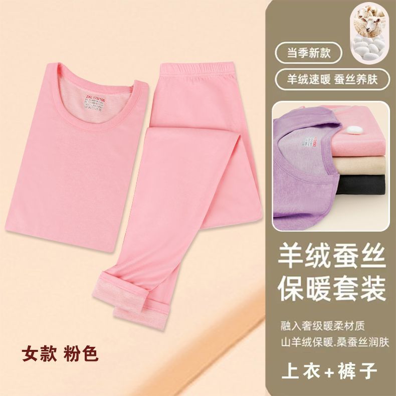 山羊绒桑蚕丝男士保暖内衣情侣套装德双面绒磨毛男女秋衣秋裤代发