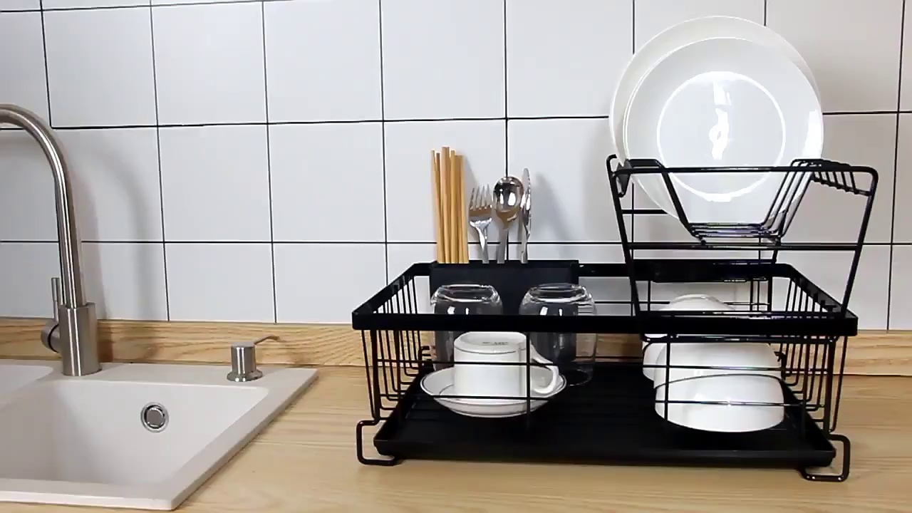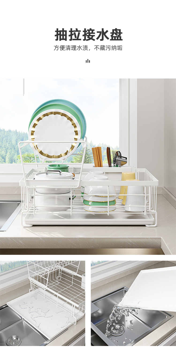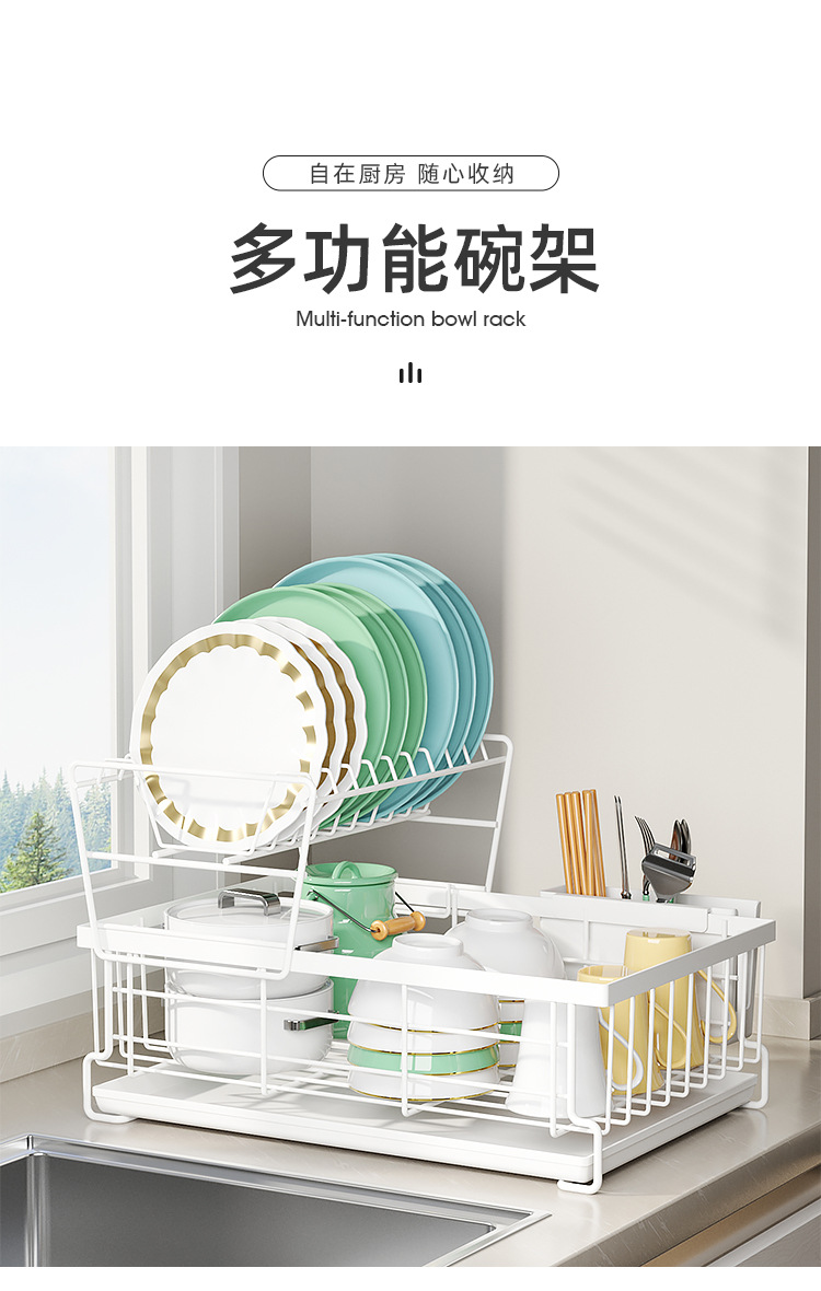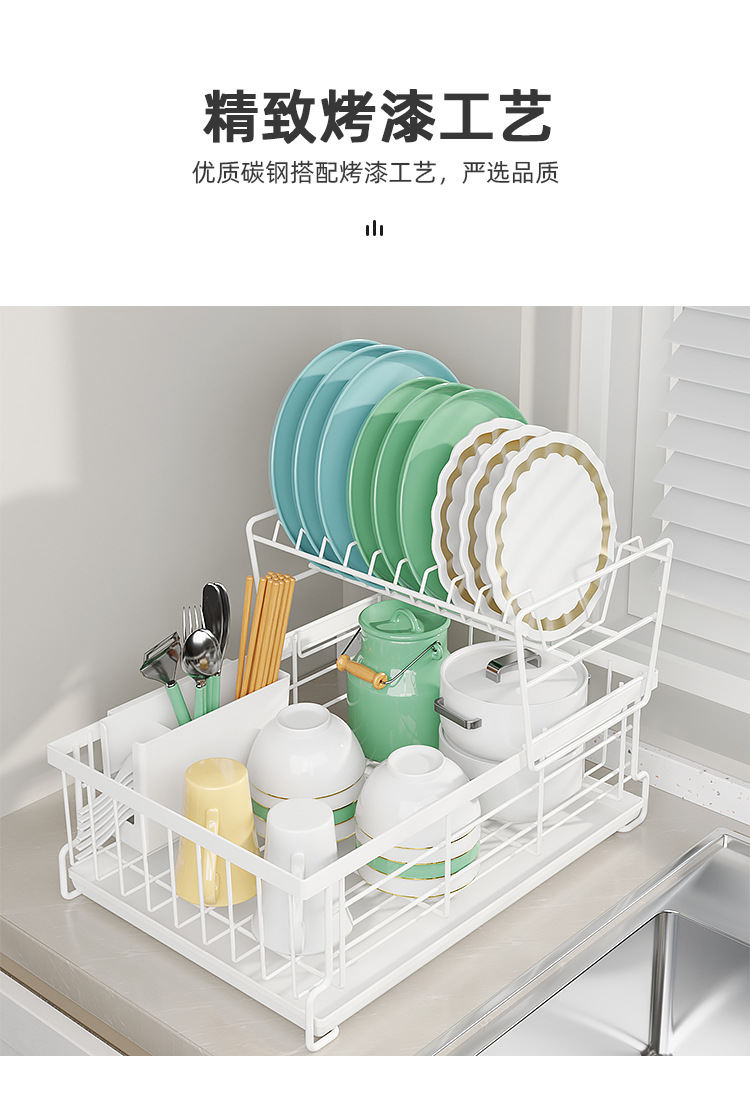 厨房日式双层碗碟收纳架桌面碗架子置物架 多功能抽拉沥水碗盘架 |