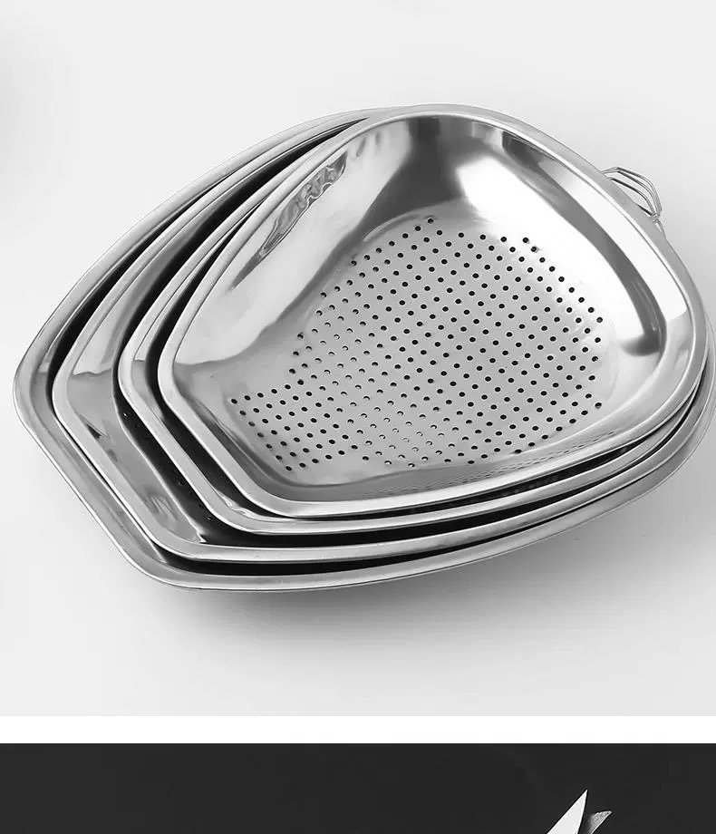不锈钢筲箕带磁无磁家用水果蔬菜沥水篮多用淘菜晾晒密孔大号厨房