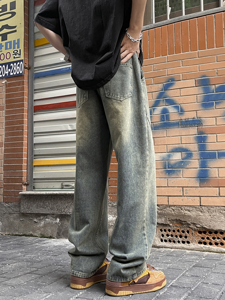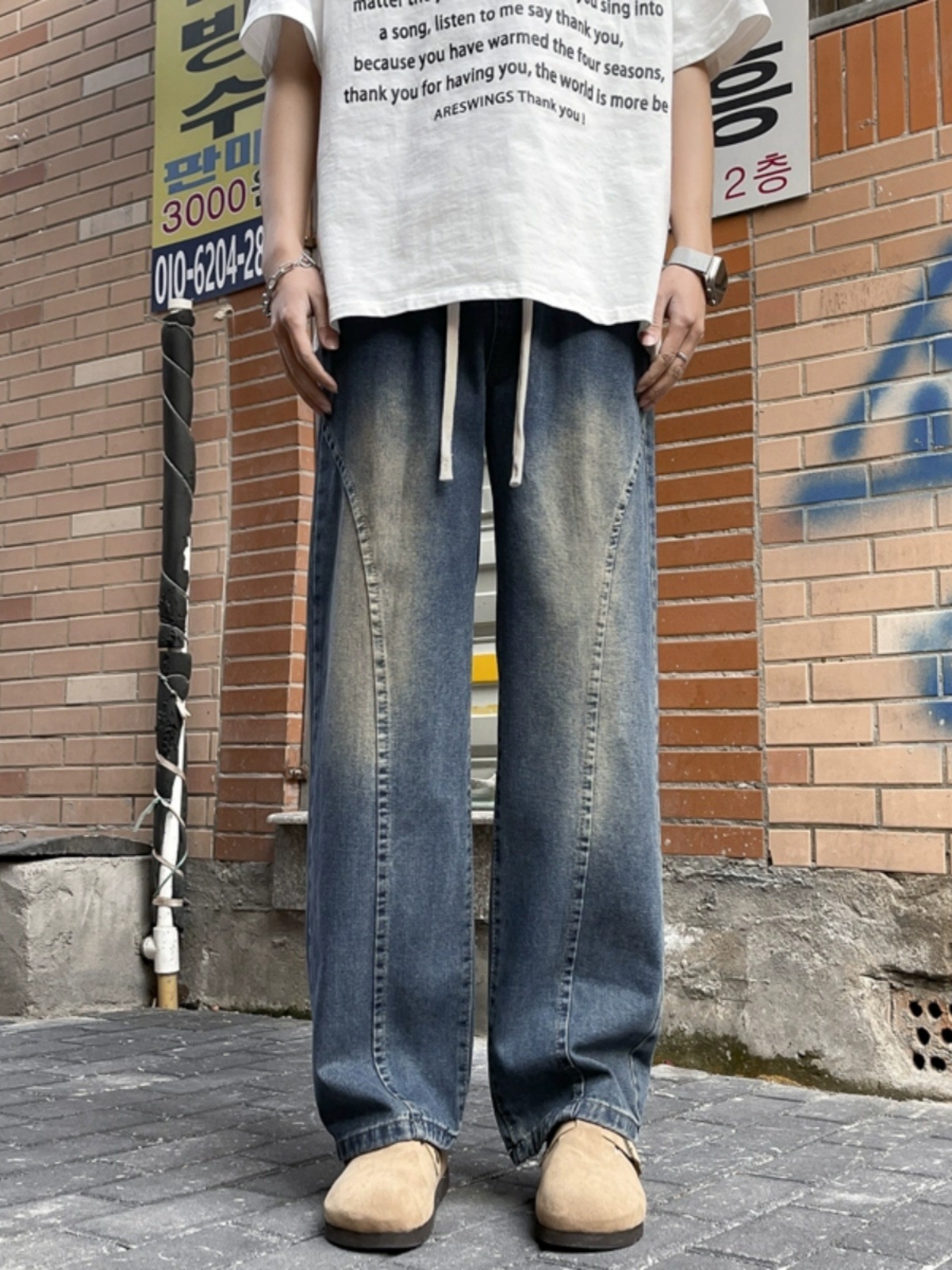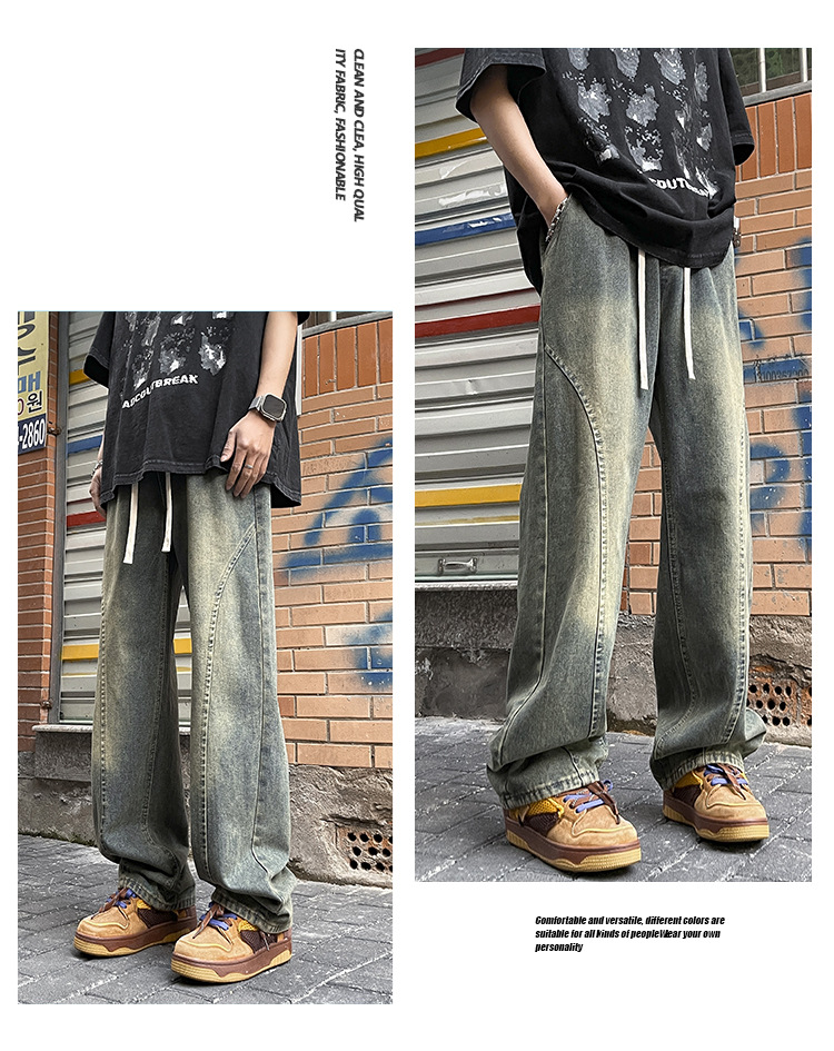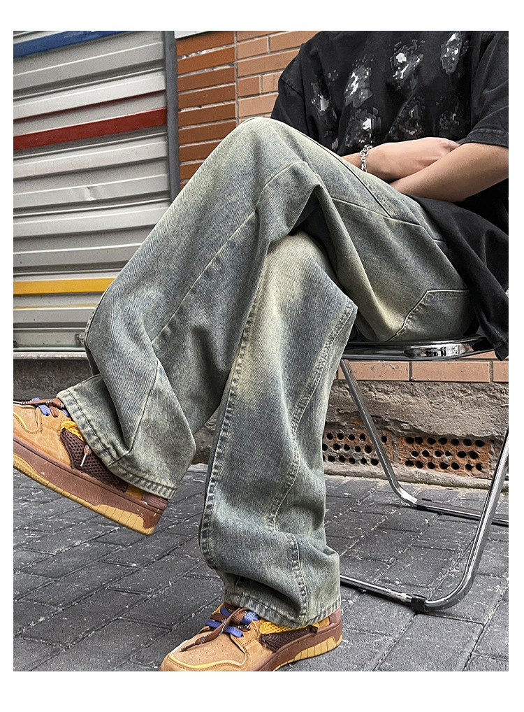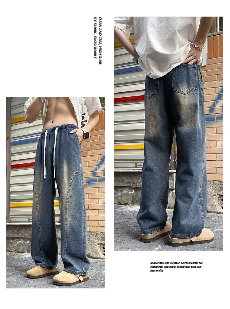 美式复古牛仔裤男春秋季新款vibe高街裤子潮牌痞帅宽松阔腿微喇裤