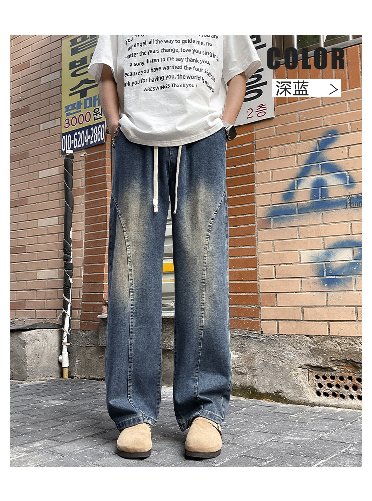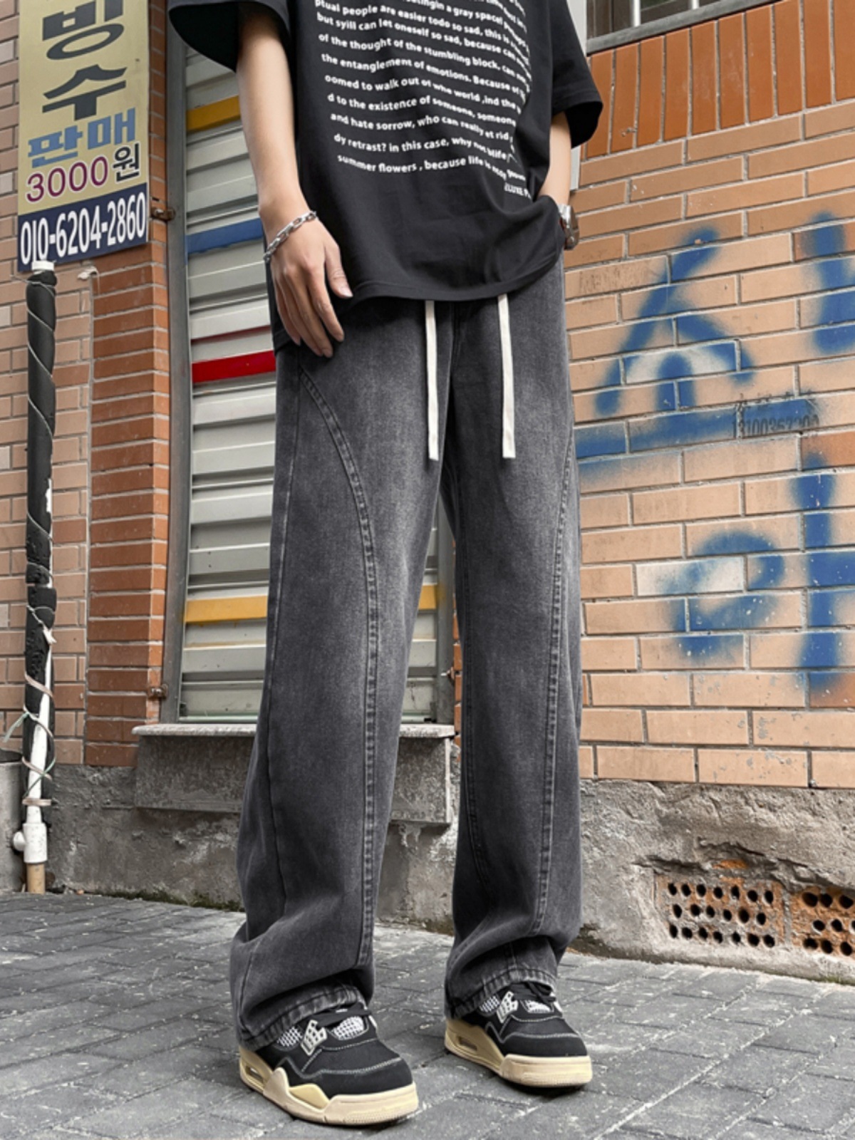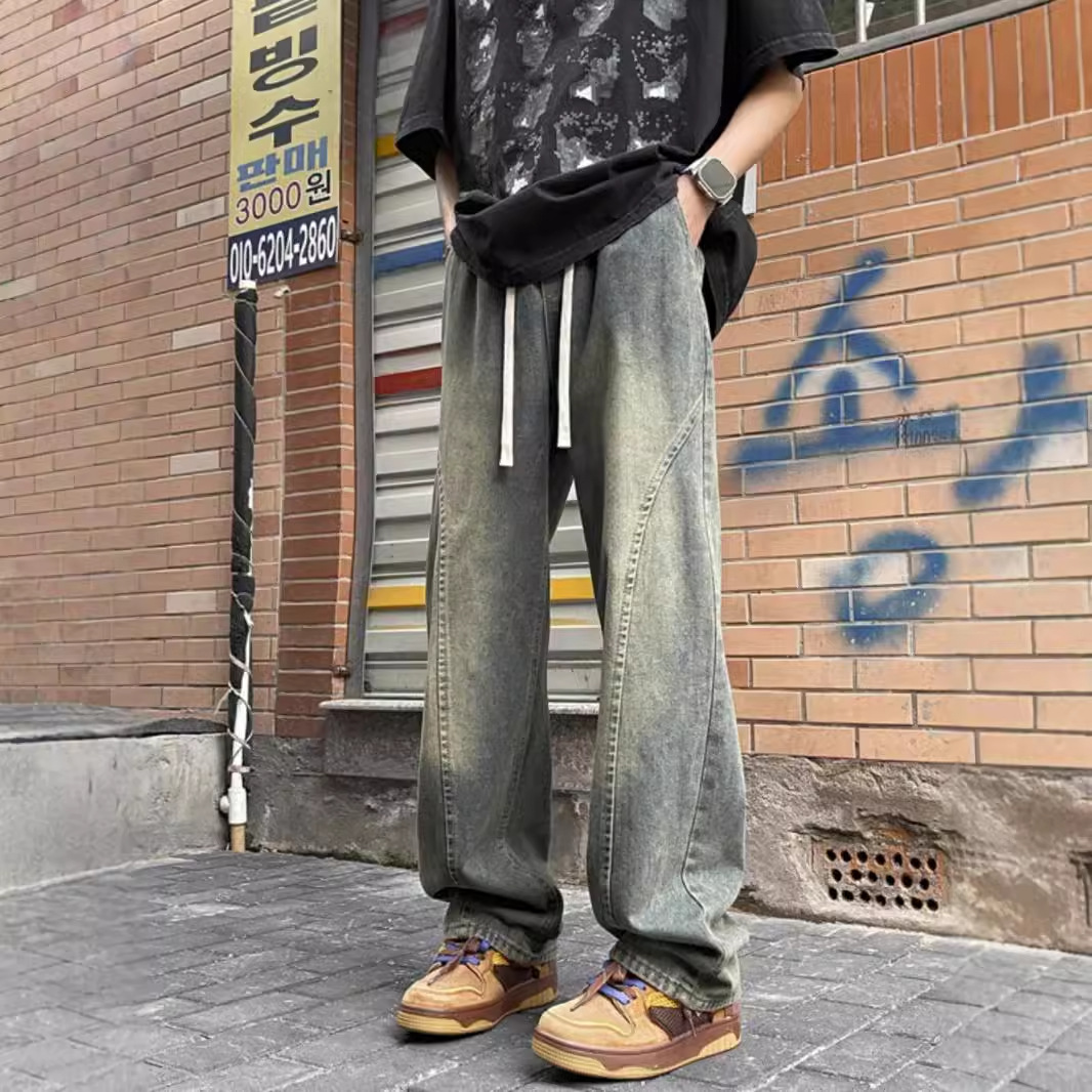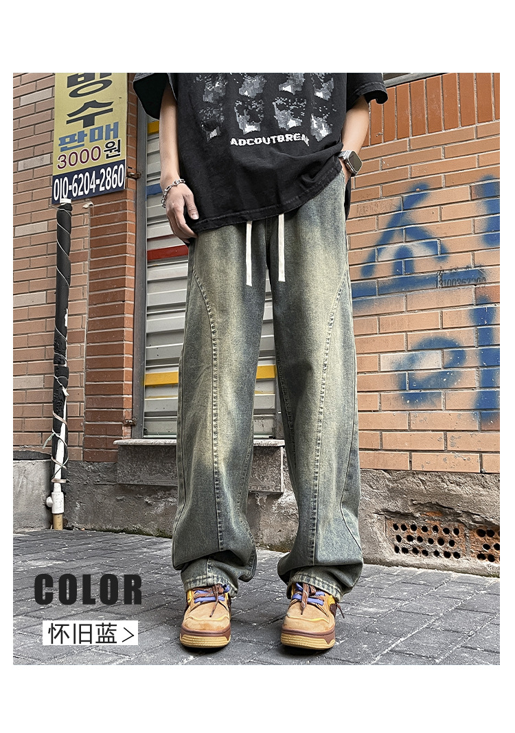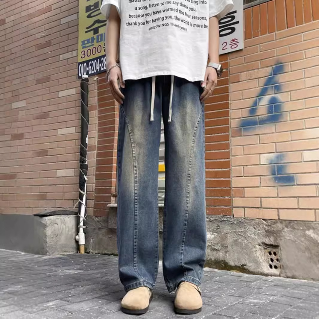 美式复古牛仔裤男春秋季新款vibe高街裤子潮牌痞帅宽松阔腿微喇裤