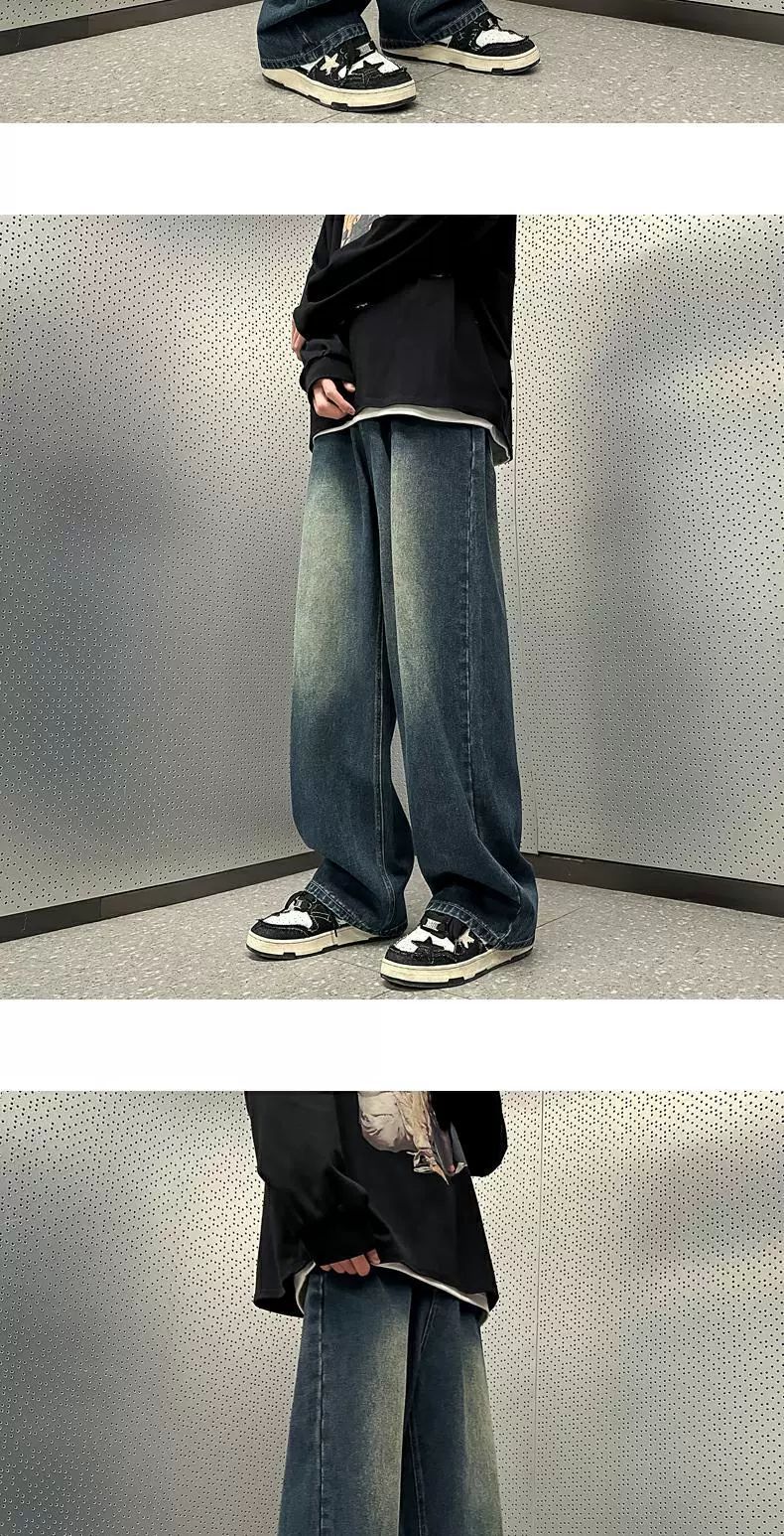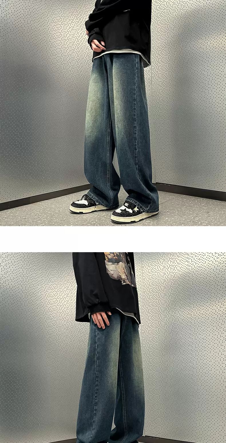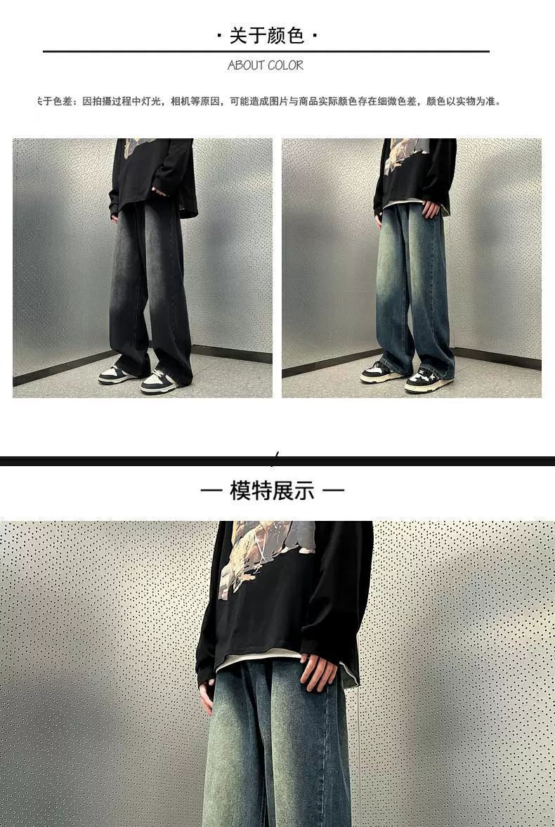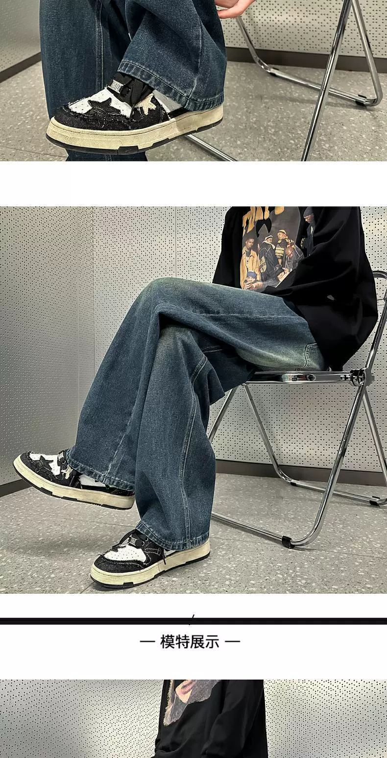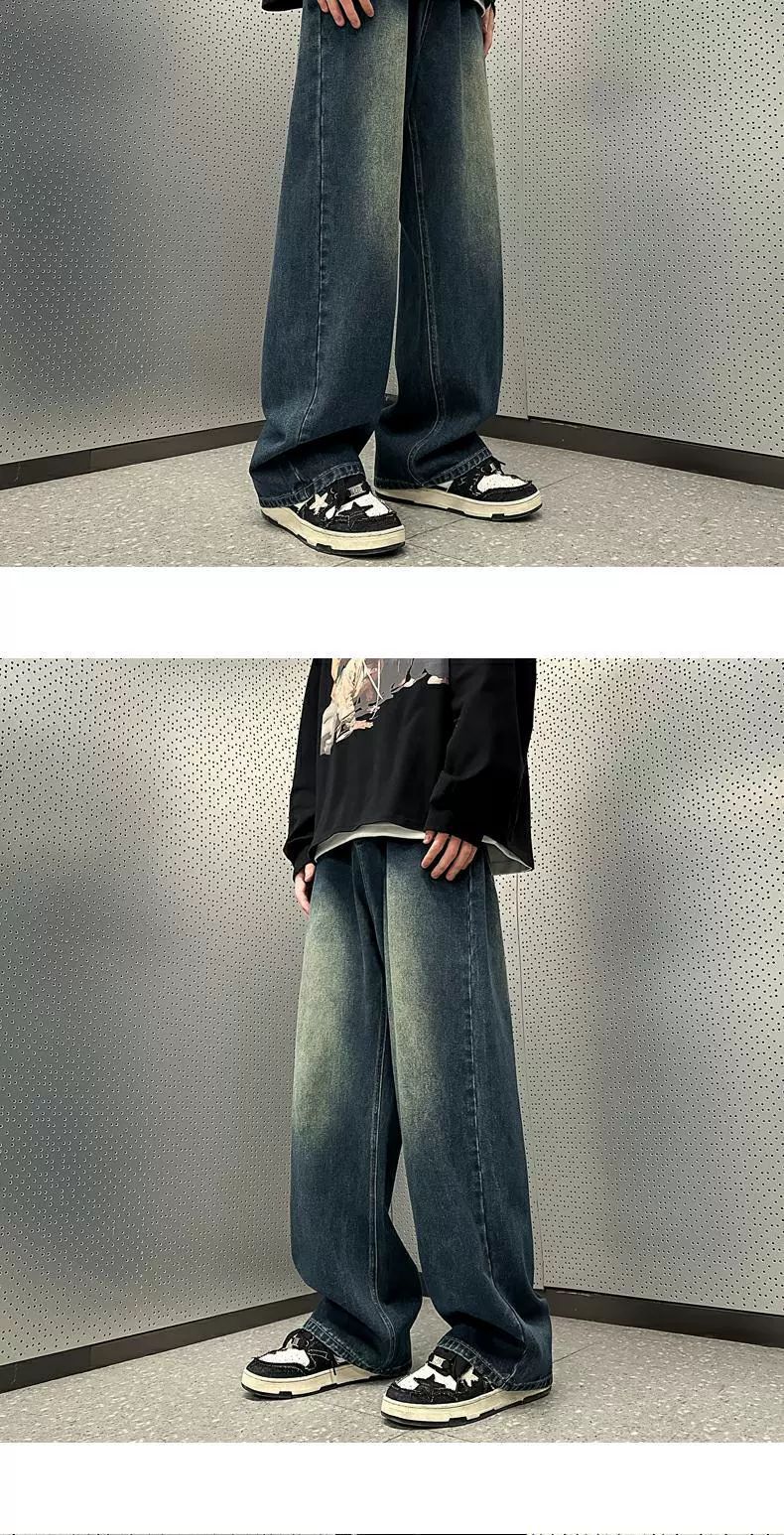 复古蓝牛仔裤男款宽松做旧oversize裤子美式休闲垂感阔腿拖地裤潮