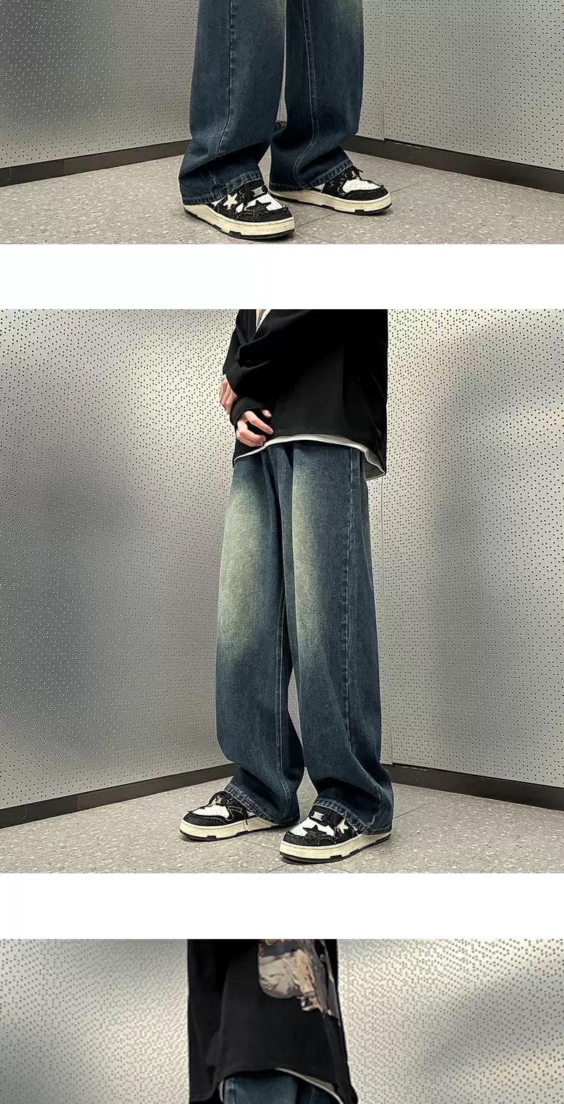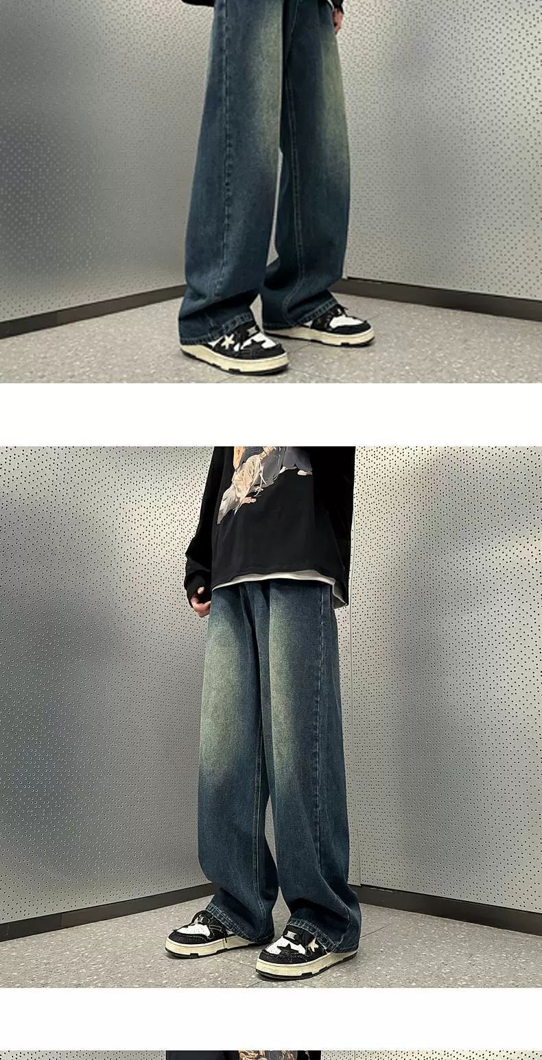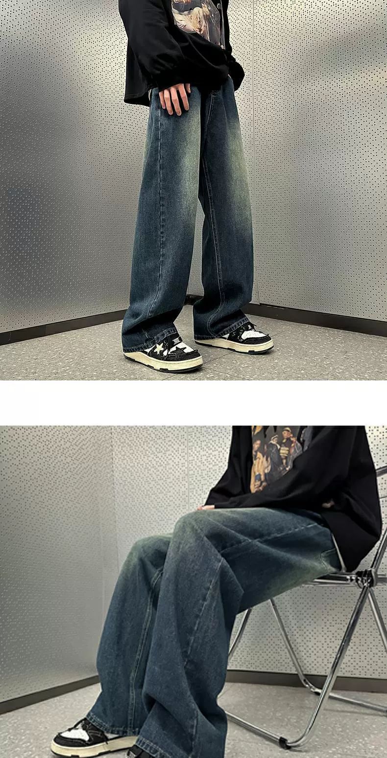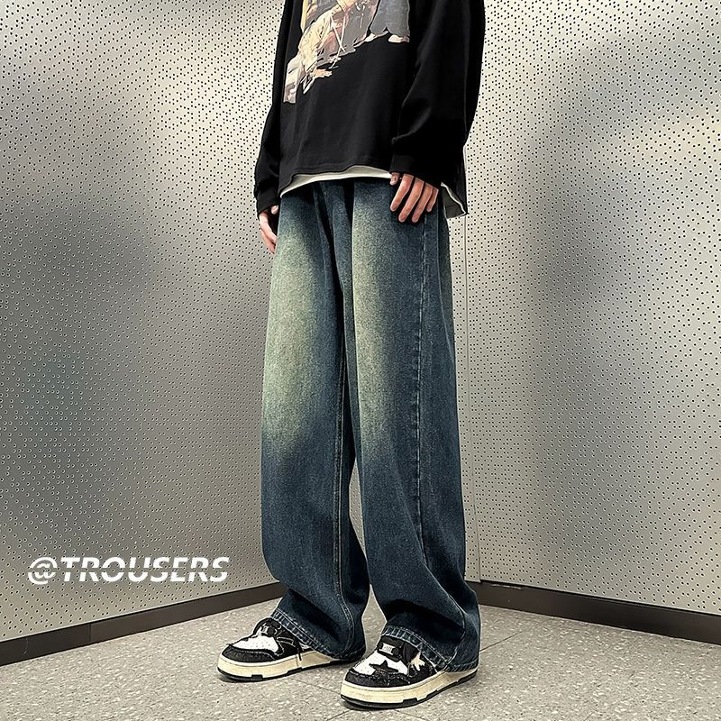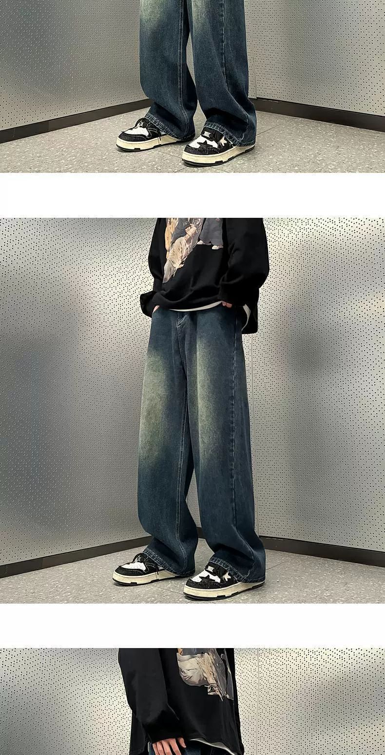 复古蓝牛仔裤男款宽松做旧oversize裤子美式休闲垂感阔腿拖地裤潮