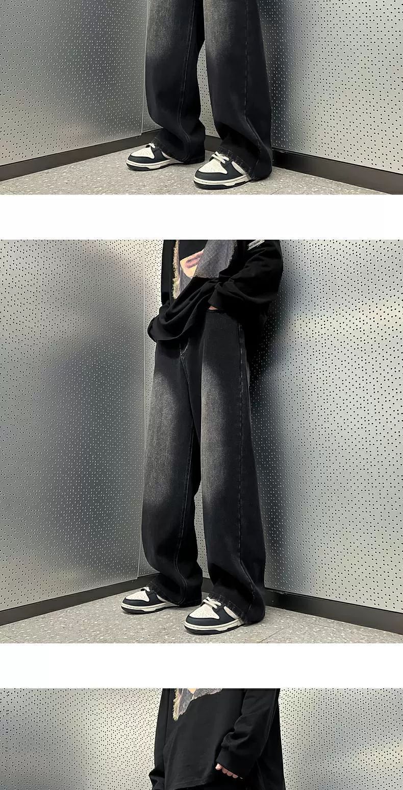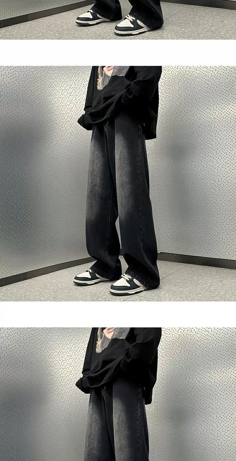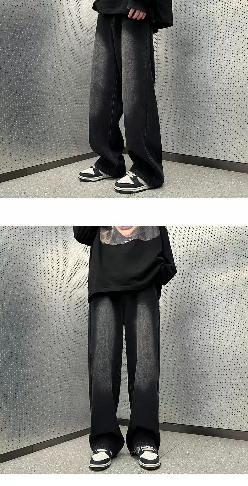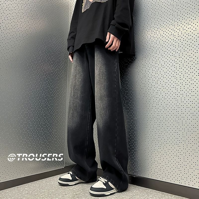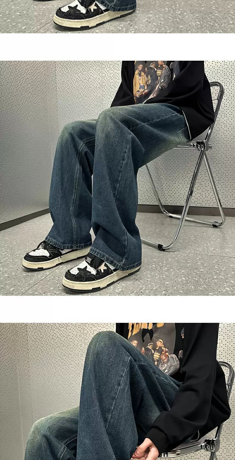 复古蓝牛仔裤男款宽松做旧oversize裤子美式休闲垂感阔腿拖地裤潮