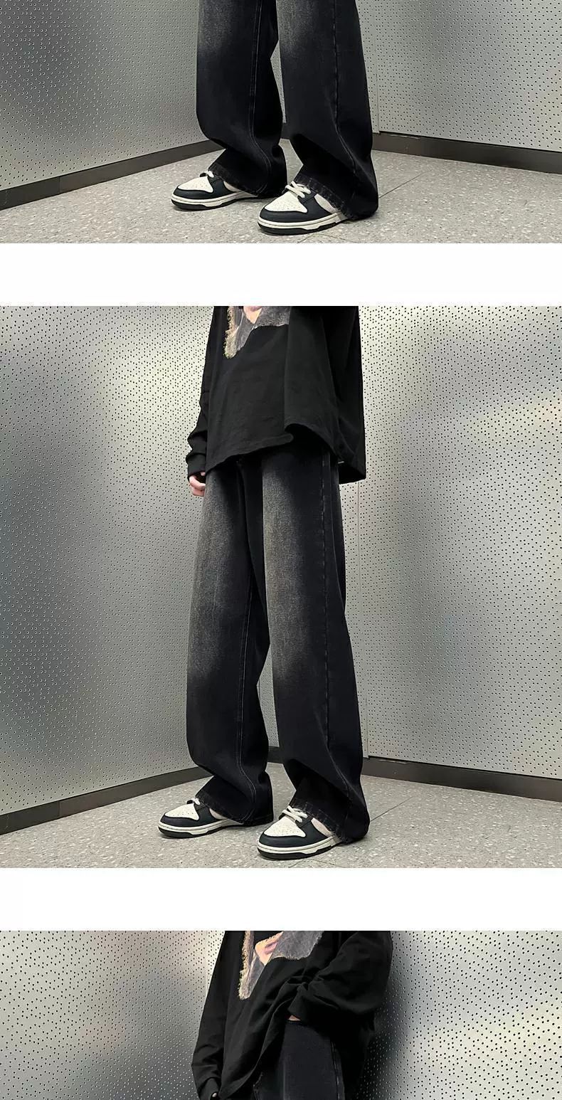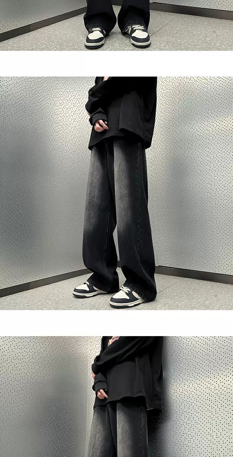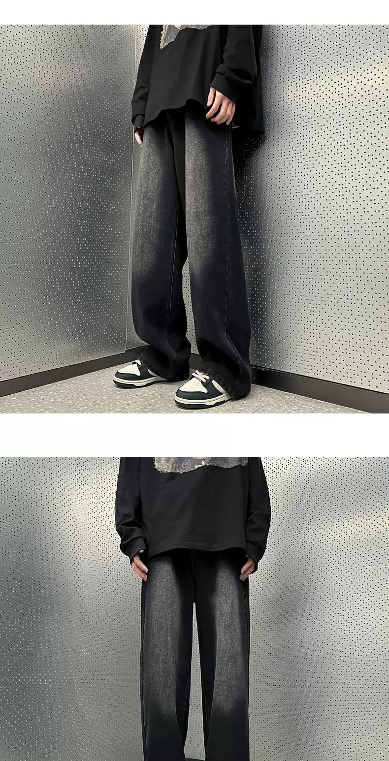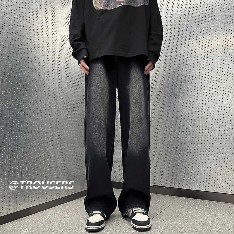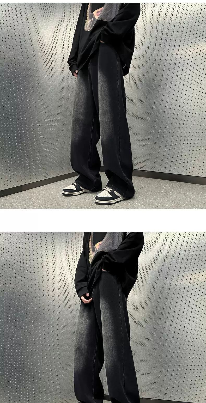 复古蓝牛仔裤男款宽松做旧oversize裤子美式休闲垂感阔腿拖地裤潮