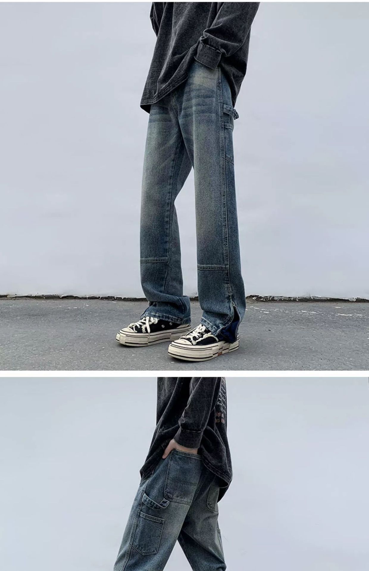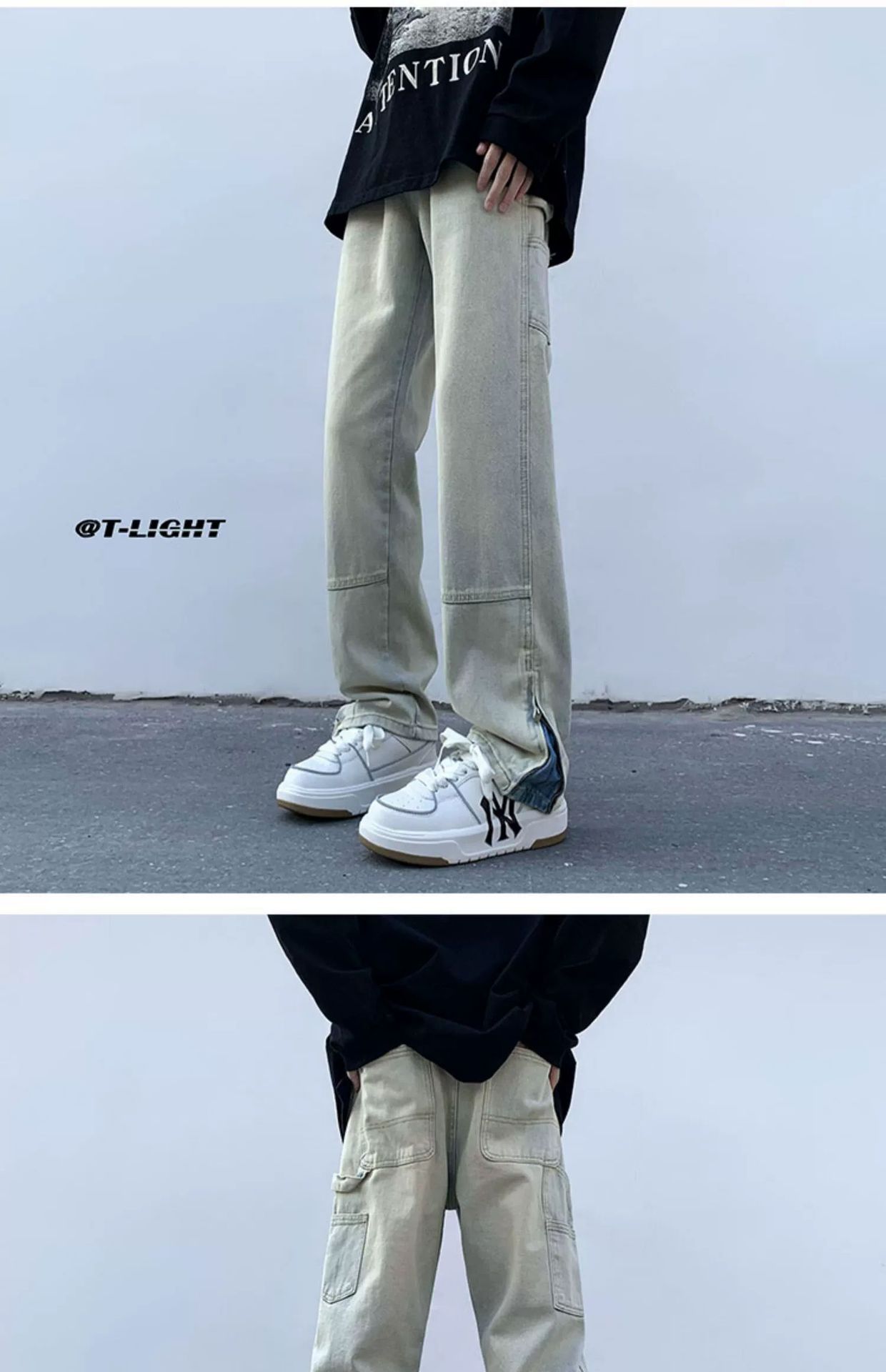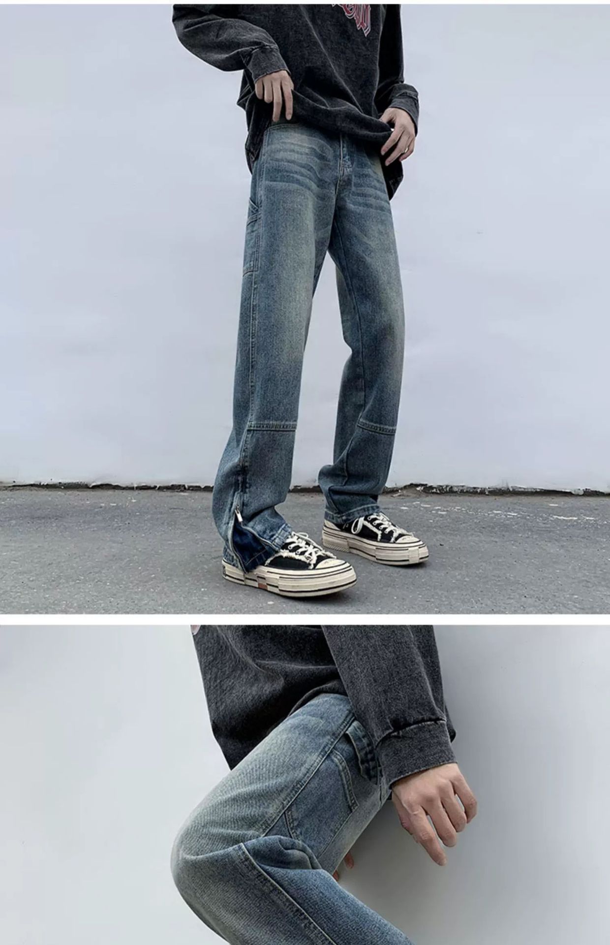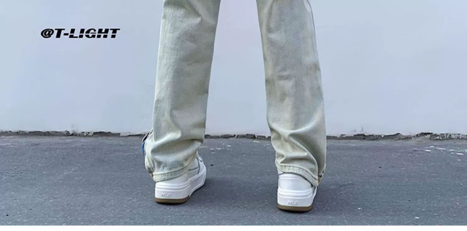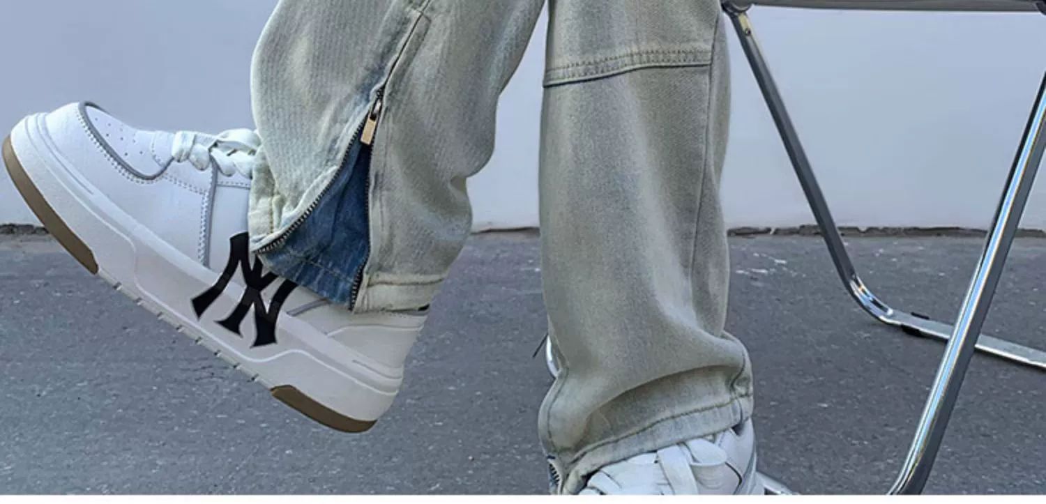 黄泥染牛仔裤男春夏拉链开叉高街潮牌宽松直筒裤潮流ins复古长裤