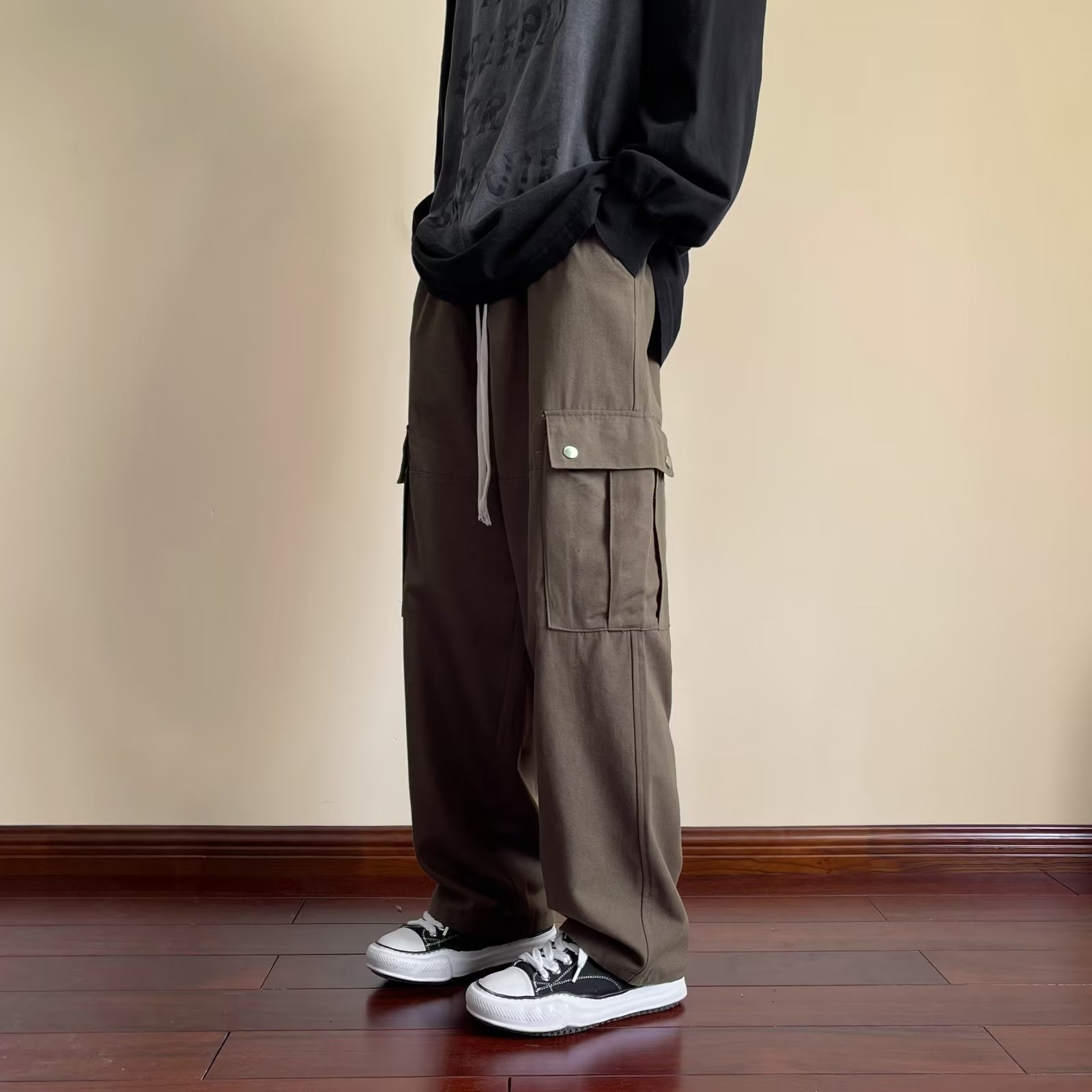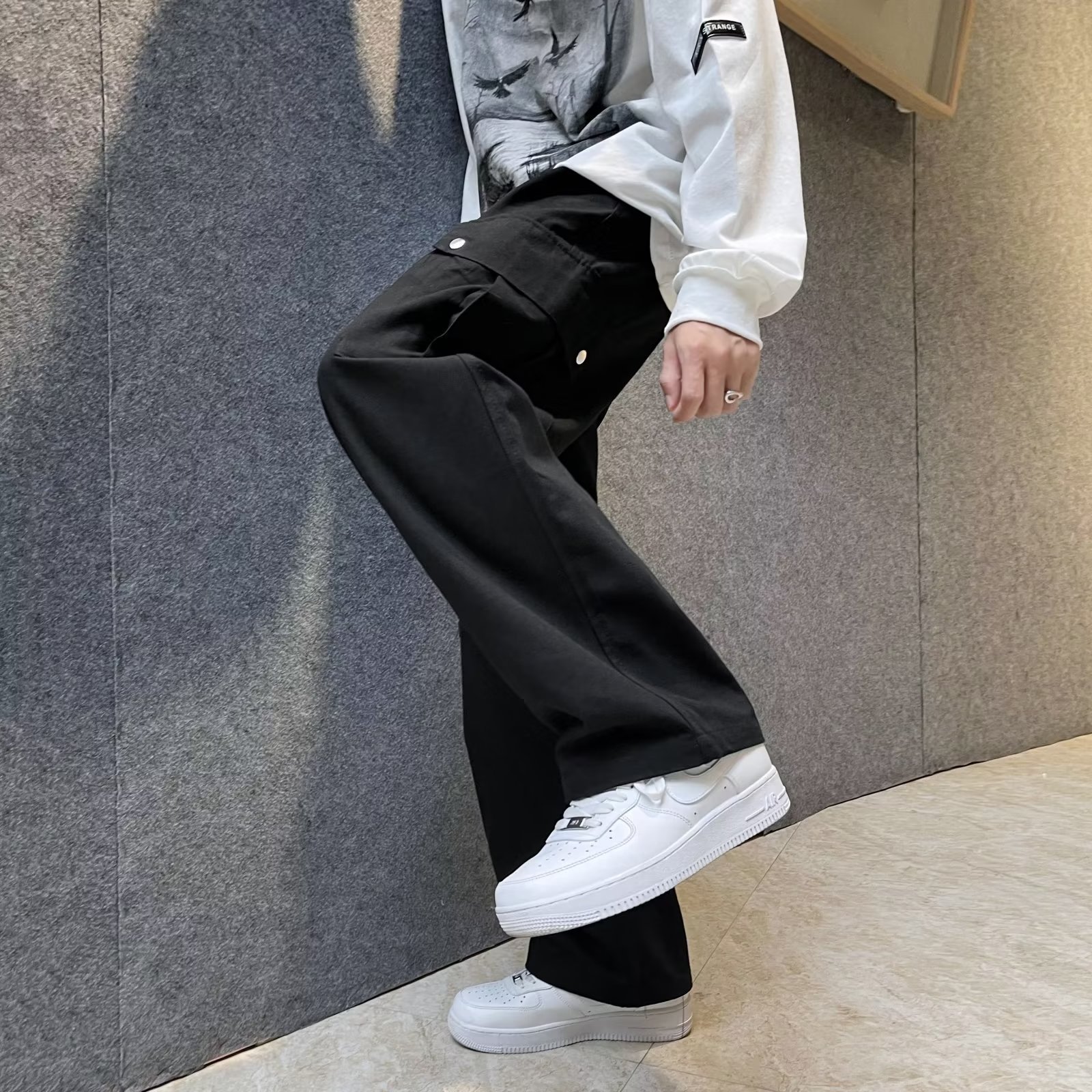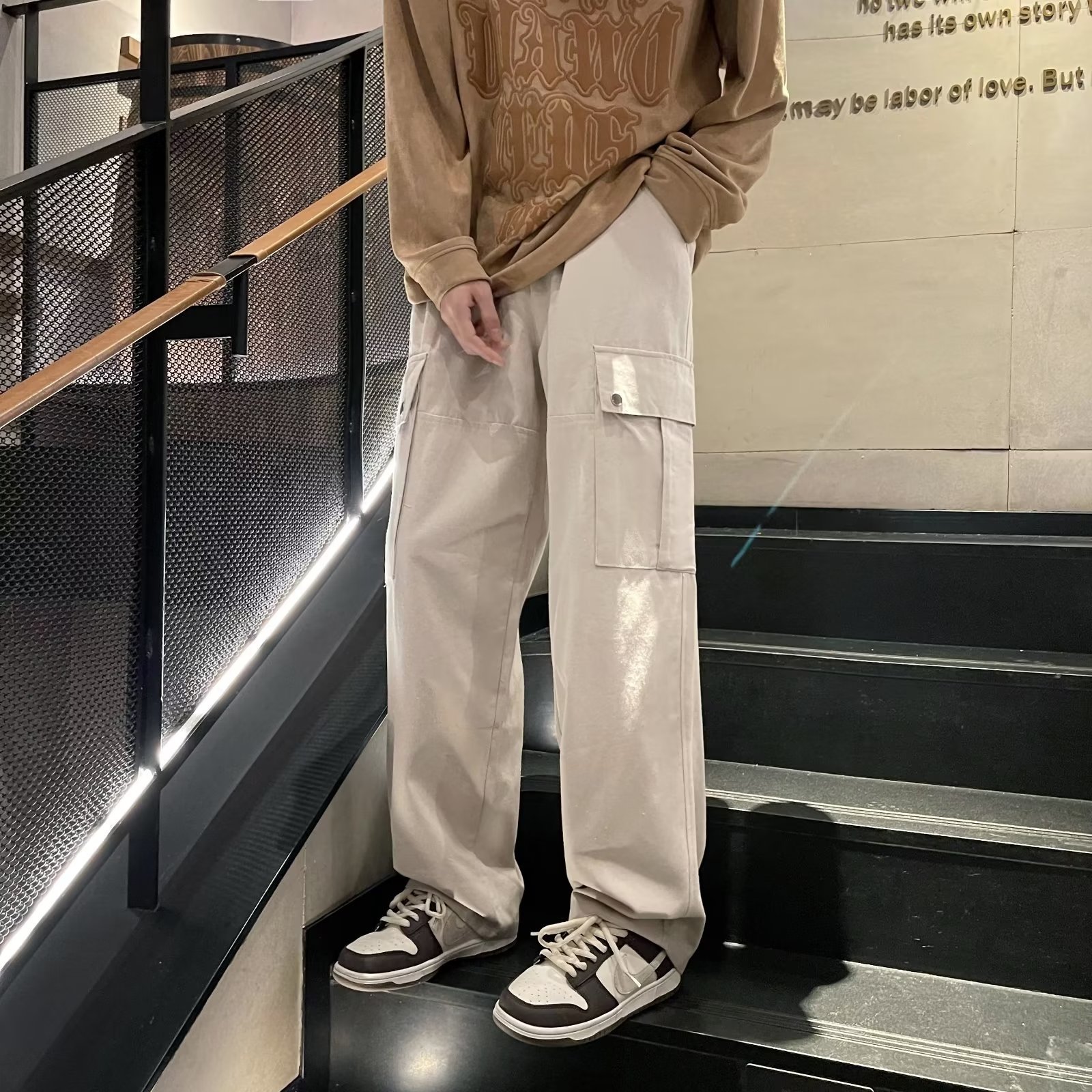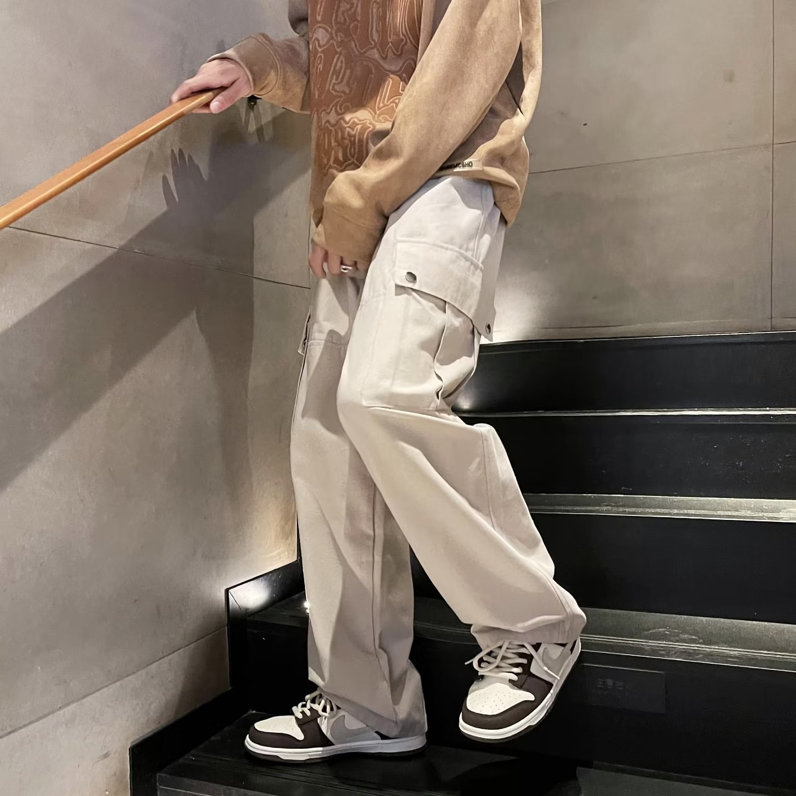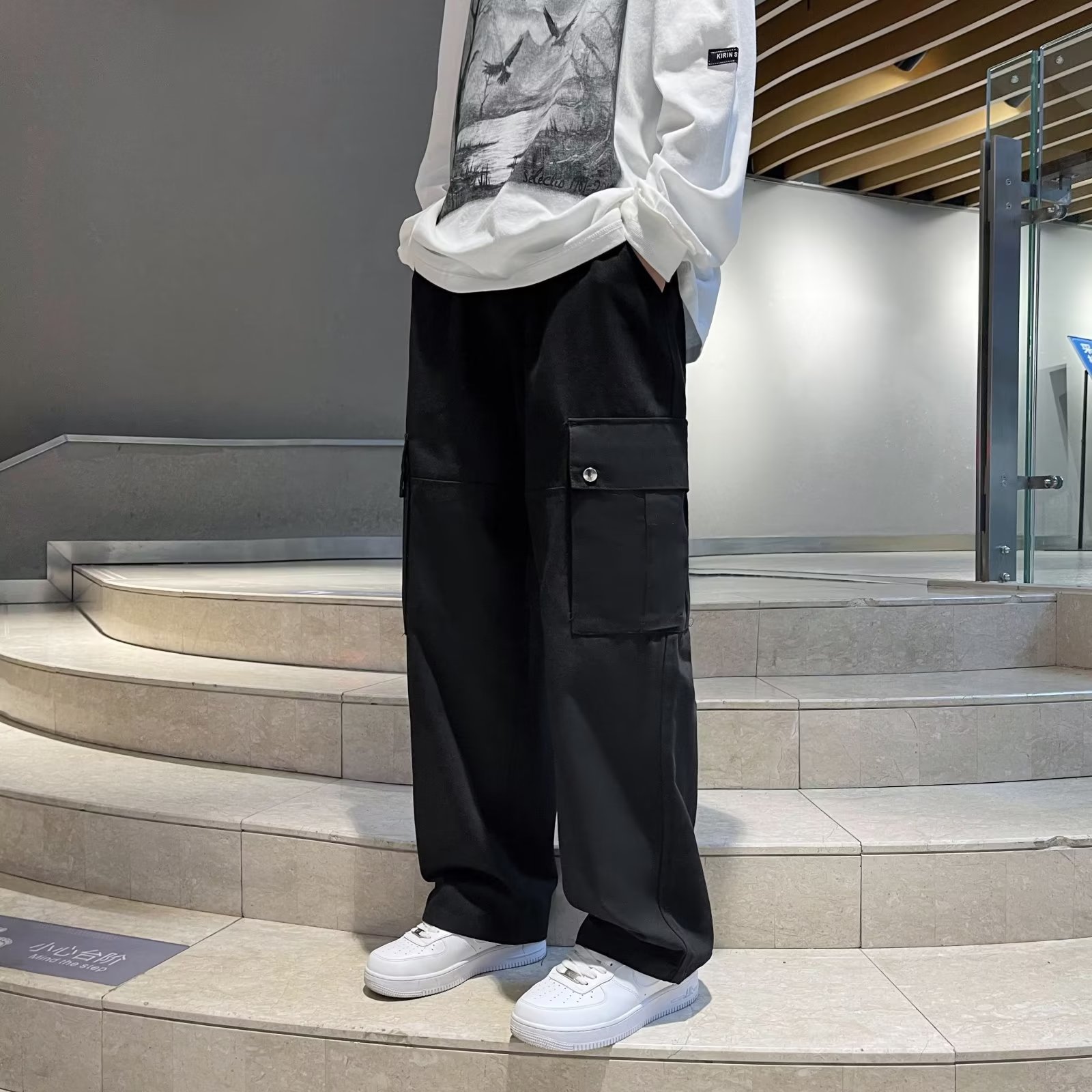 跨境工装长裤男2025春季潮流多口袋休闲裤子男款宽松港风直筒裤潮