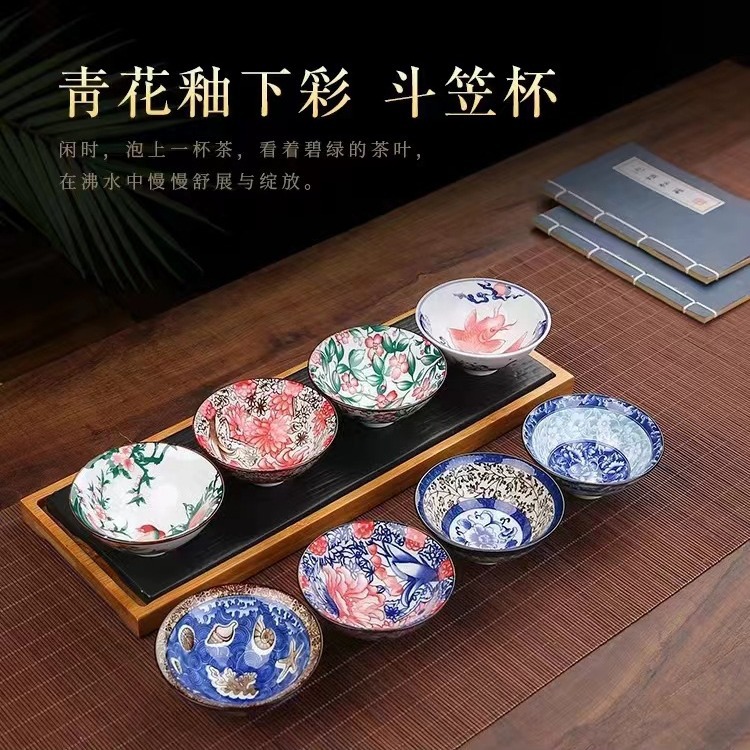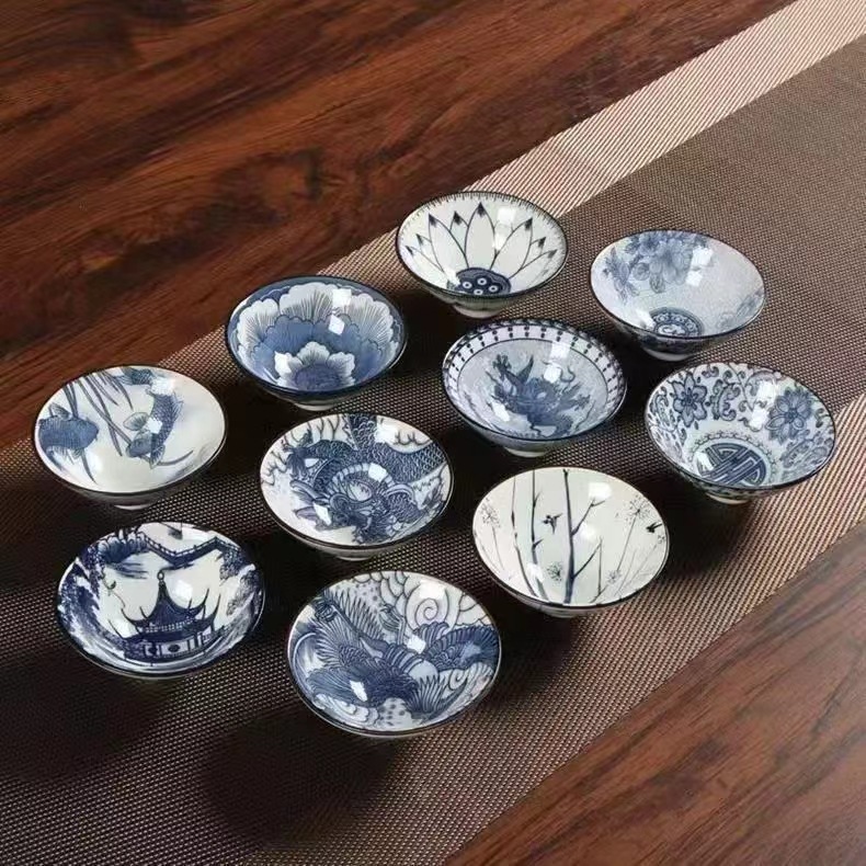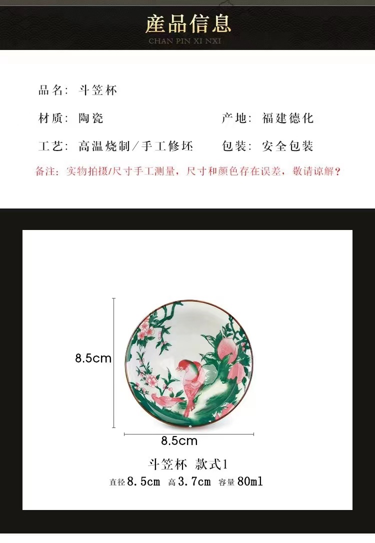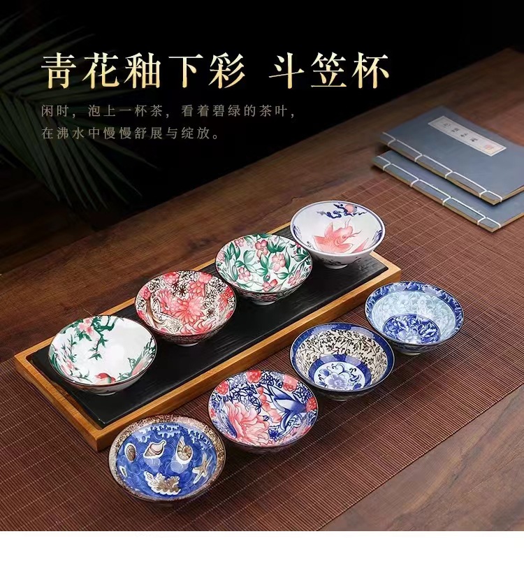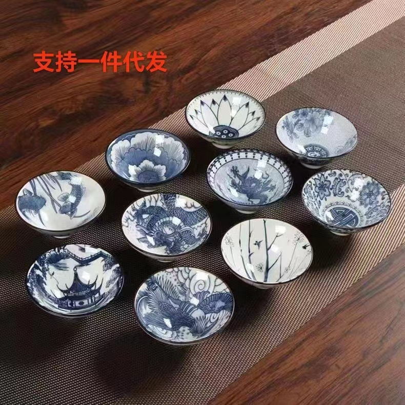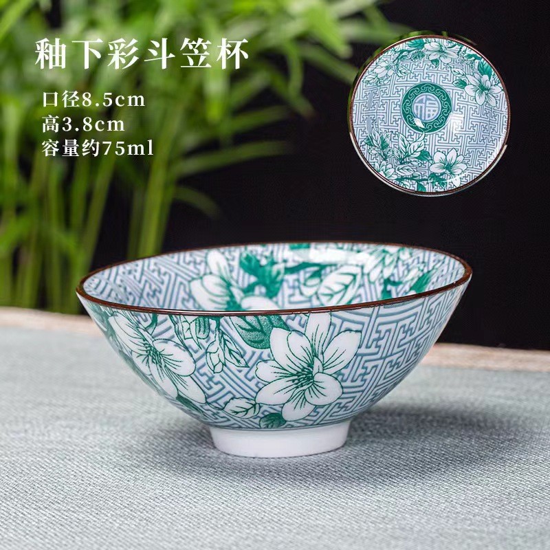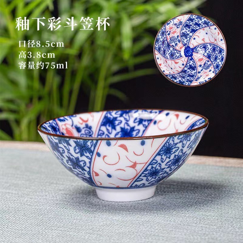 德化青花瓷斗笠杯茶碗功夫品茗杯个人杯主人杯复古小茶杯复古多色