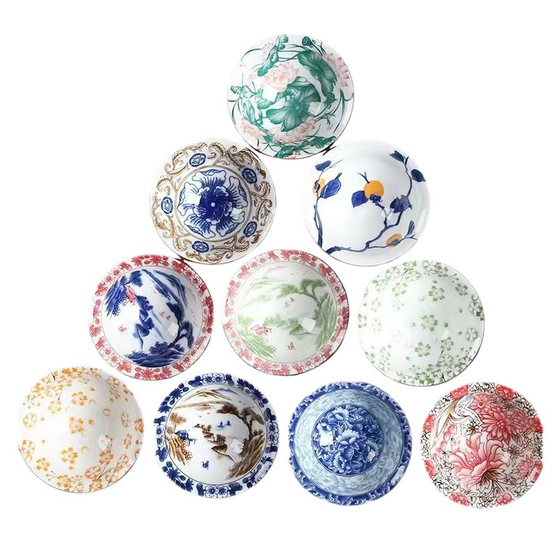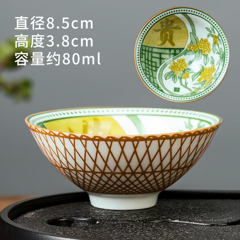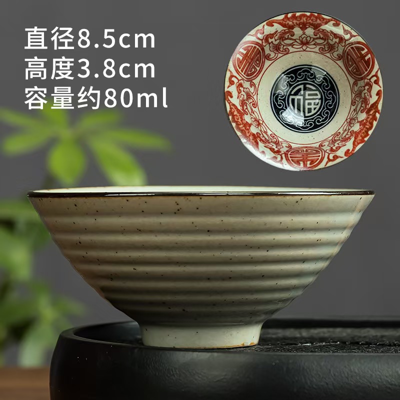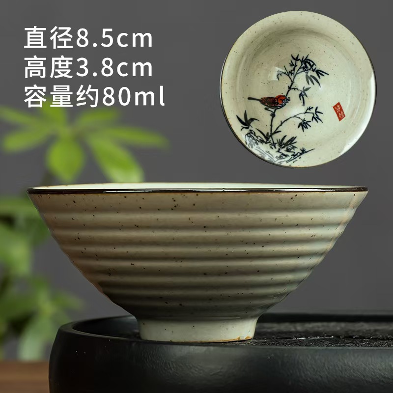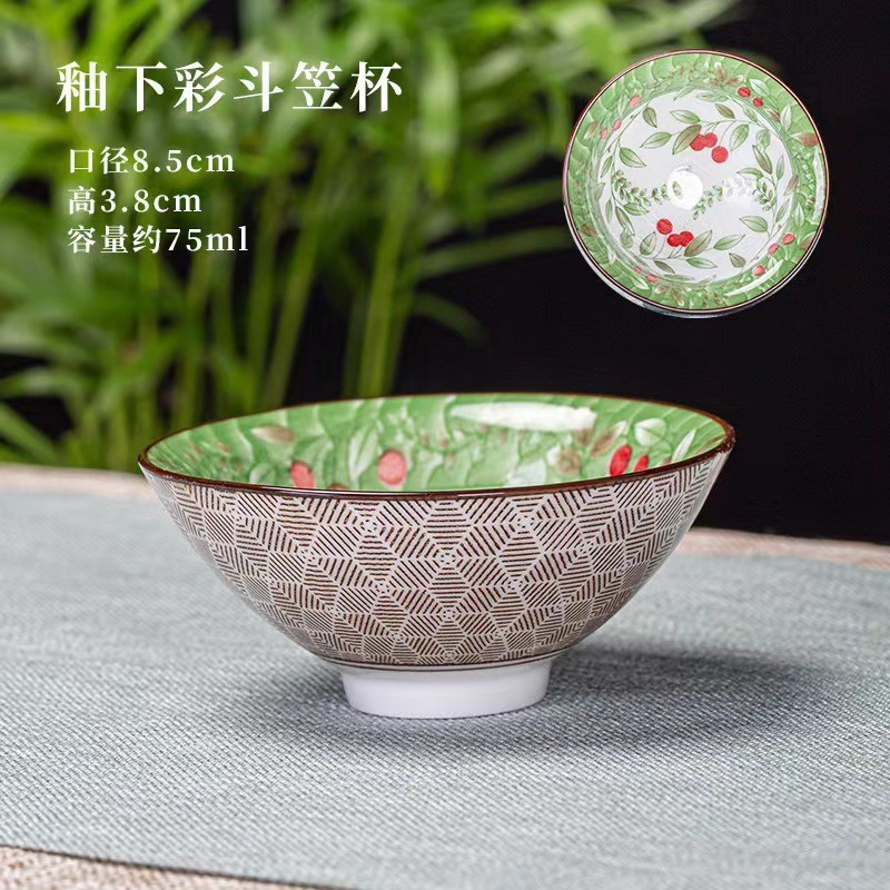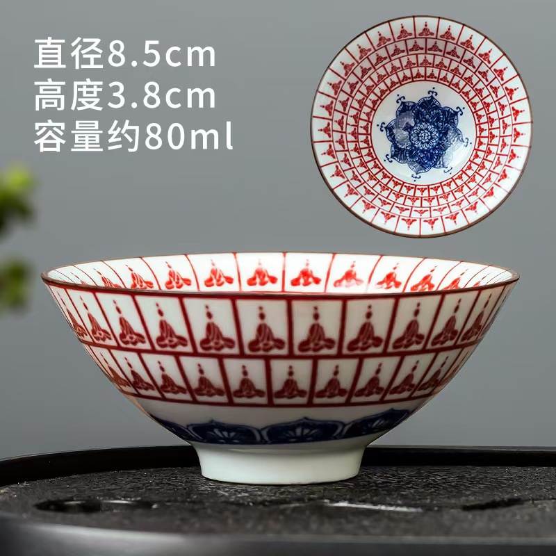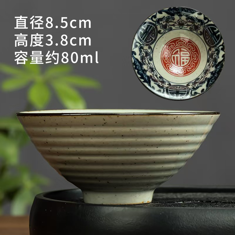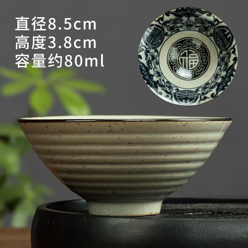 德化青花瓷斗笠杯茶碗功夫品茗杯个人杯主人杯复古小茶杯复古多色