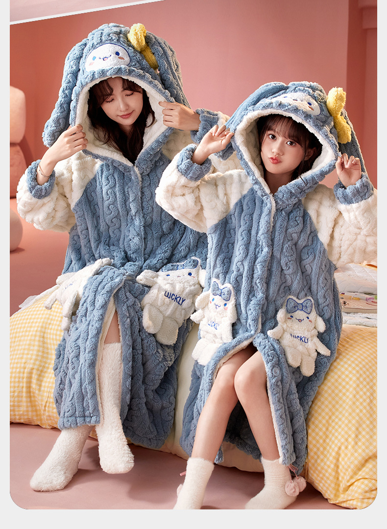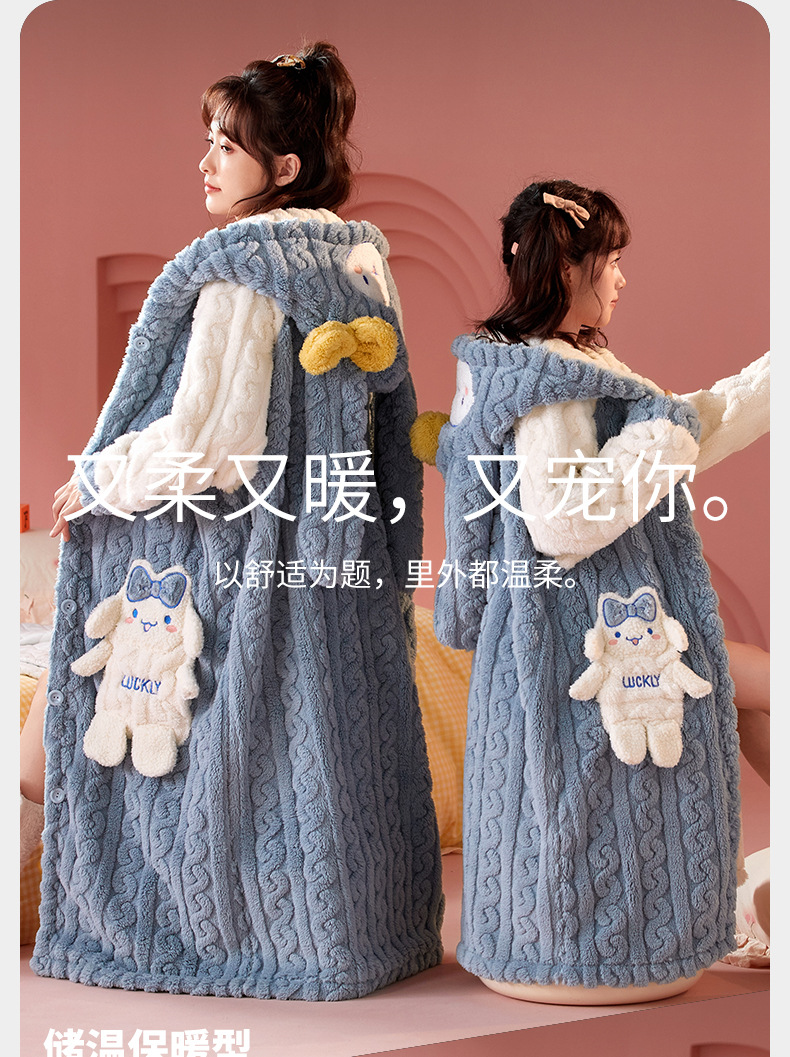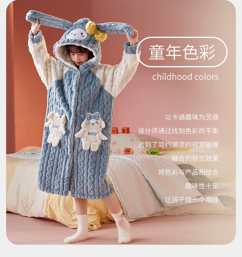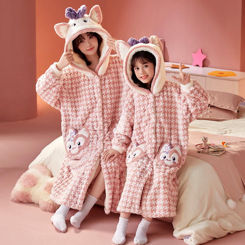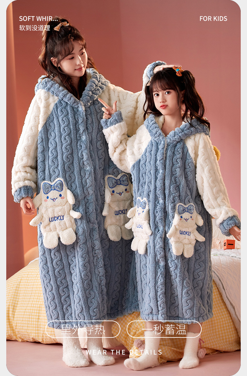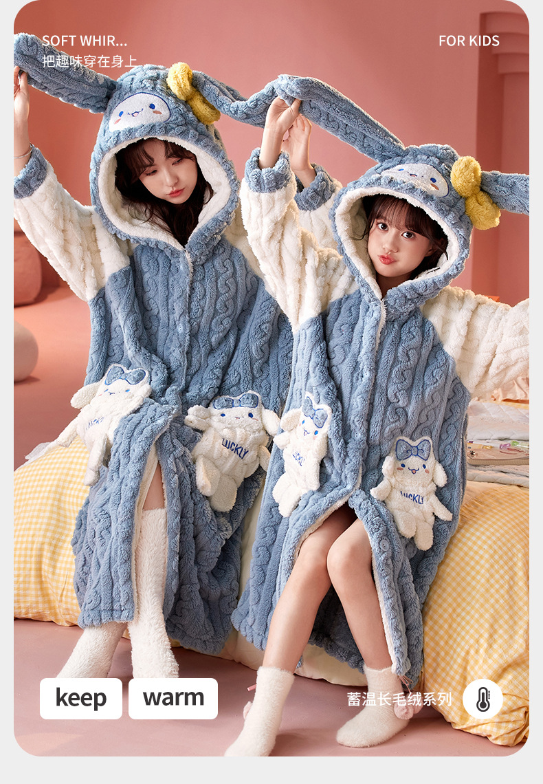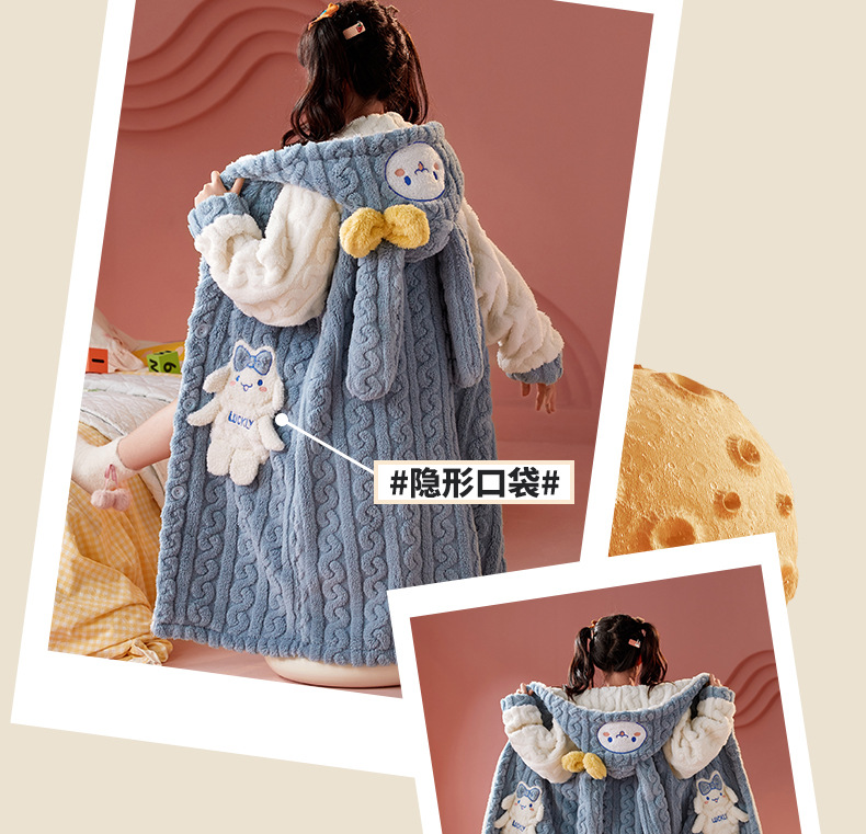 儿童睡衣秋冬季珊瑚绒加绒加厚款中大女童长款卡通家居服睡袍浴袍