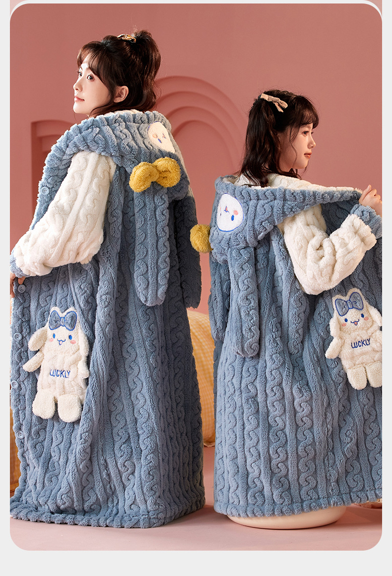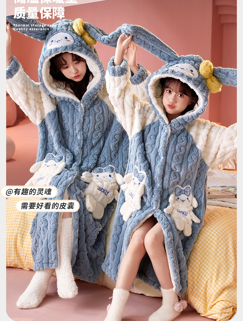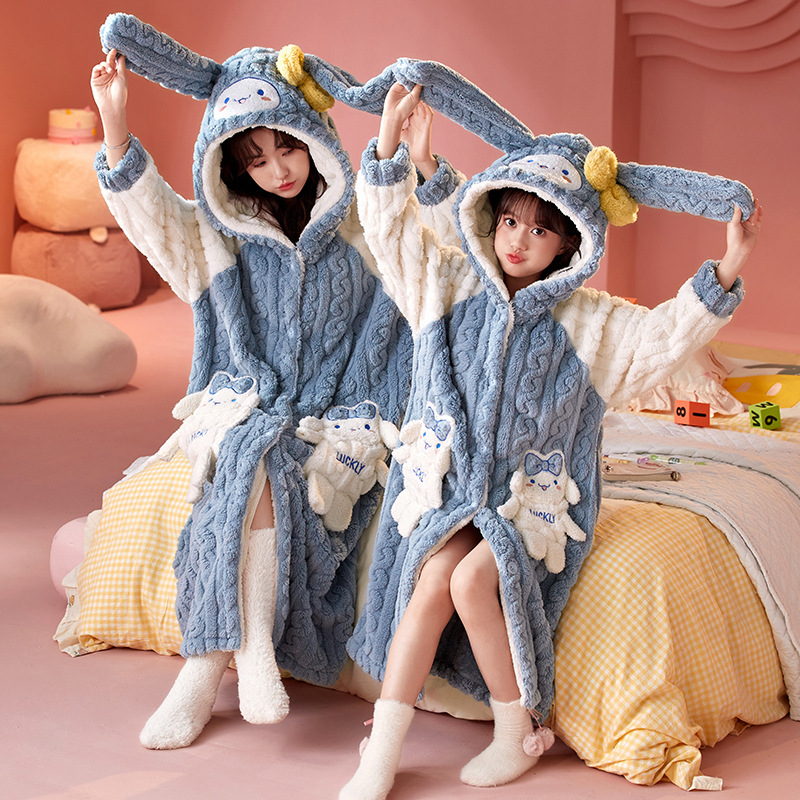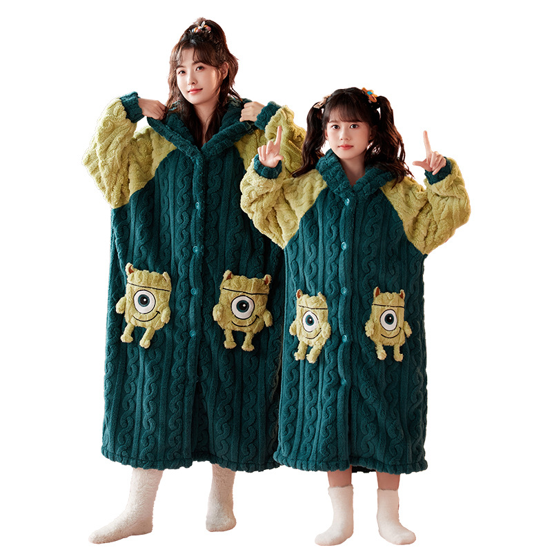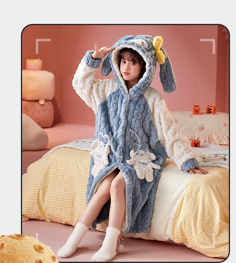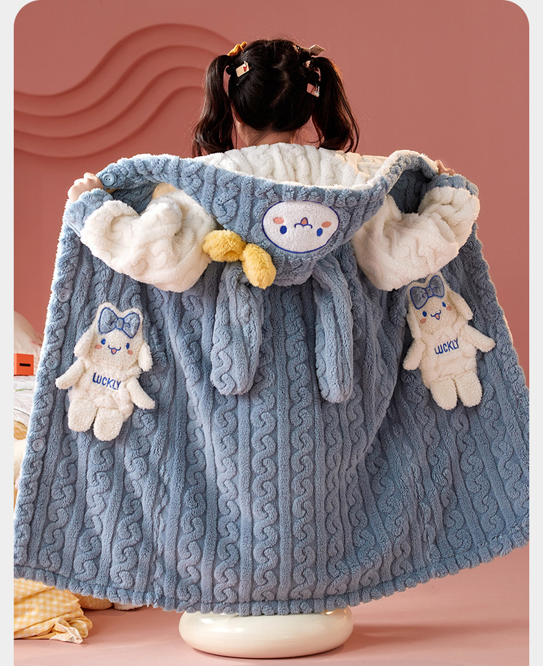儿童睡衣秋冬季珊瑚绒加绒加厚款中大女童长款卡通家居服睡袍浴袍