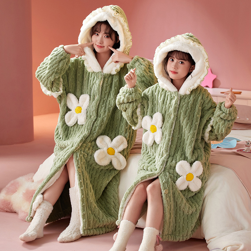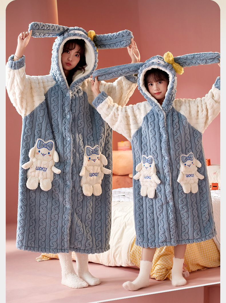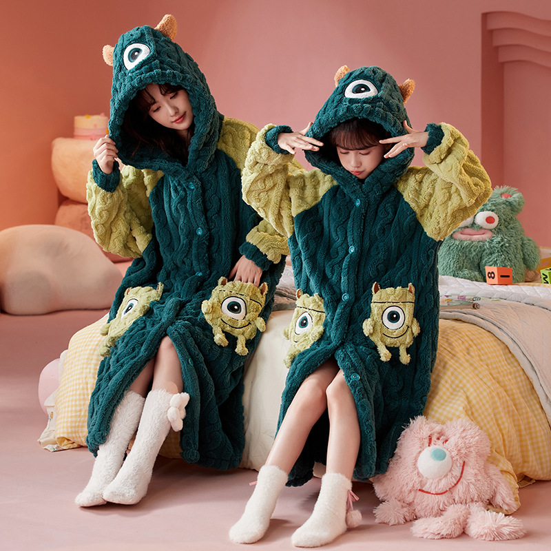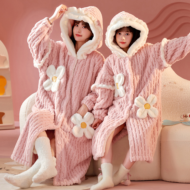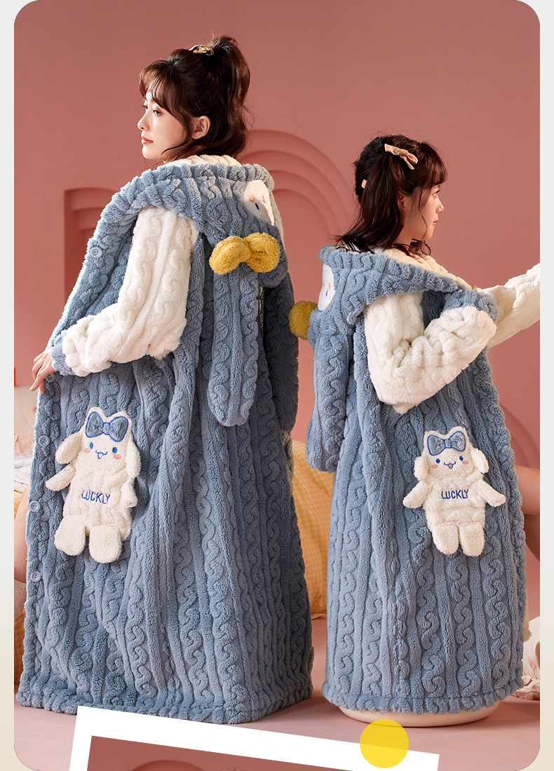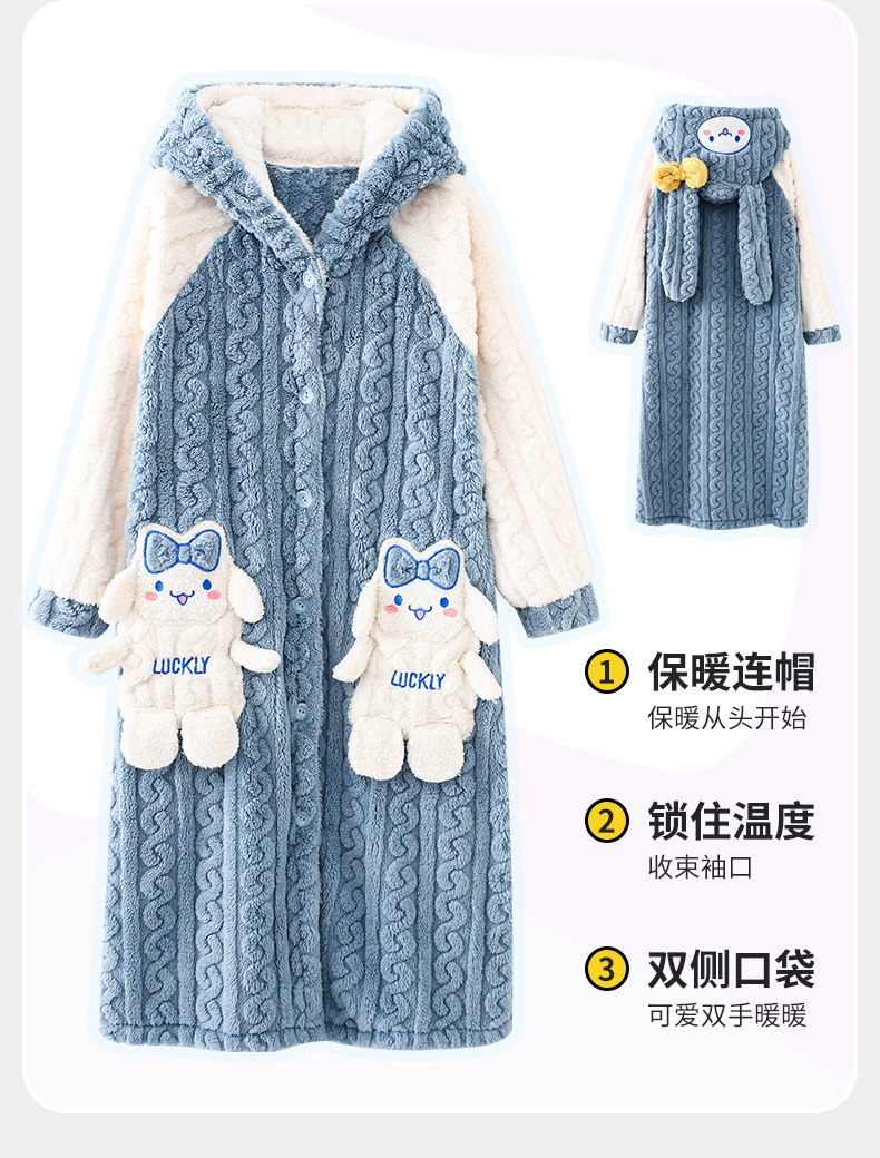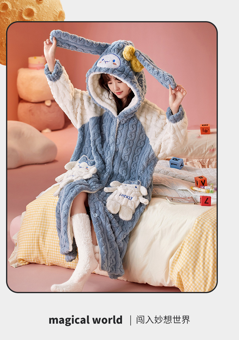 儿童睡衣秋冬季珊瑚绒加绒加厚款中大女童长款卡通家居服睡袍浴袍