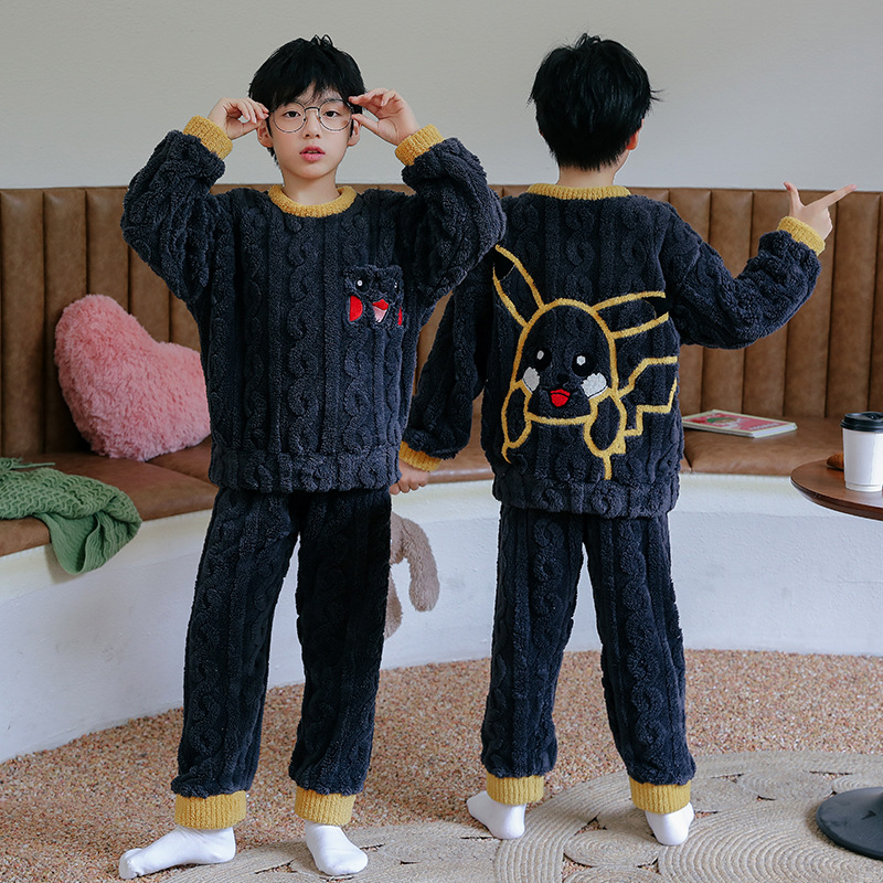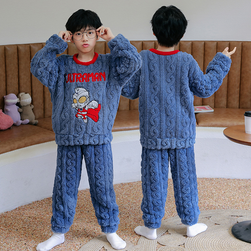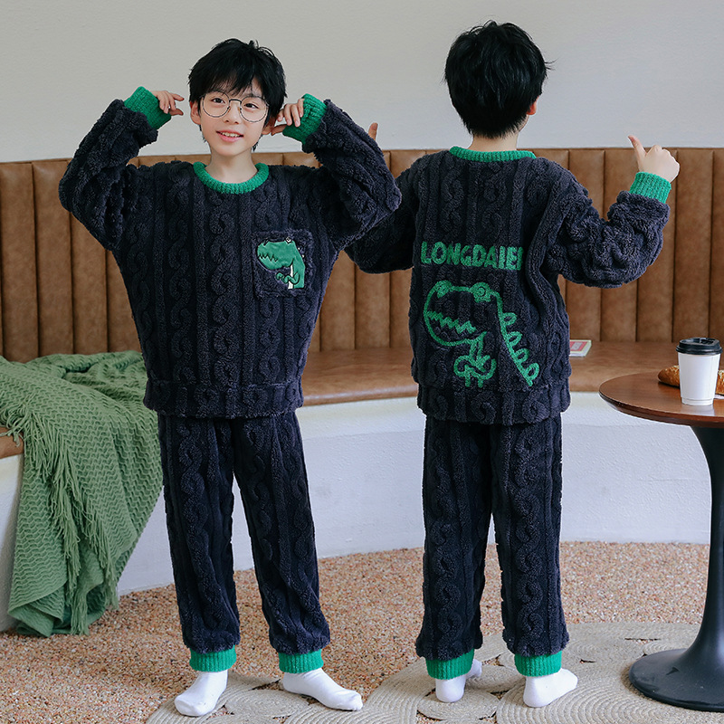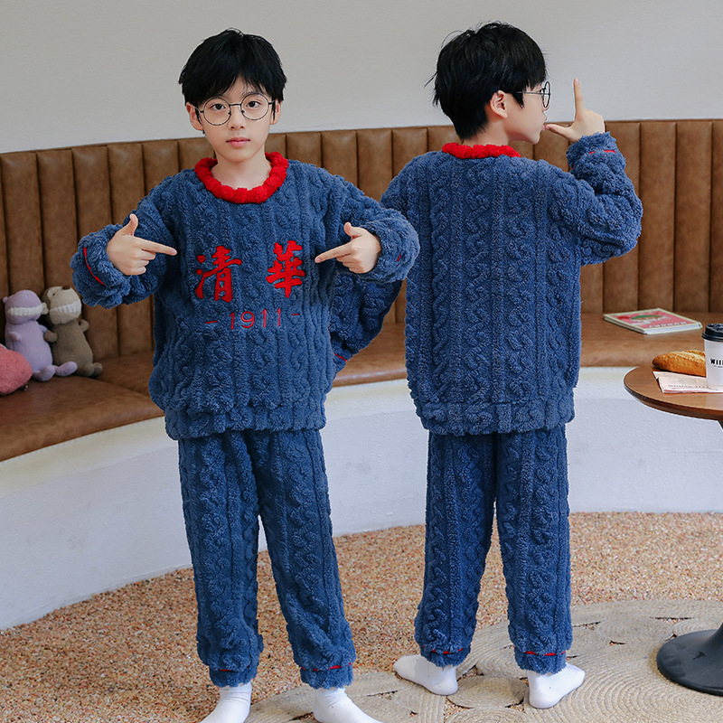 儿童睡衣女童秋冬季珊瑚绒加厚长袖长裤中大童可爱亲子家居服套装