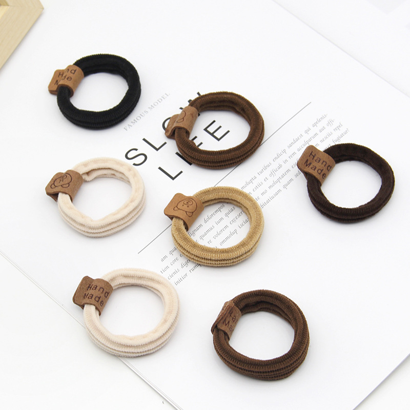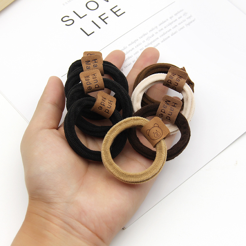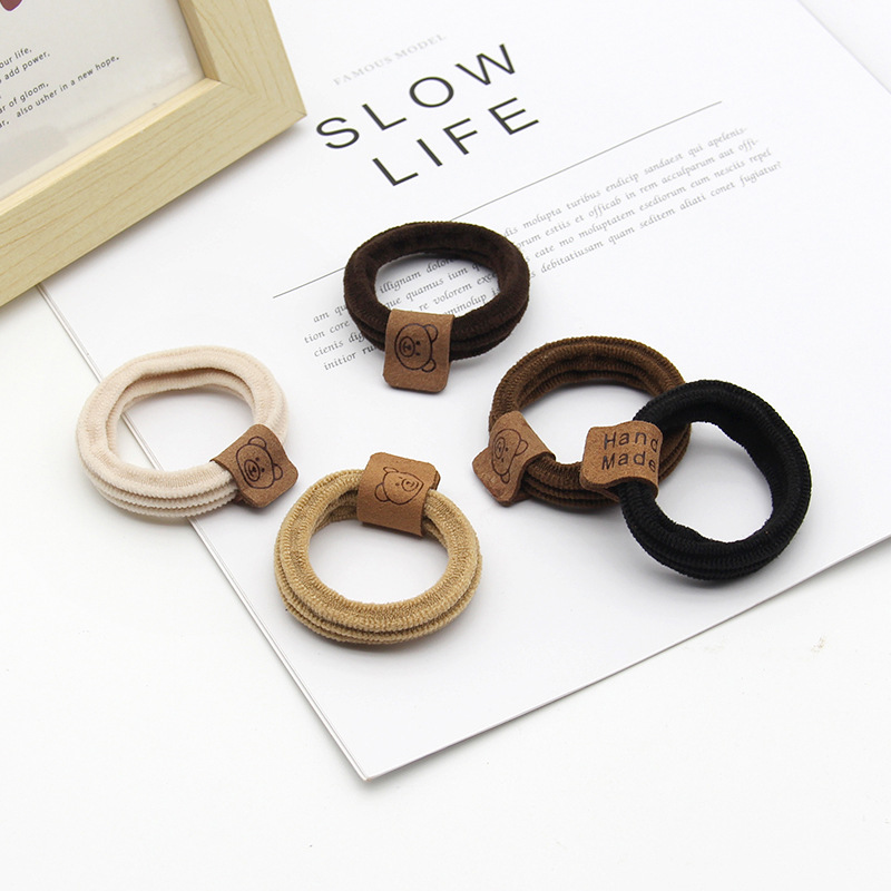 新款小熊贴标提花毛巾圈简约可爱头绳奶茶系高弹力无接缝发圈发饰