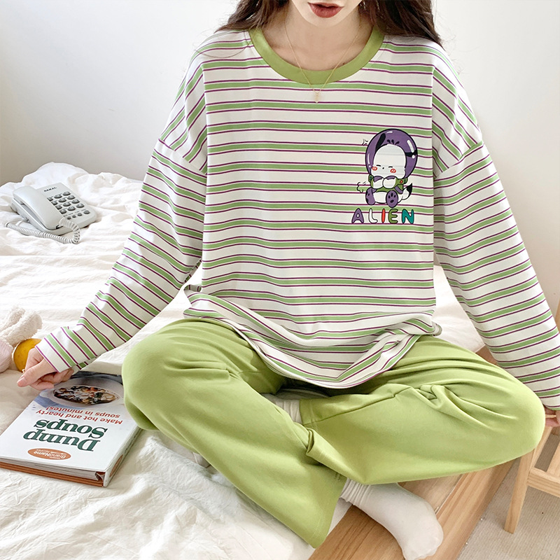 2024年新款女士秋冬季睡衣套头长袖棉质卡通宽松少女家居服春秋季