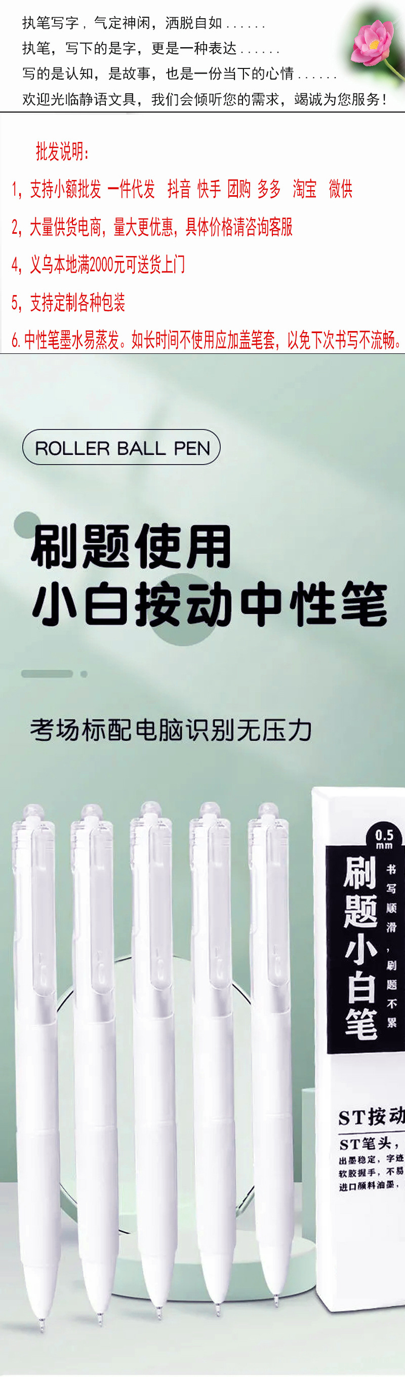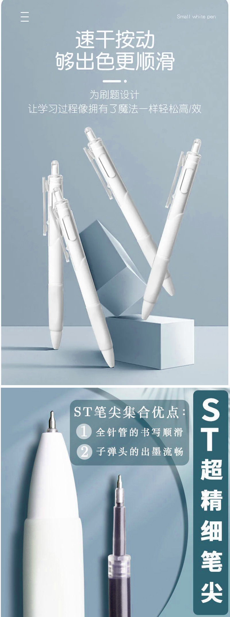 st头刷题中性笔小白笔学生考试签字笔按动圆珠笔办公用品批发