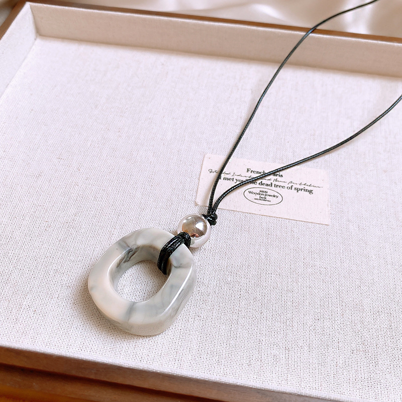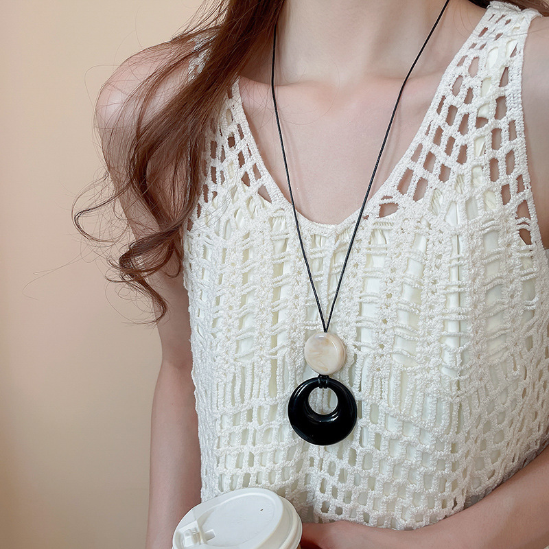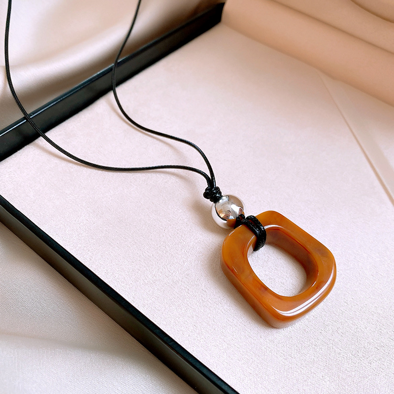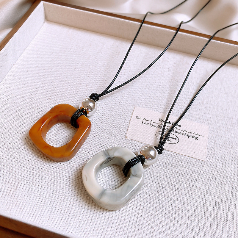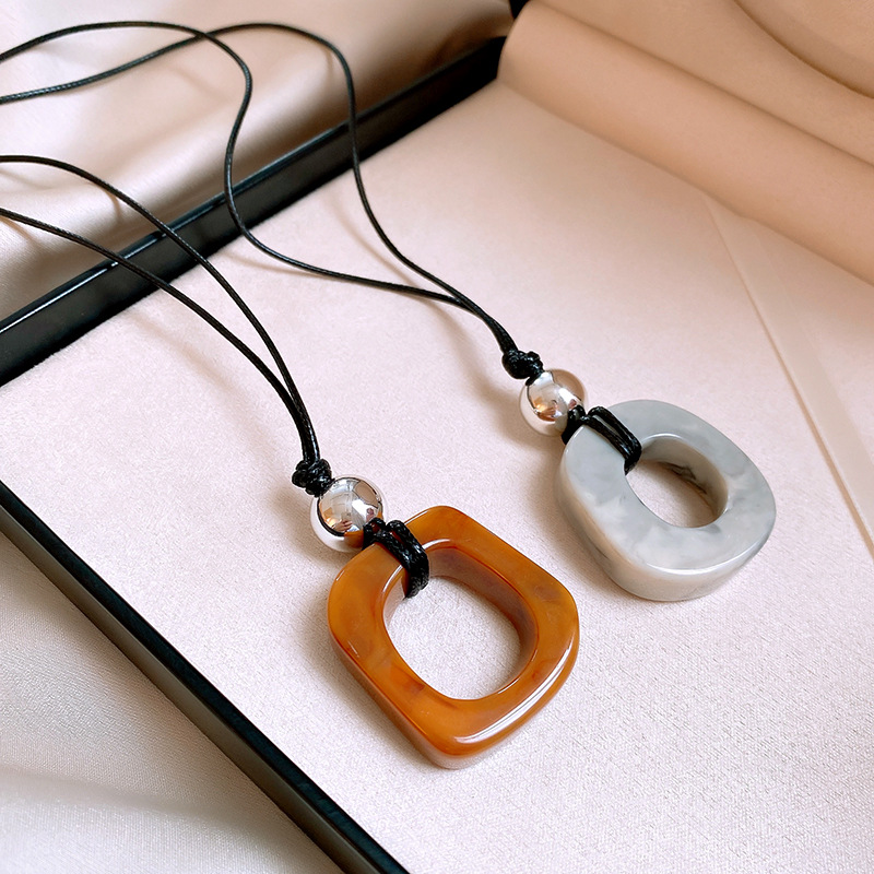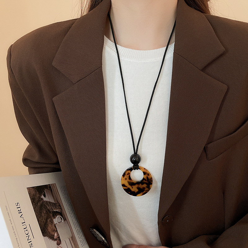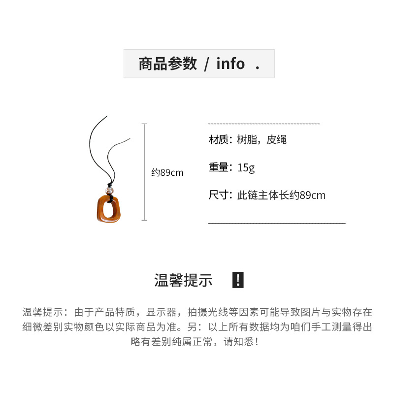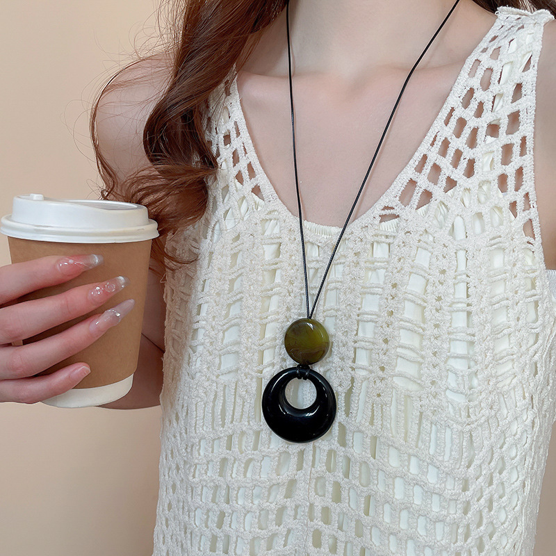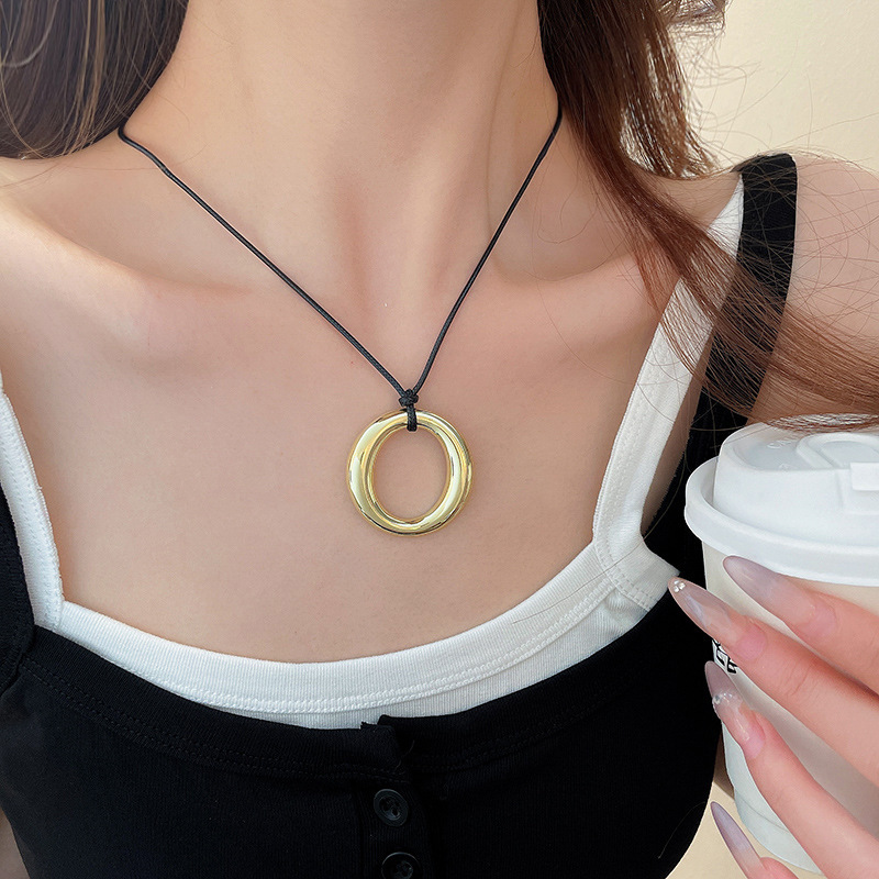 新中式树脂镂空圆皮绳项链简约时尚潮流锁骨链复古高级感项饰批发