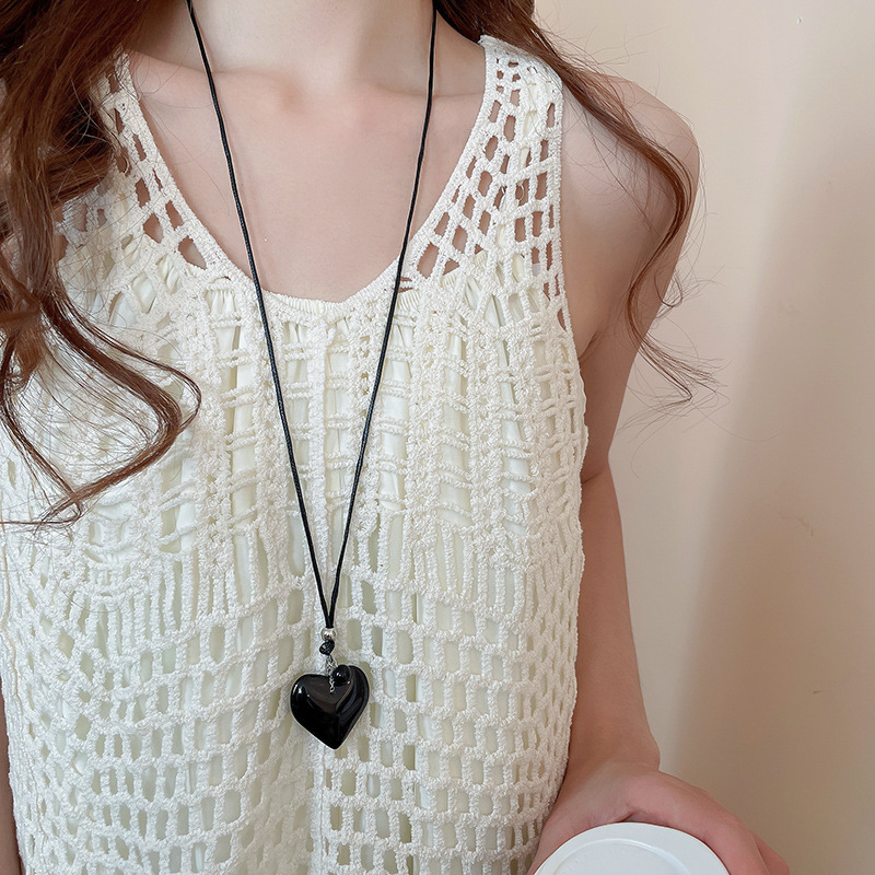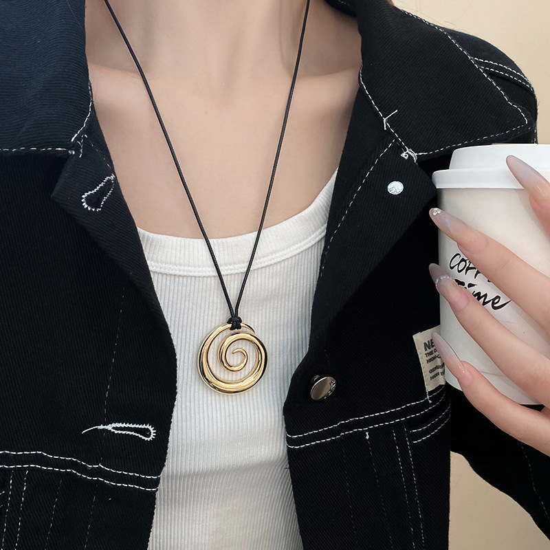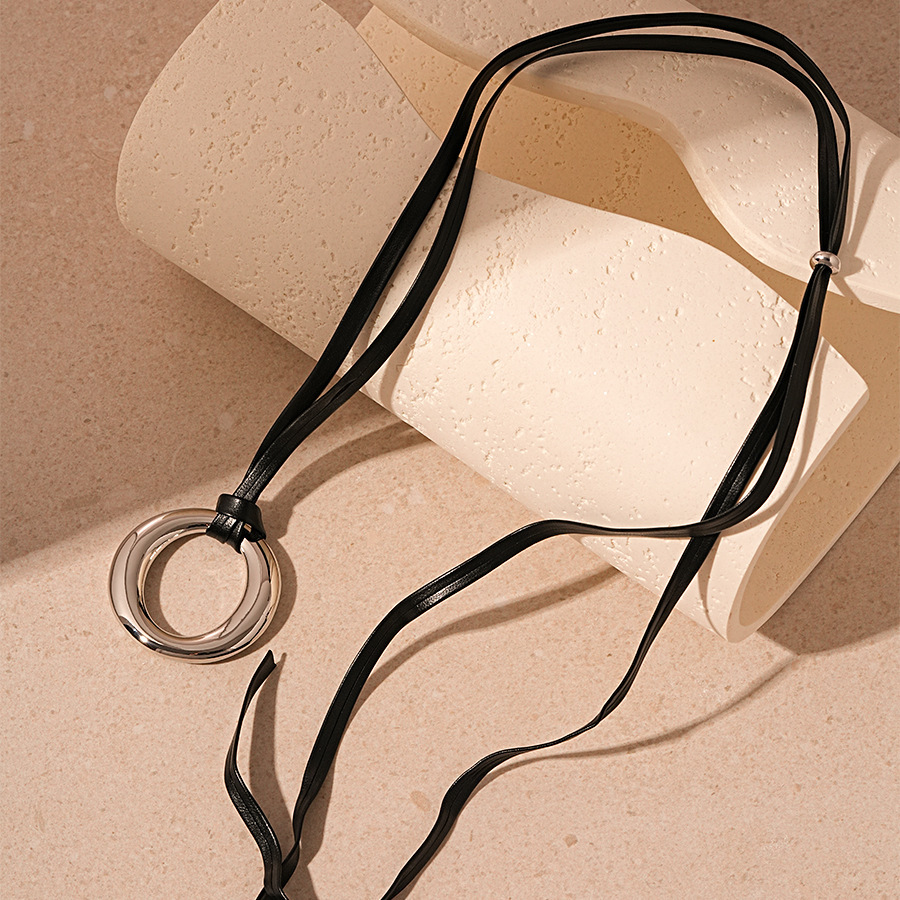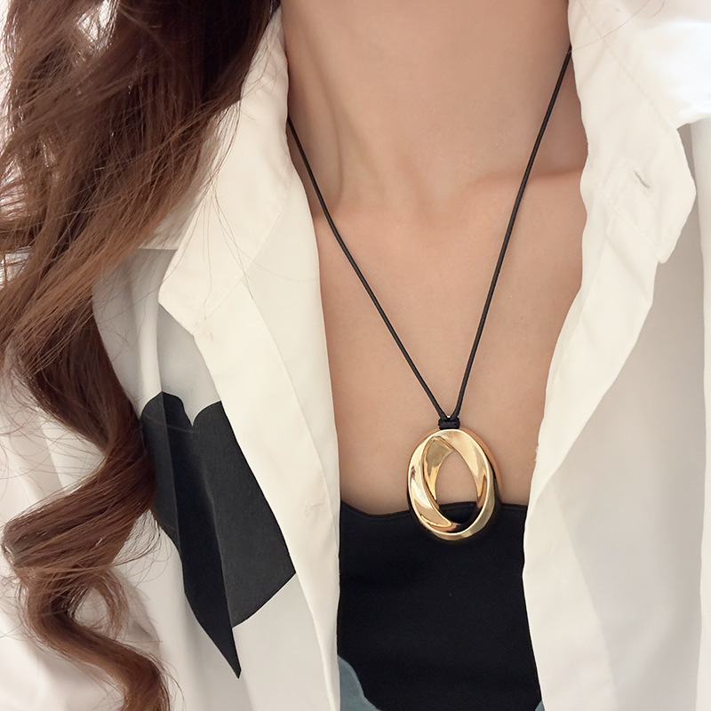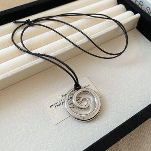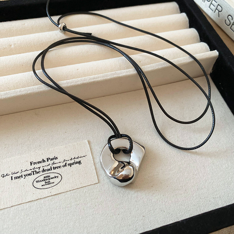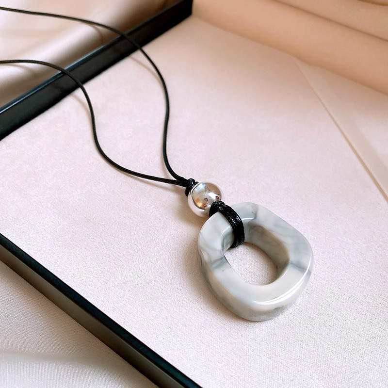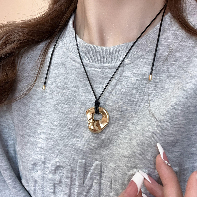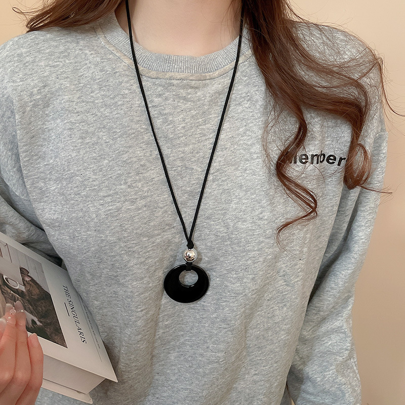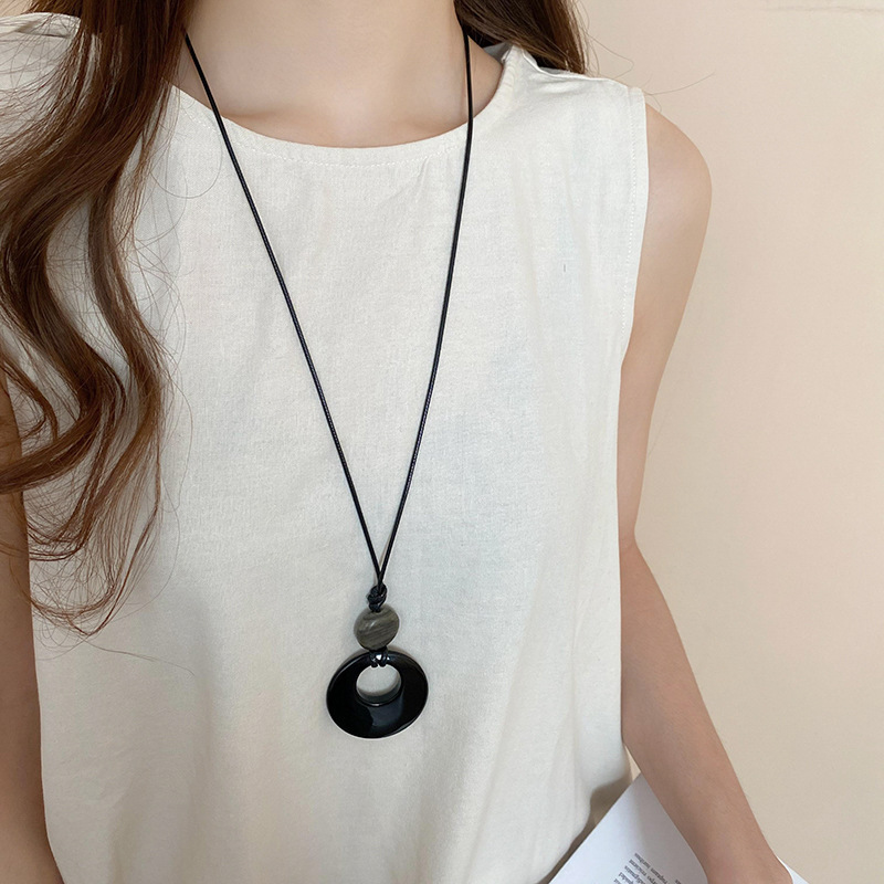 新中式树脂镂空圆皮绳项链简约时尚潮流锁骨链复古高级感项饰批发