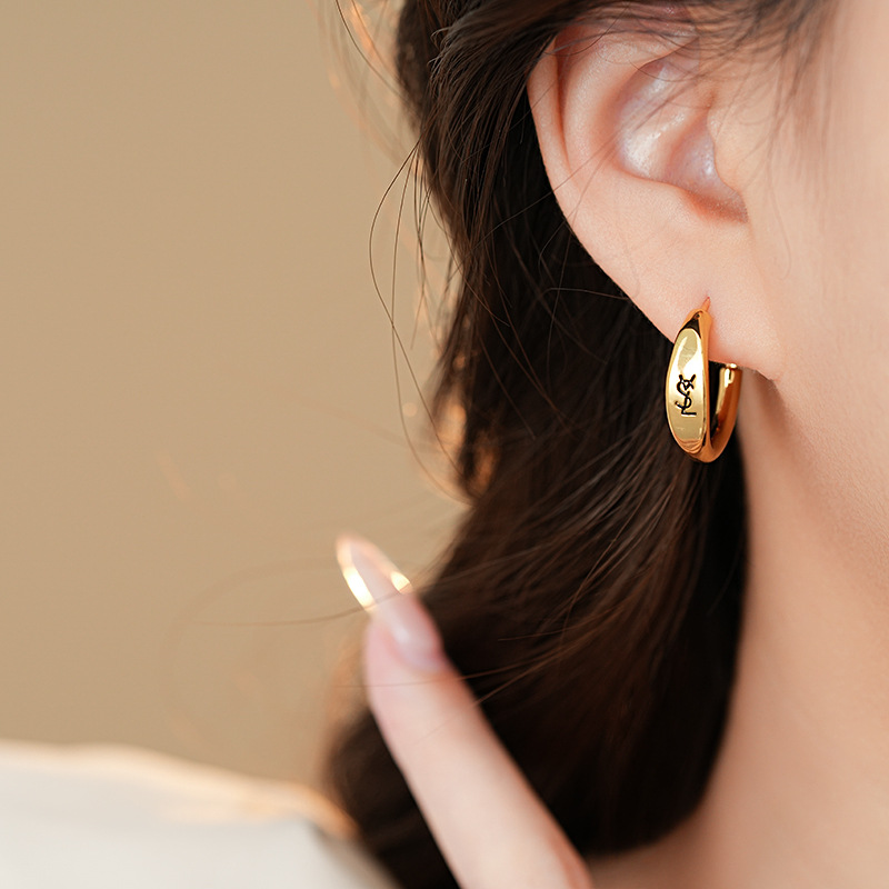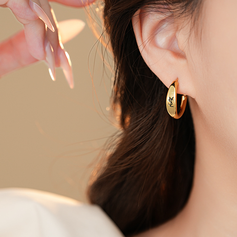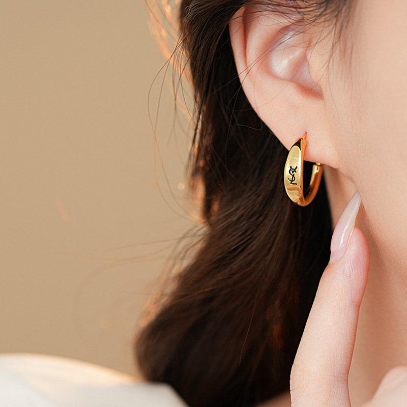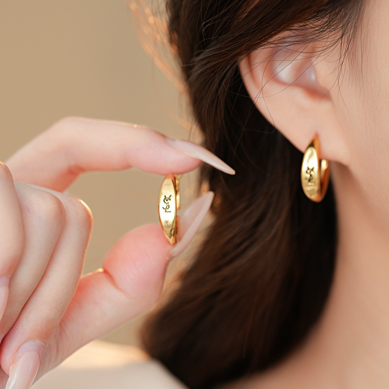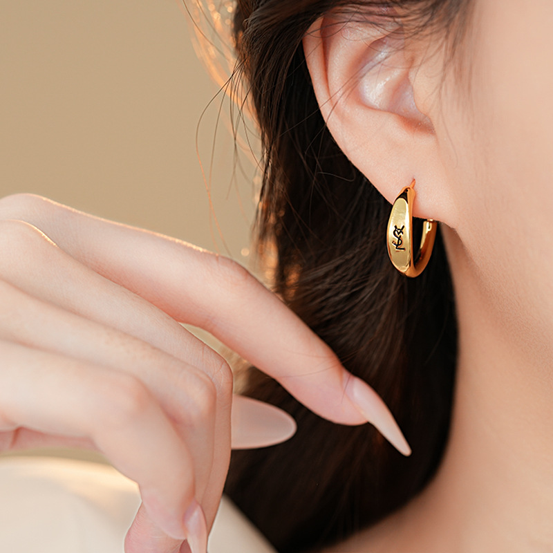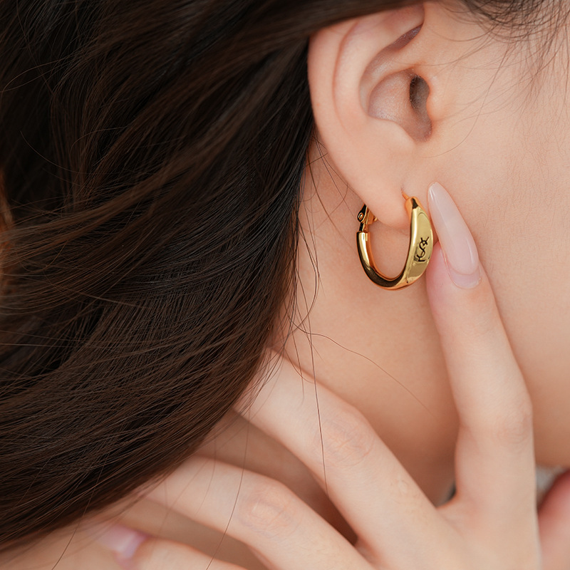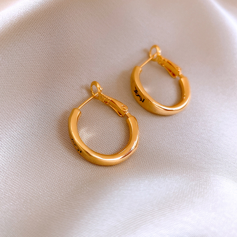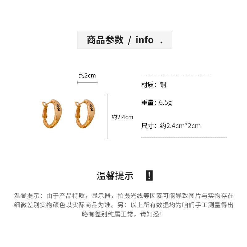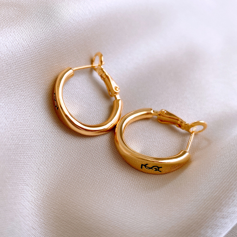真金电镀简约素圈几何耳环个性时尚潮流耳圈轻奢高级感耳饰批发女