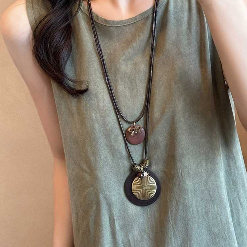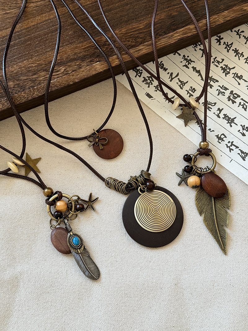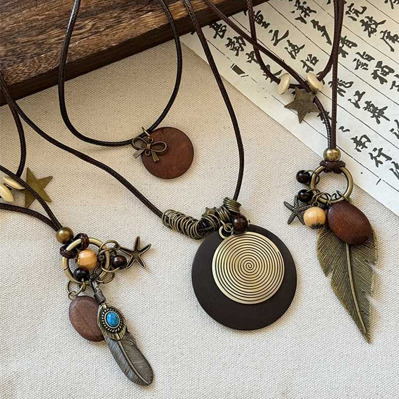 民族风羽毛星星人造木珠款项链个性小众毛衣链新中式复古新款项饰