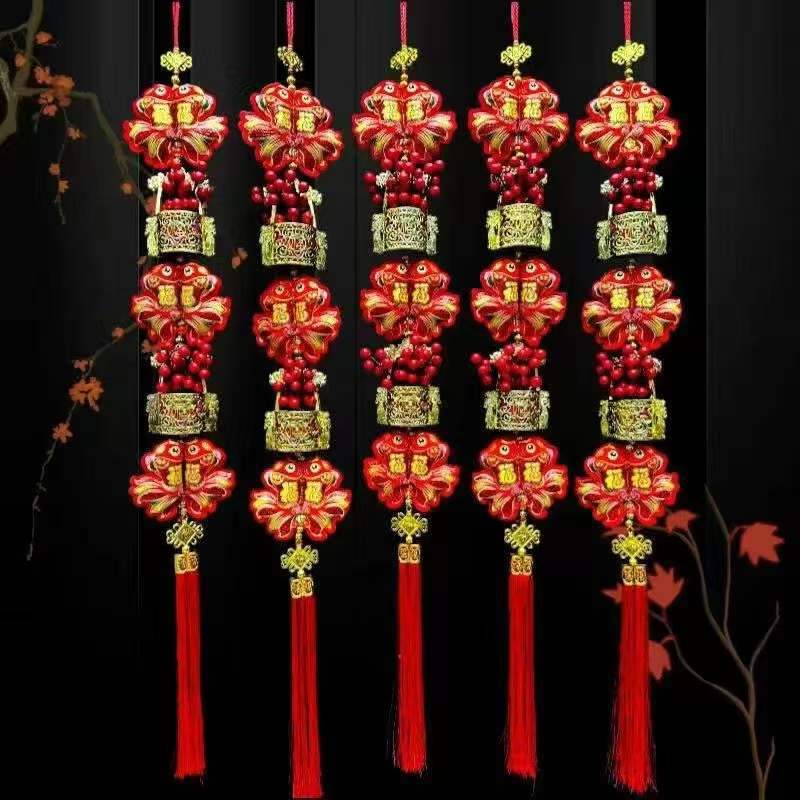 精品福桶红果五连串挂件反季节清仓处理撒粉五连串挂饰挂件批发