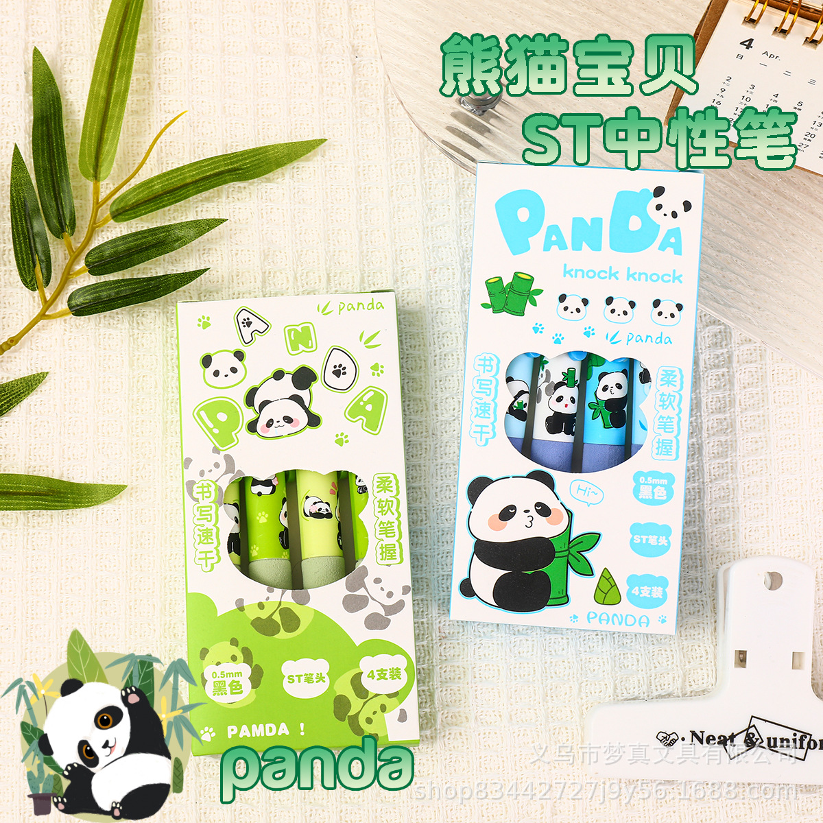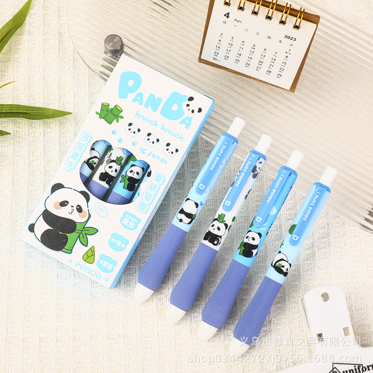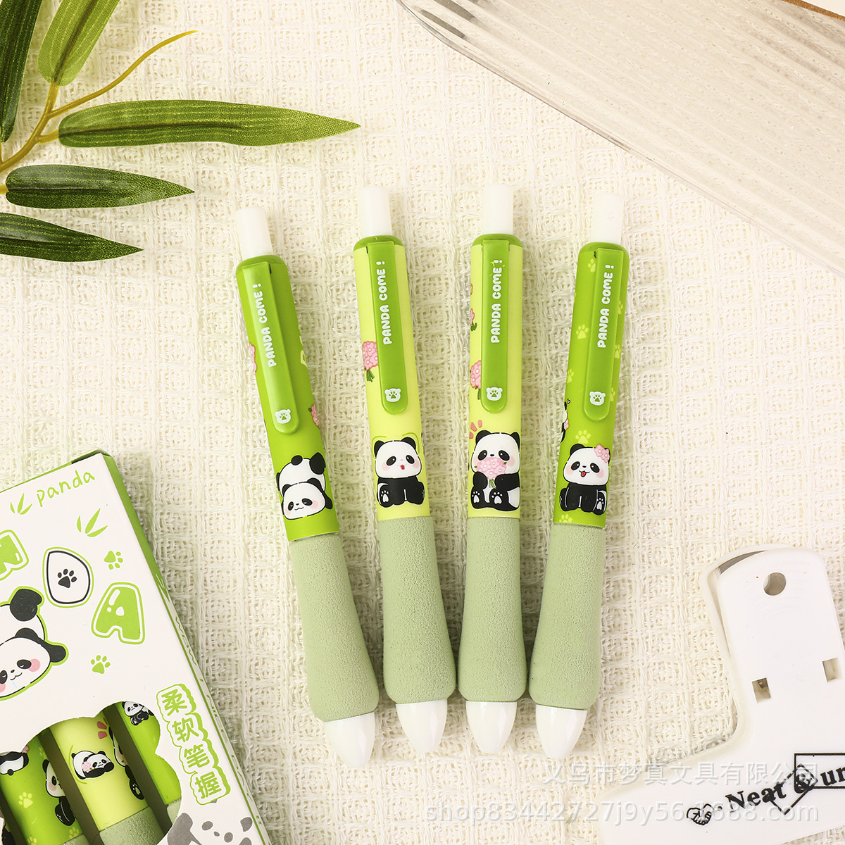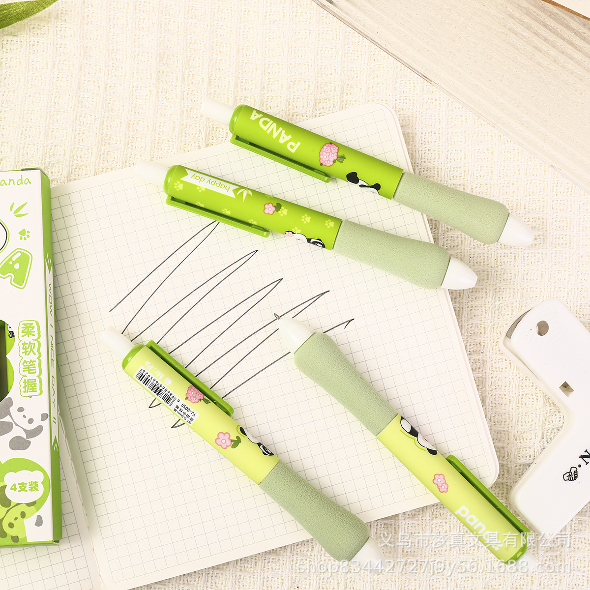 熊猫限定海绵护套中性笔高颜值ST速干按动笔学生考试软握减负黑笔