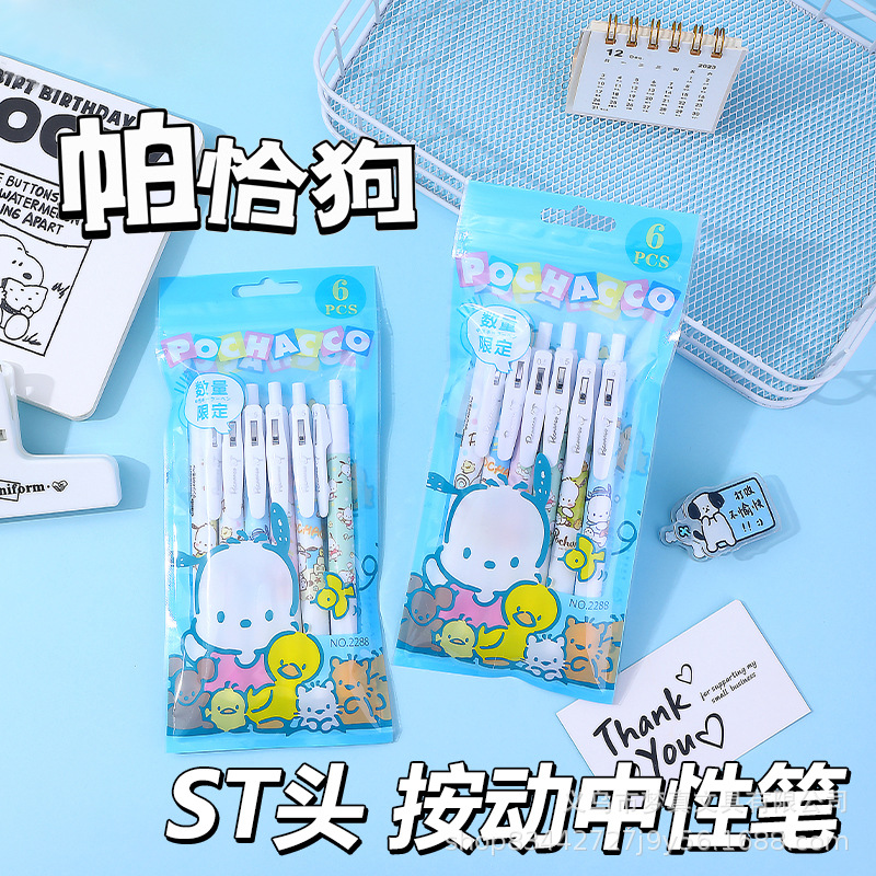 帕恰狗刷题笔三丽鸥按动中性笔卡通可爱袋装中性笔ST学生考试水笔