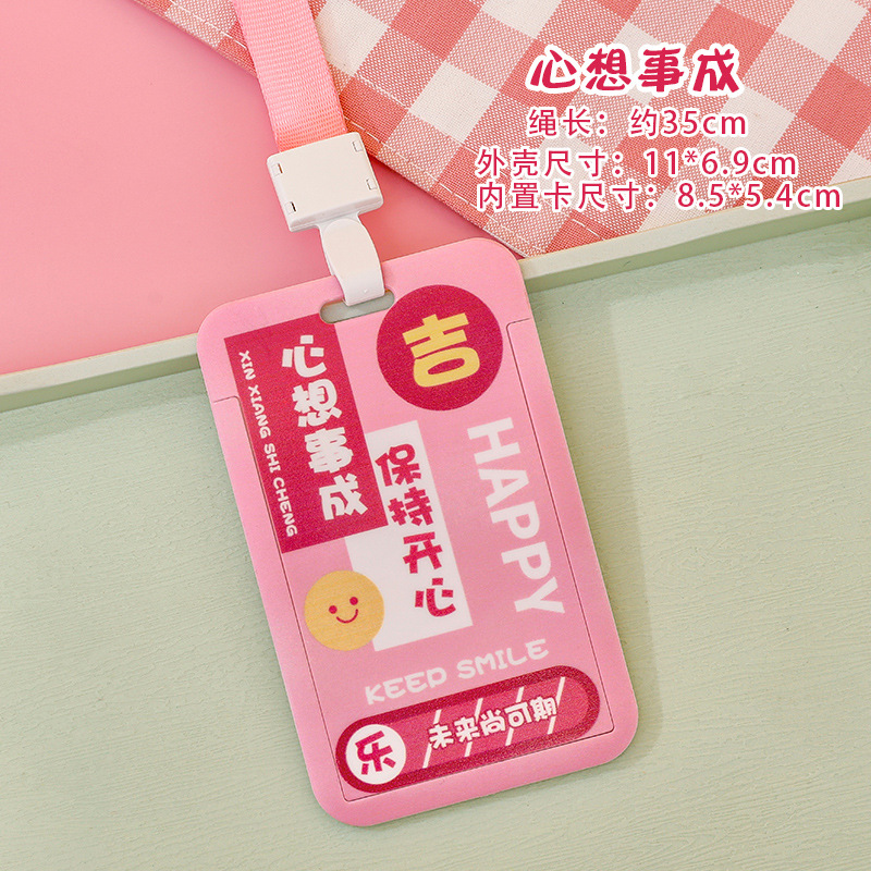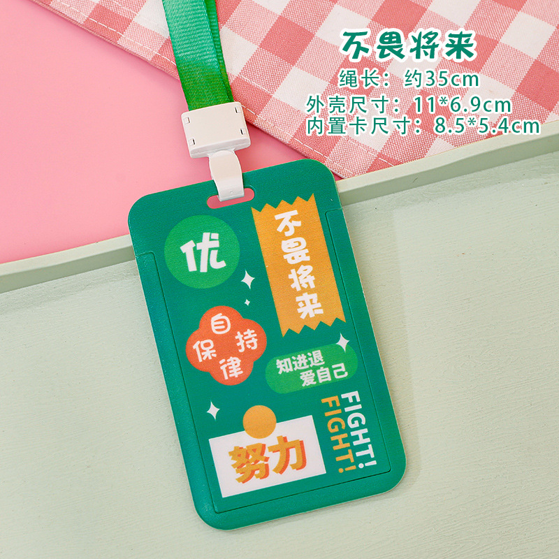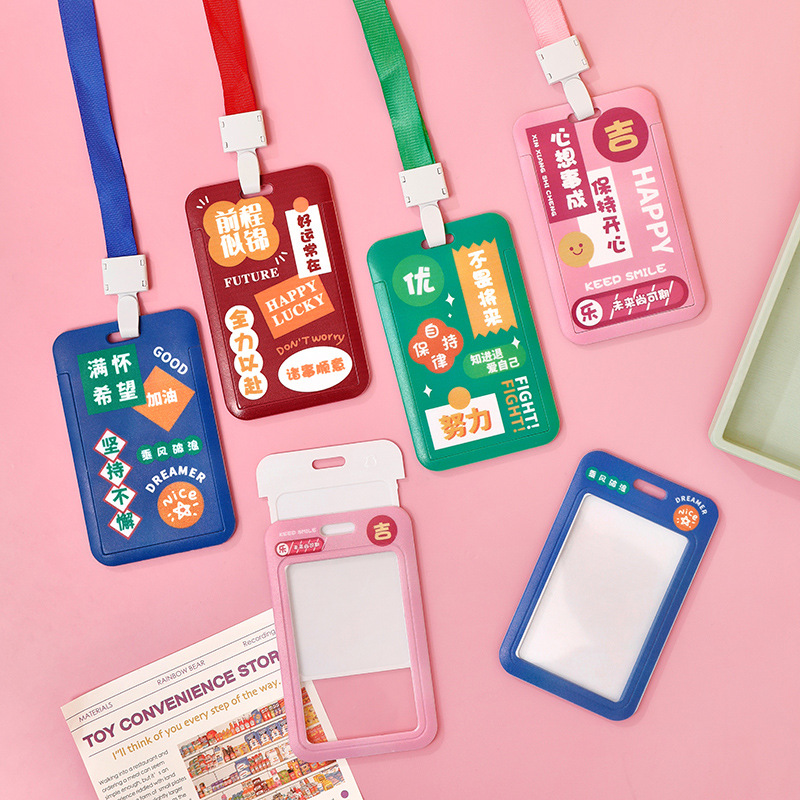 卡通文字滑盖卡套 学生校园饭卡带挂绳证件套儿童高颜值胸牌卡套